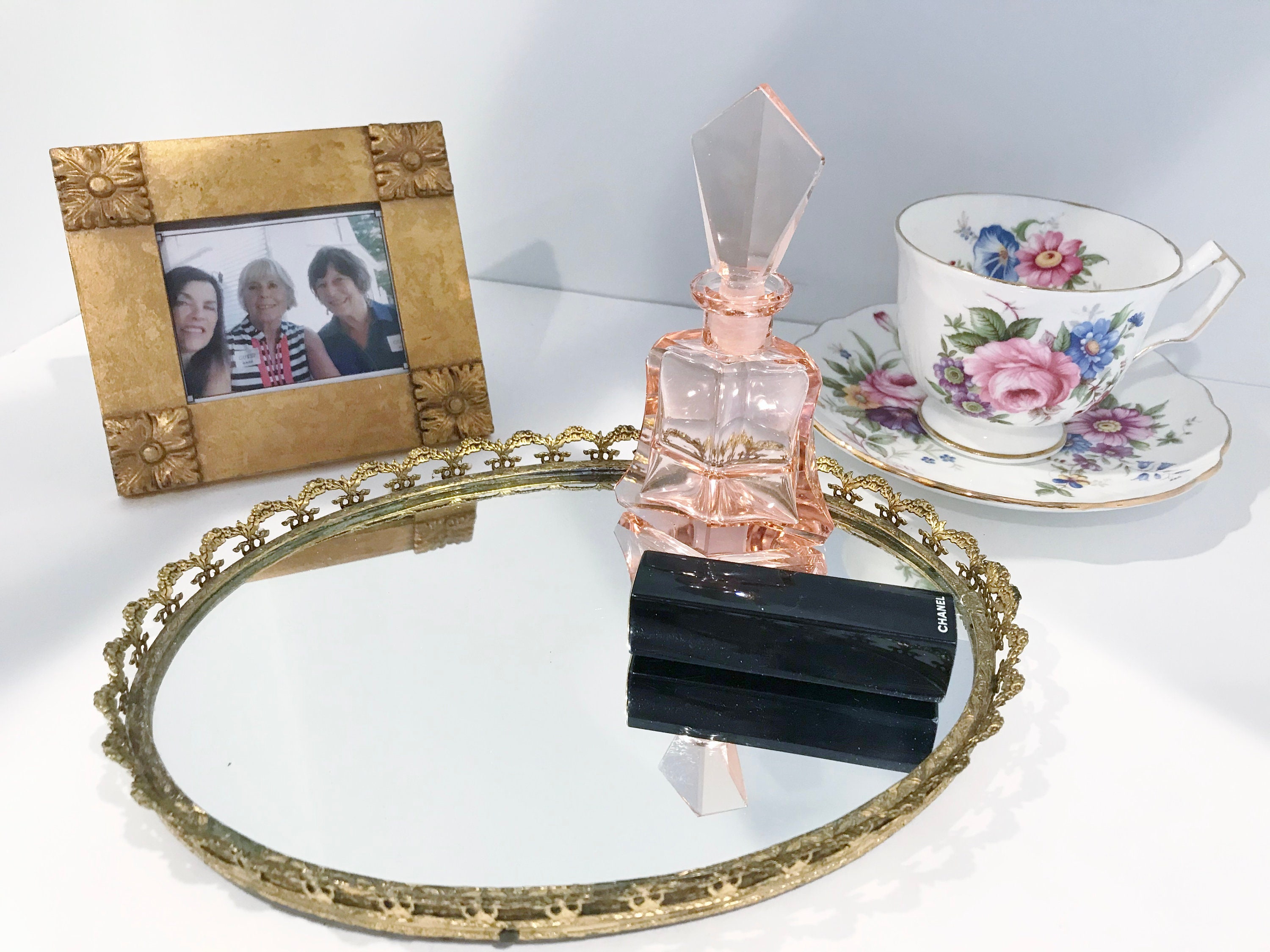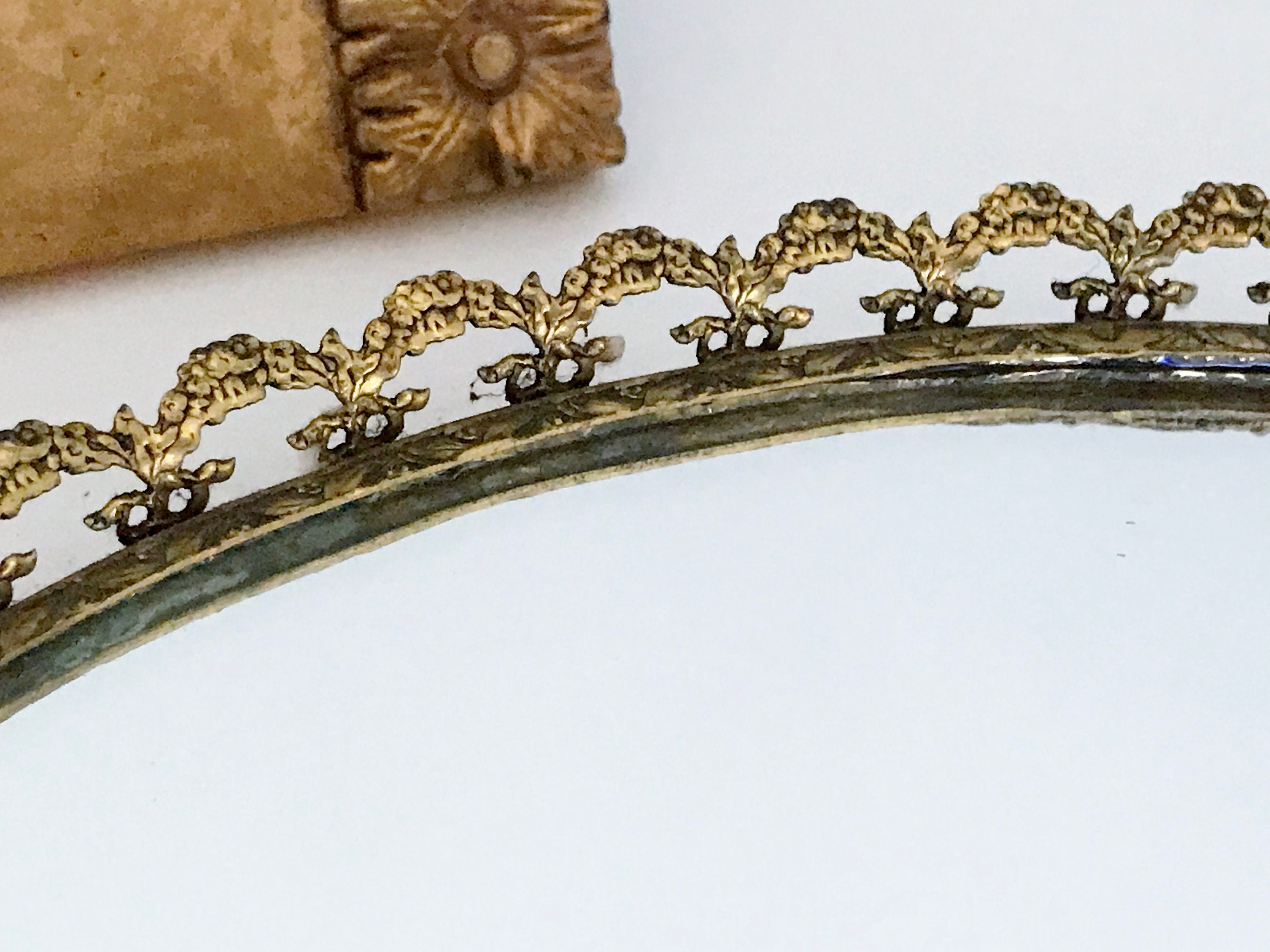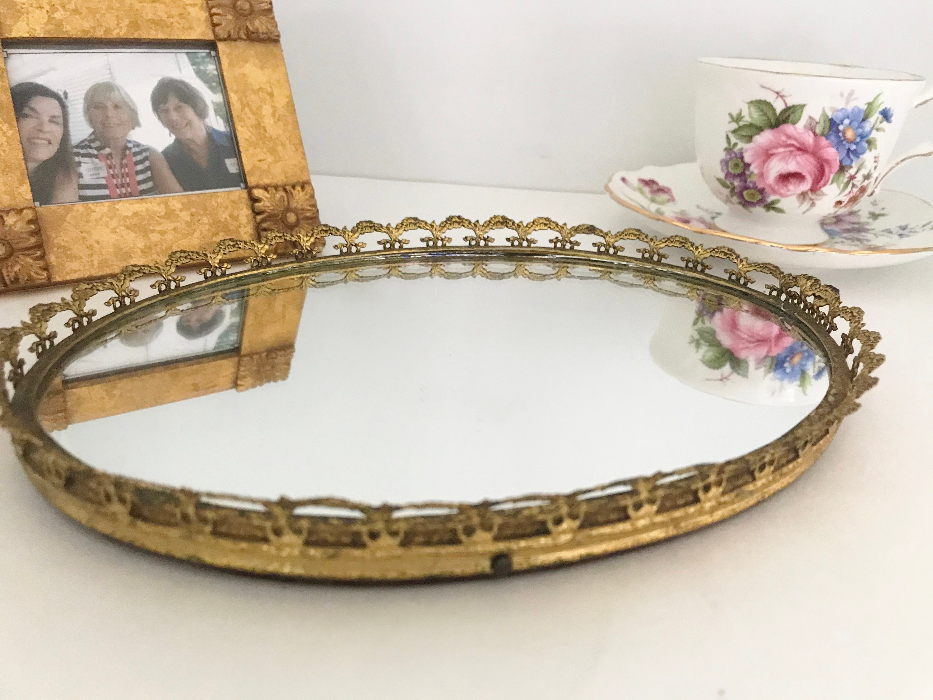 Oval Vanity Tray, Mirrored Vanity Tray, Brass Vanity Tray, Ormolu Vanity Tray, Brass Border Railing, Vanity Accessory, Oval Vanity Mirror