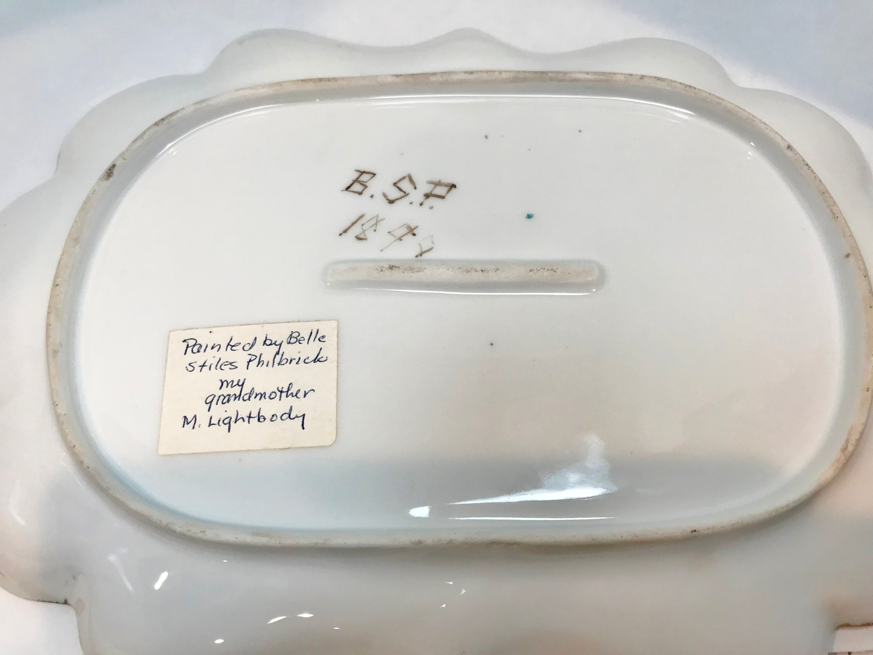 This stunning vanity tray has been handed down for generations. It was painted in 1890 by Belle Stiles Philbrick, a New England artist.