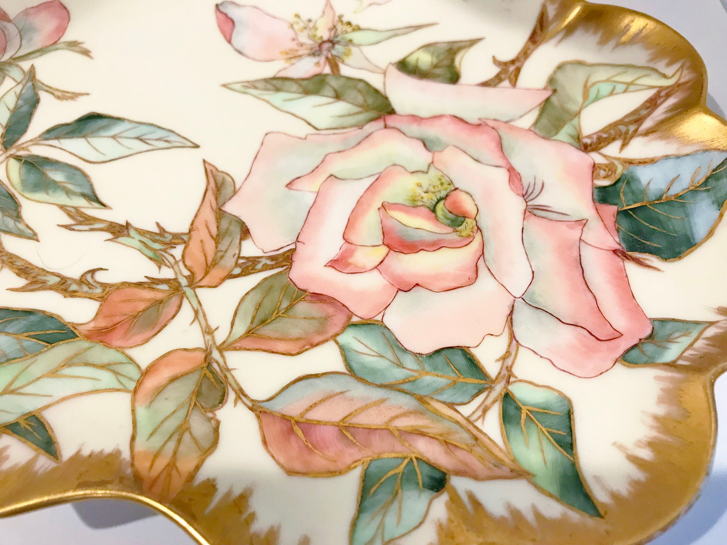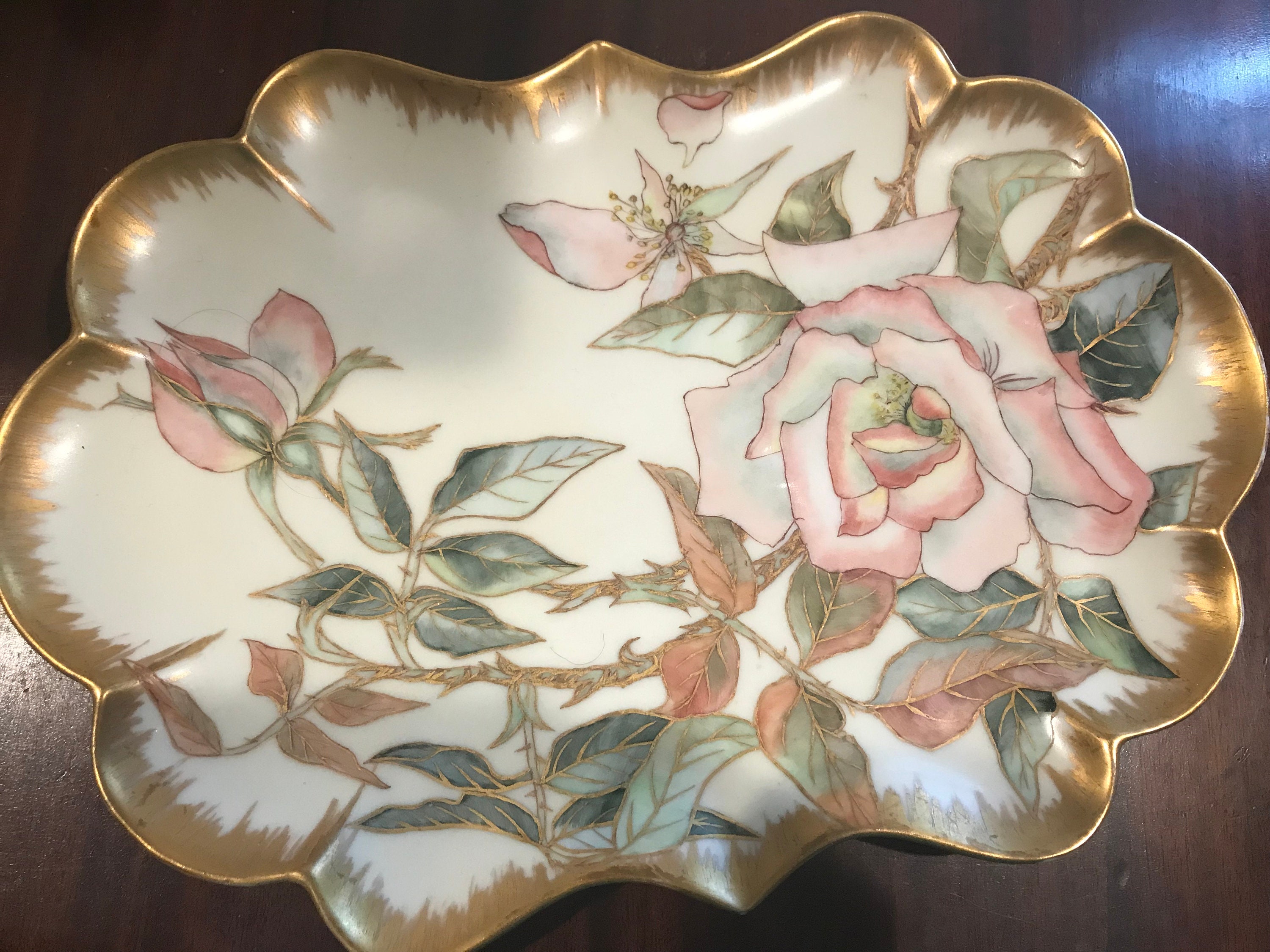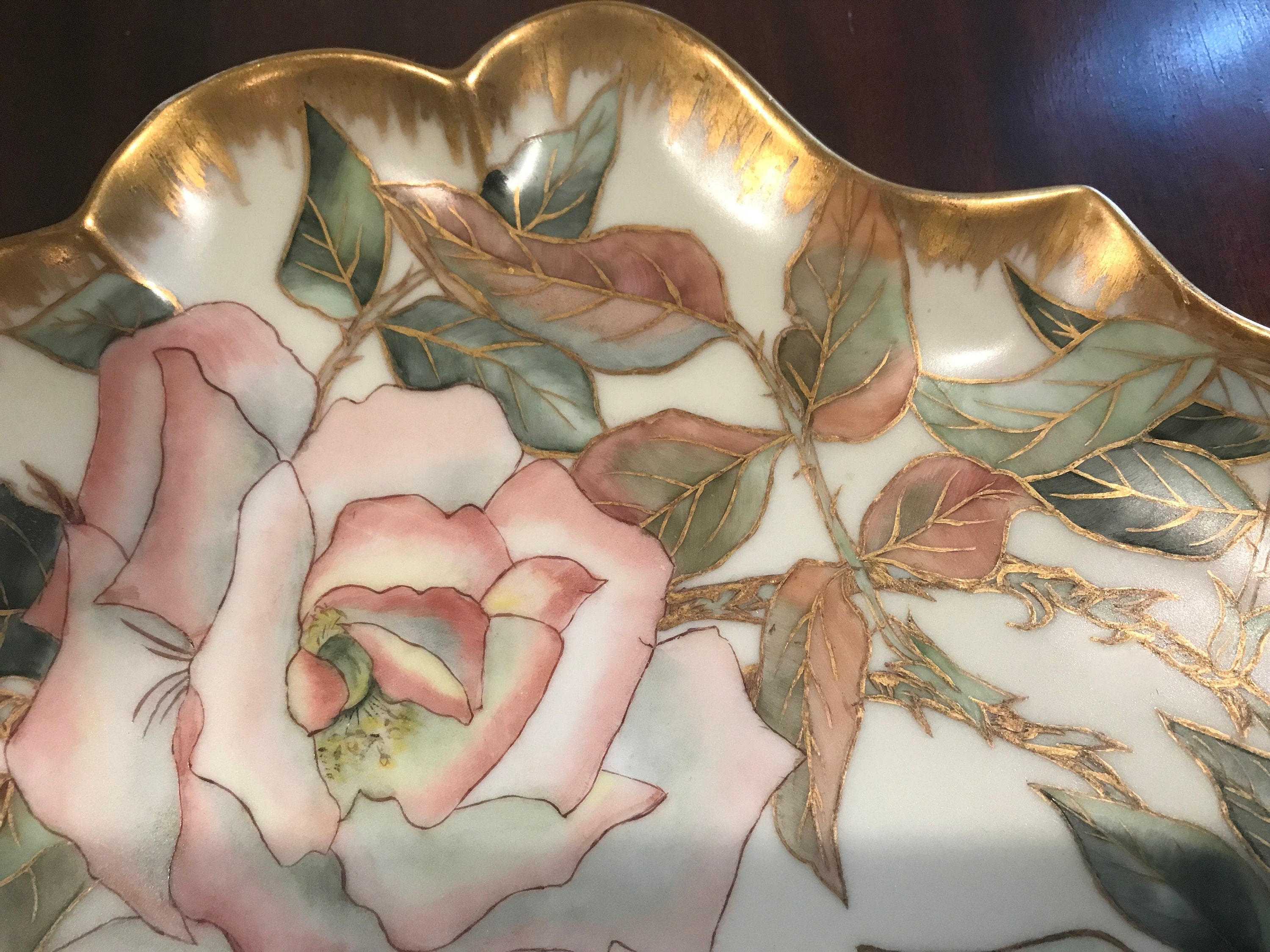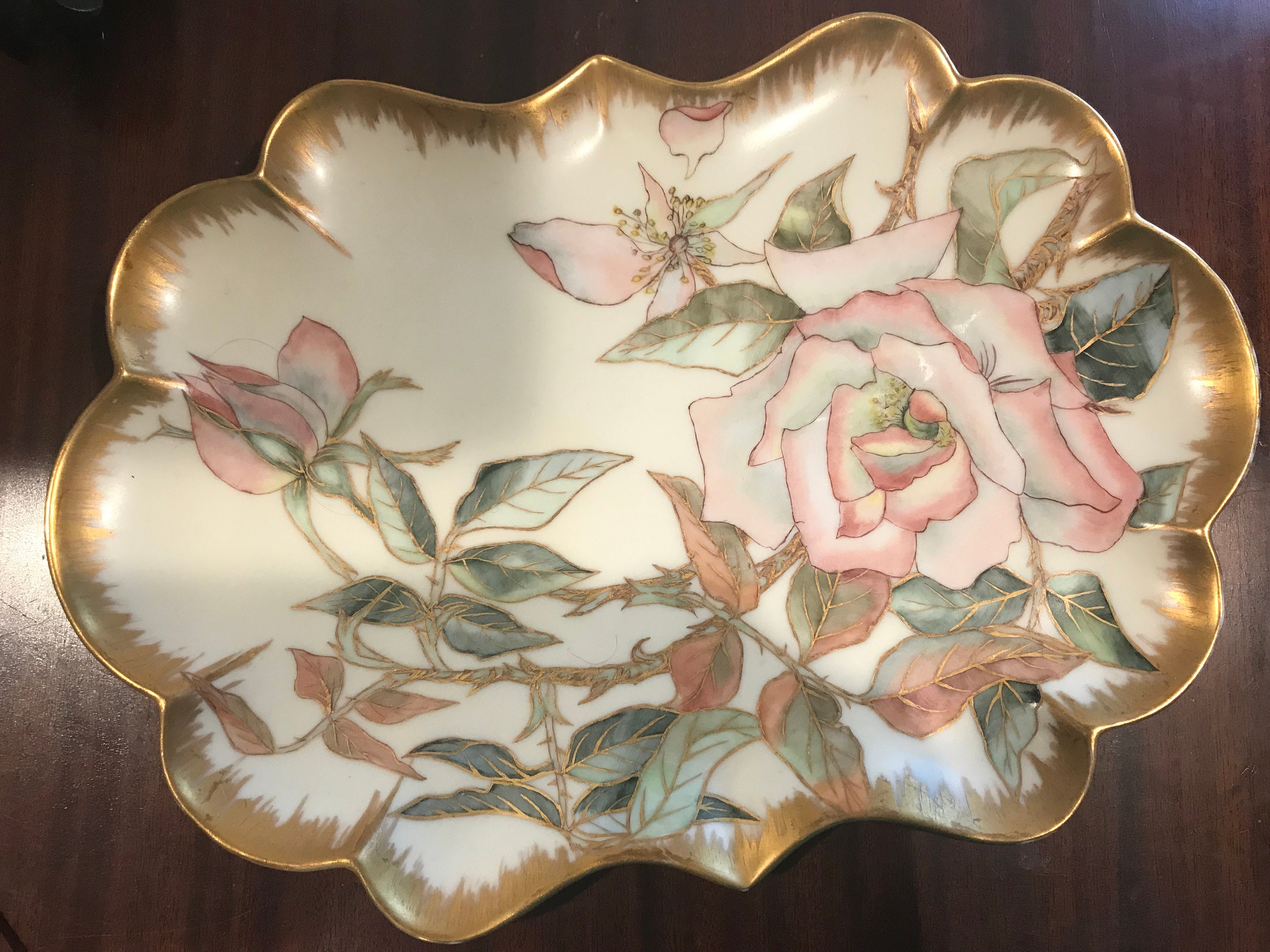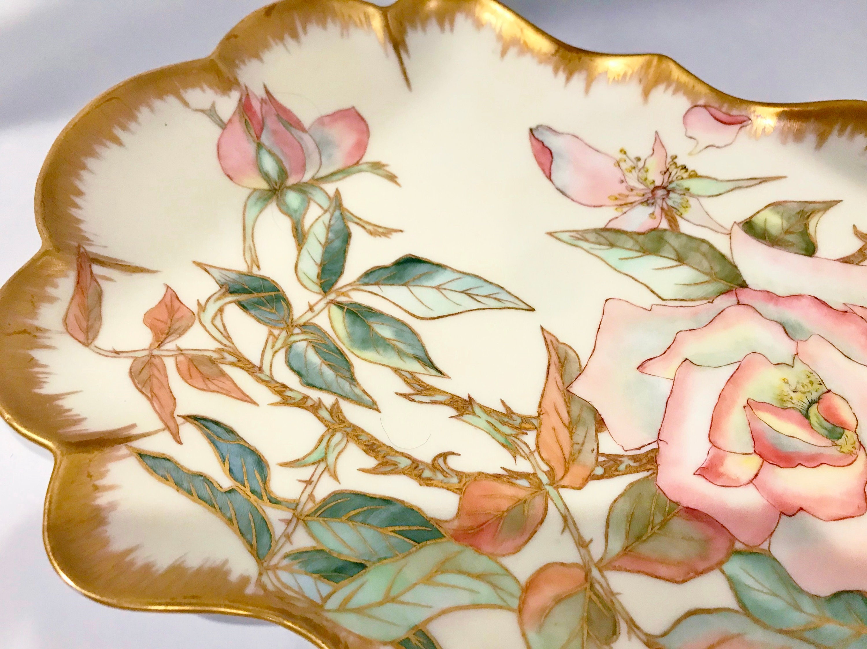 Antique Vanity Tray, Hand Painted Vanity Tray, English Bone China Pin Tray, Serving Tray, Vanity Accessory, Porcelain Tray, Rose Vanity Tray