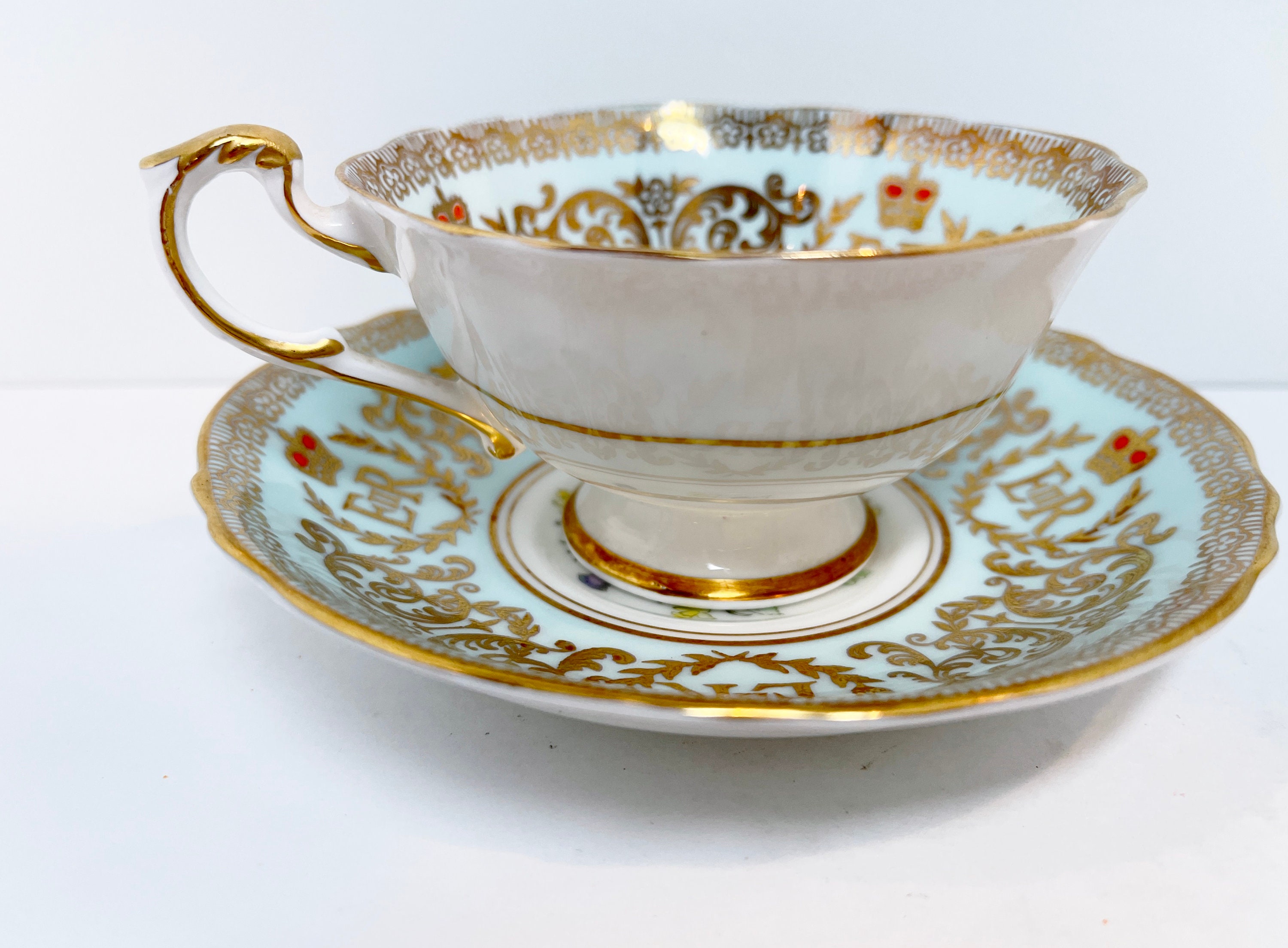 Double Warrant Paragon Teacup, Queen Elizabeth Coronation, Paragon Royalty, Vintage Tea Cups, Antique Teacups, Aqua Gold Teacups