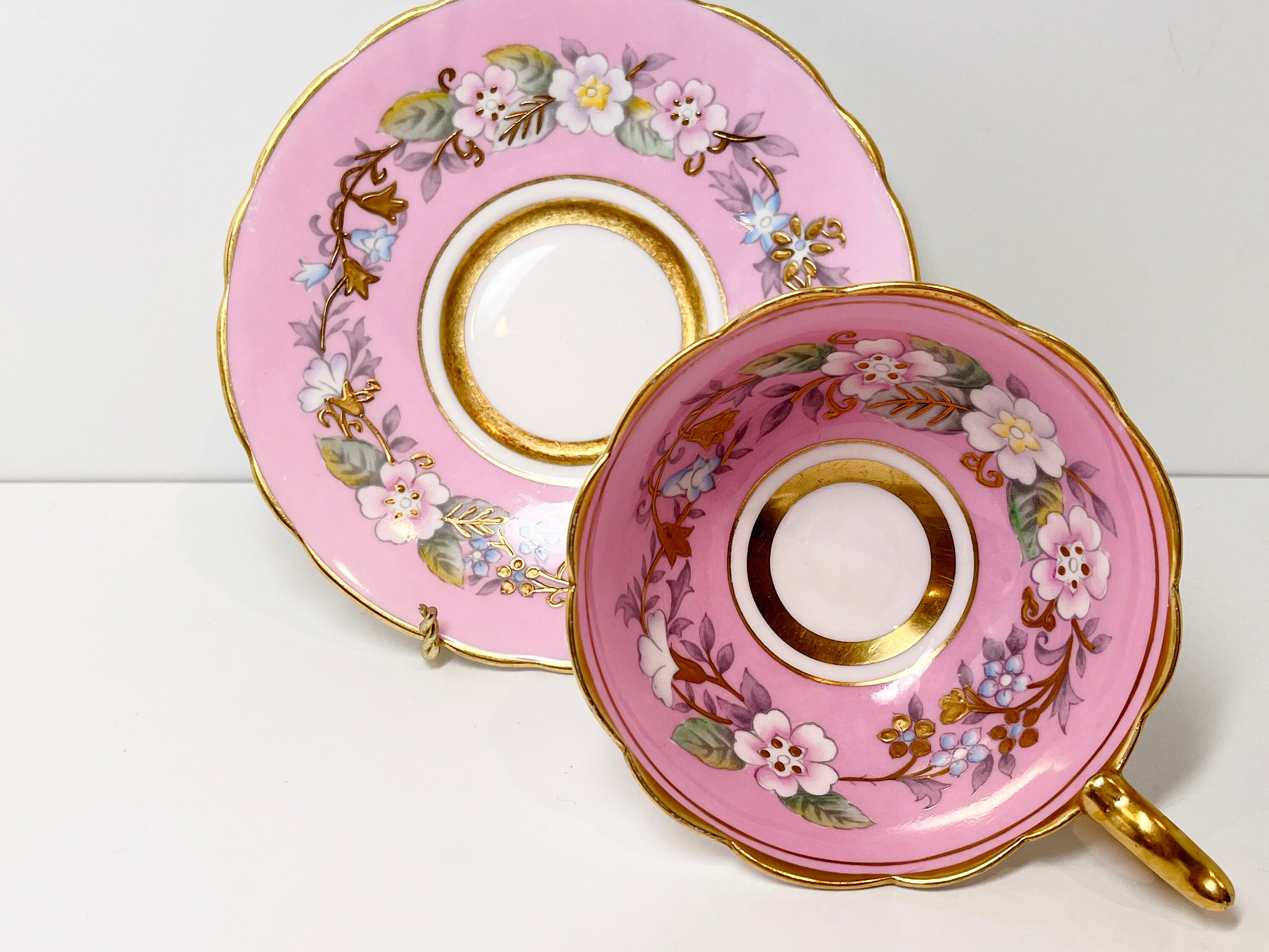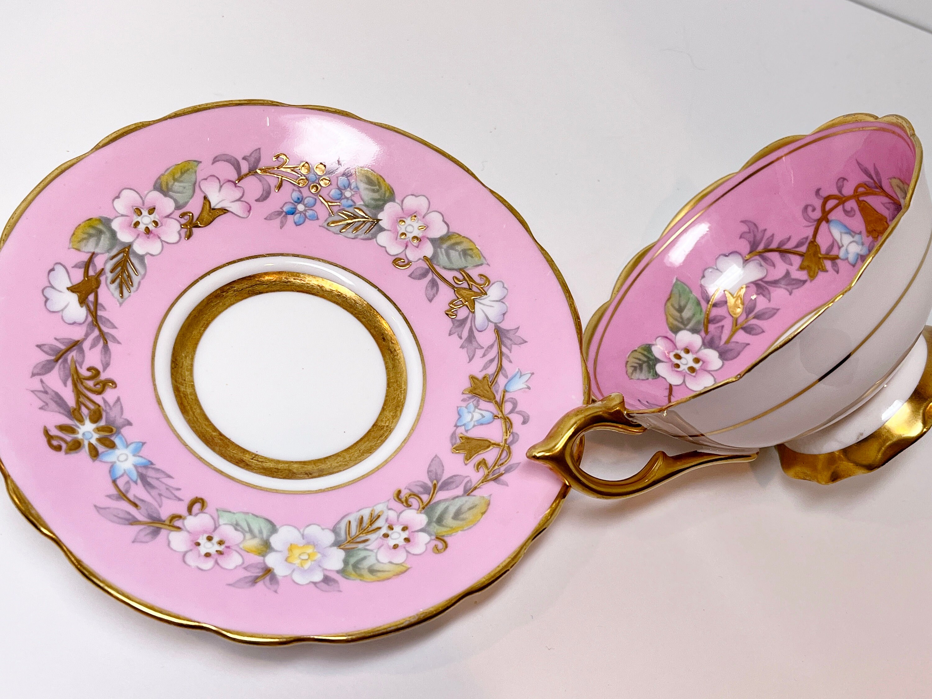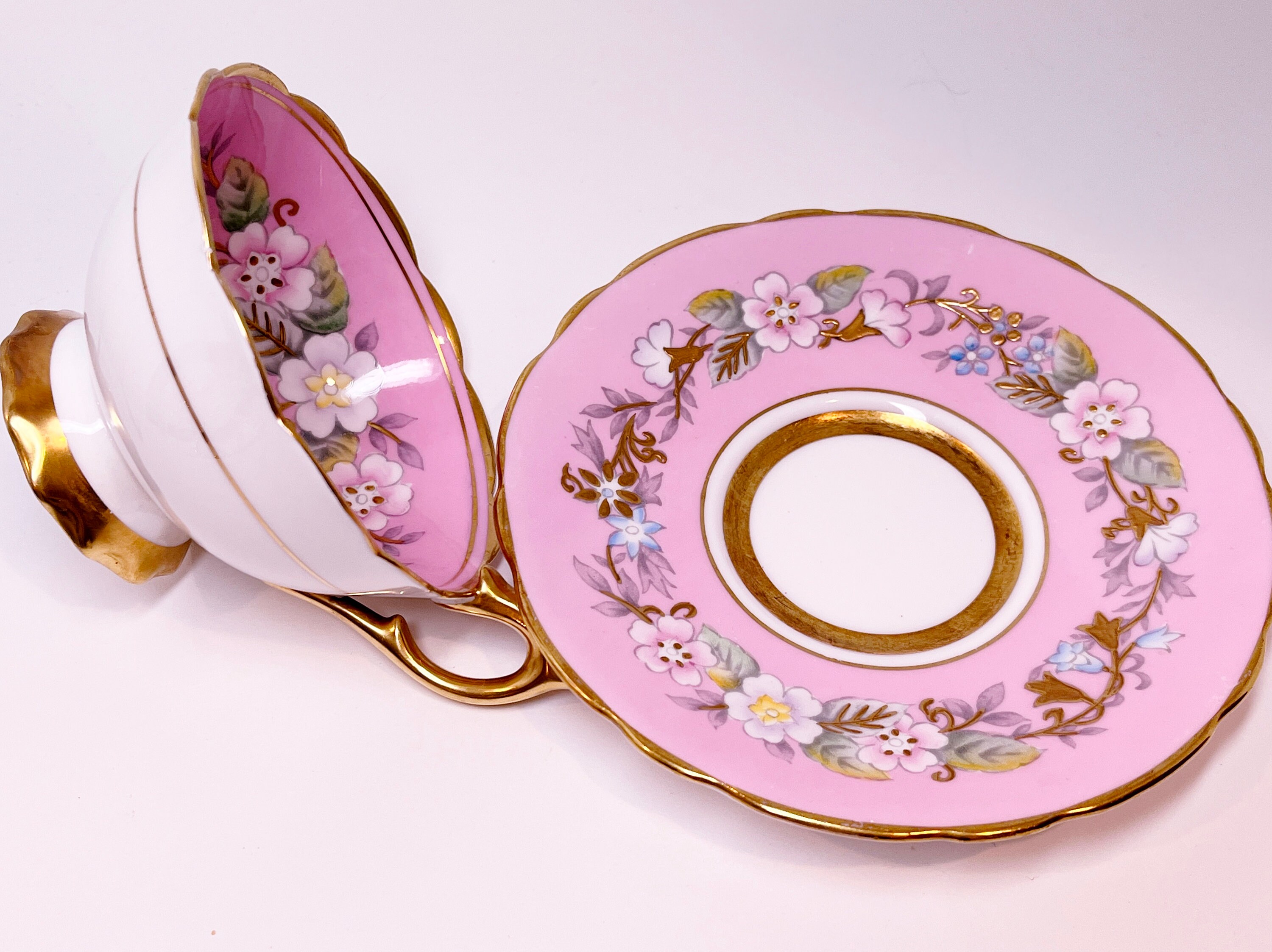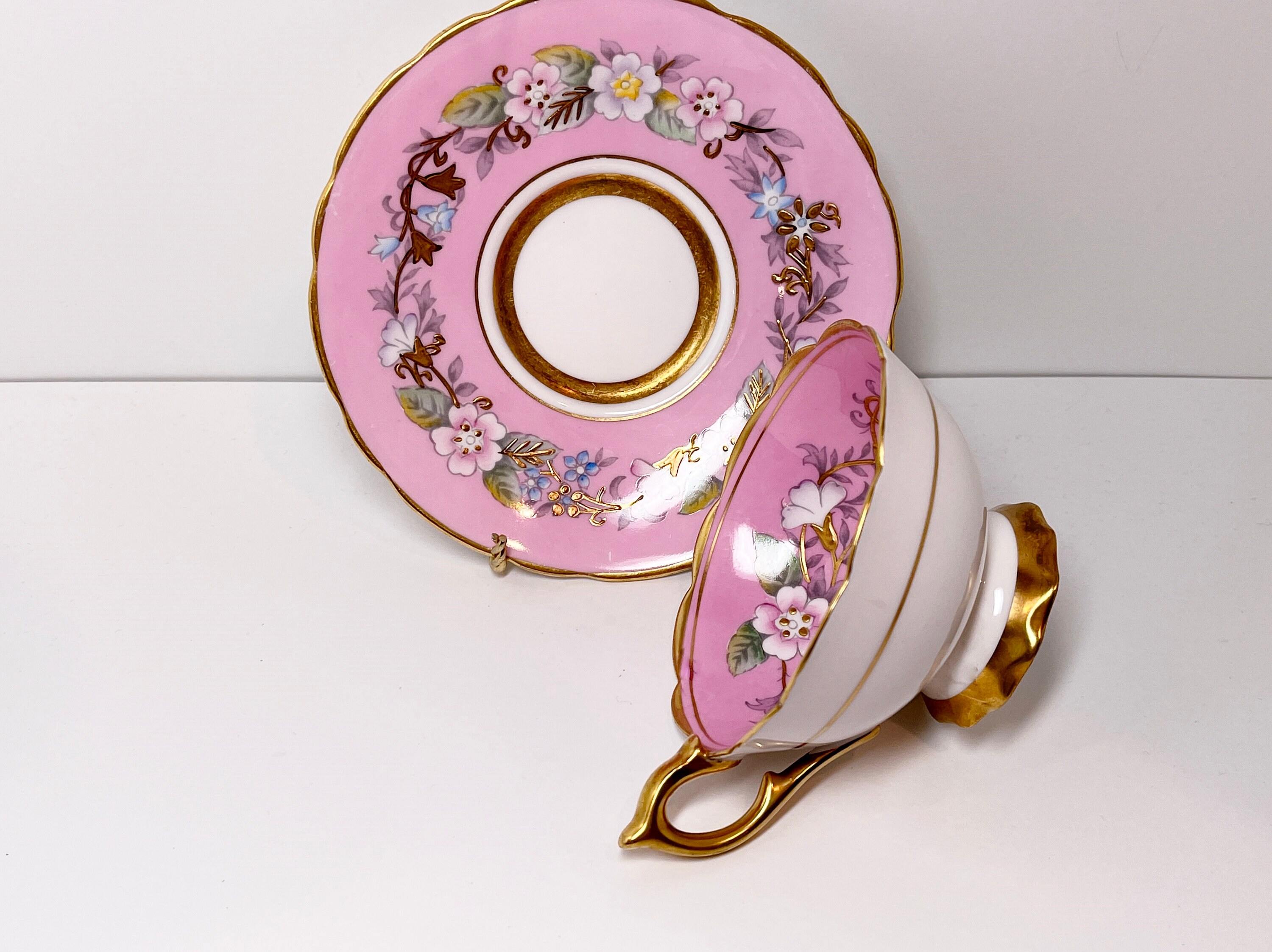 Garland Teacup, Royal Stafford Teacup and Saucer, Hand Painted Teacup, Antique Teacups, Pink Garland Teacup, Floral Teacups