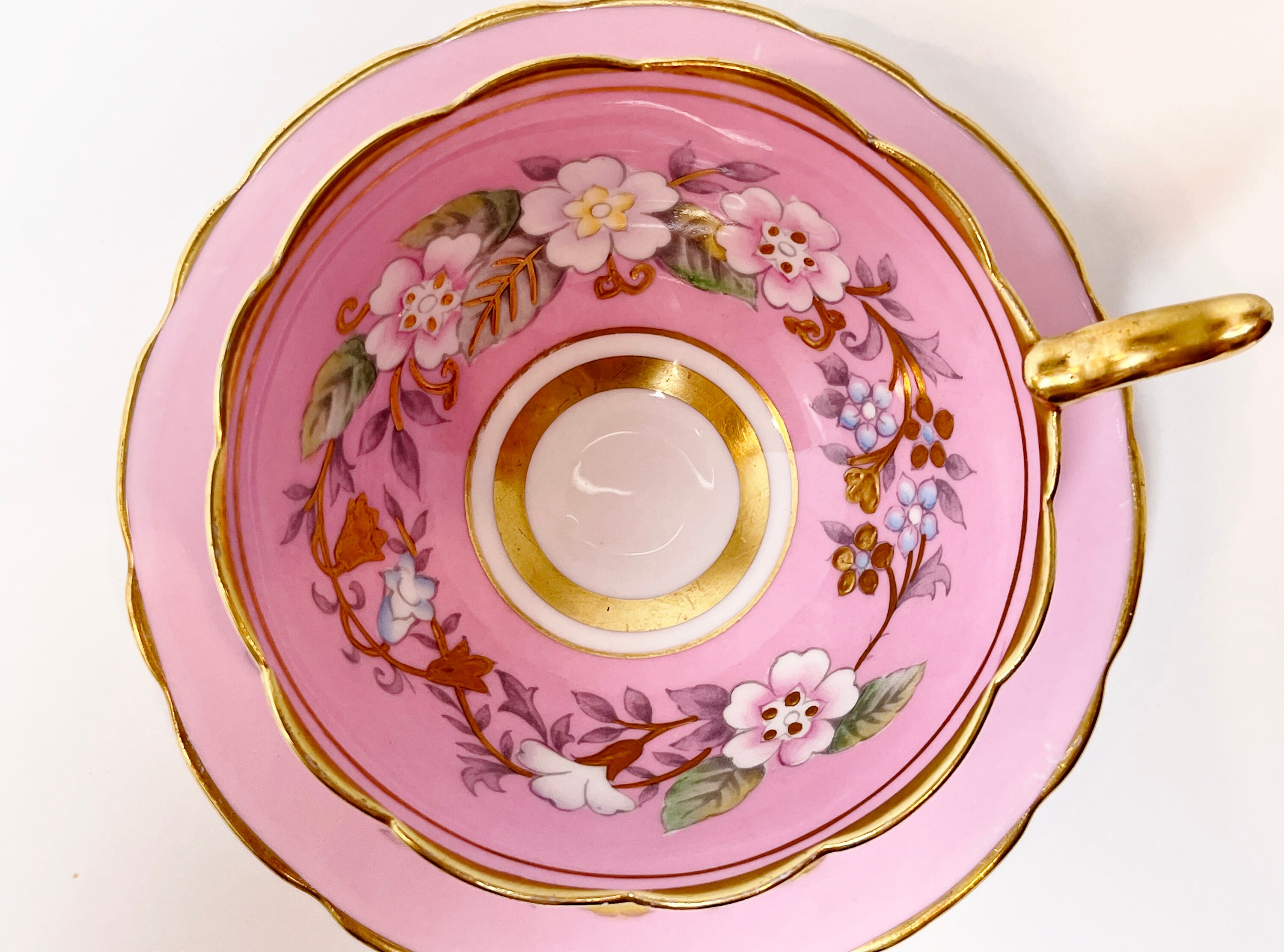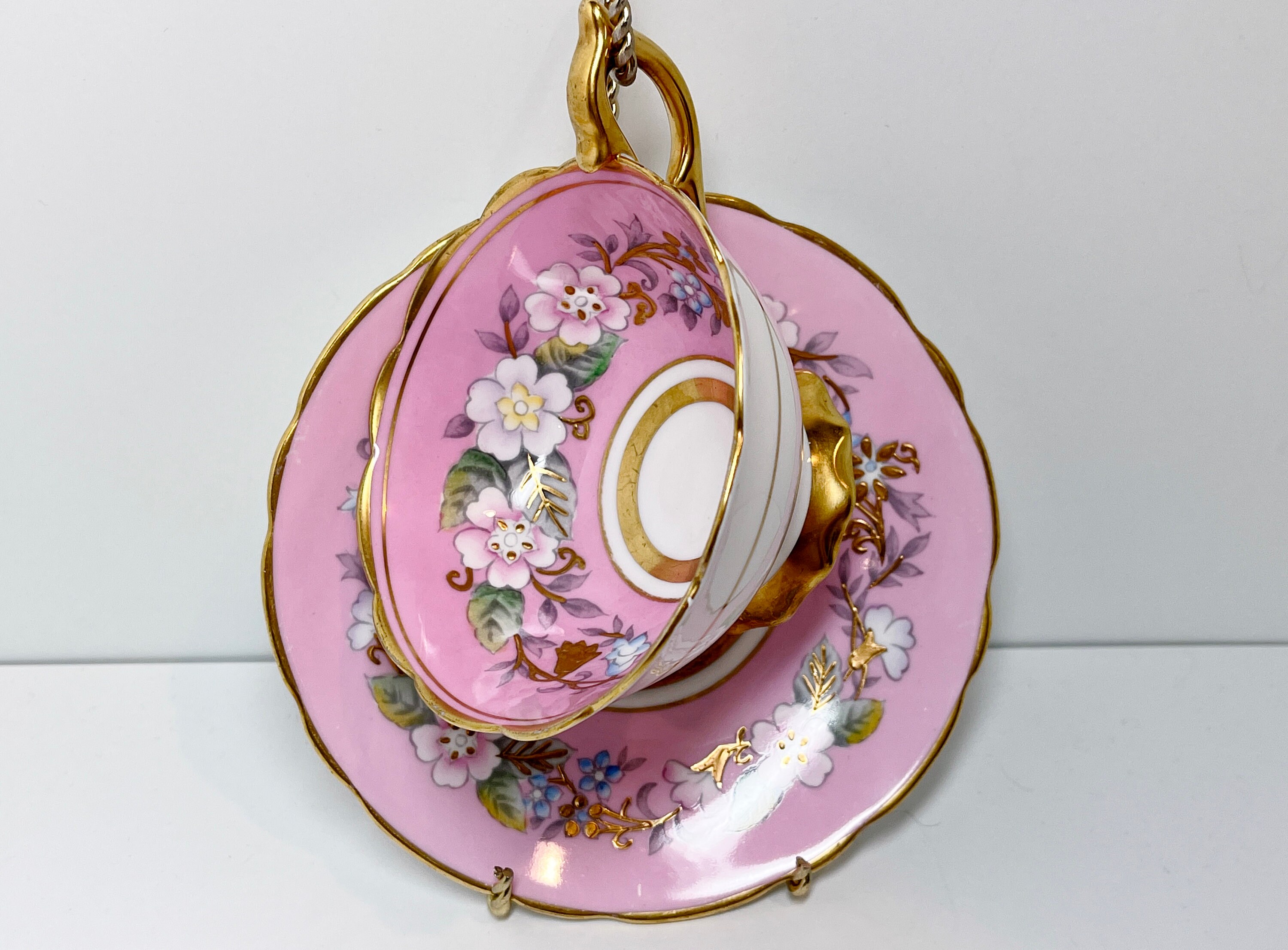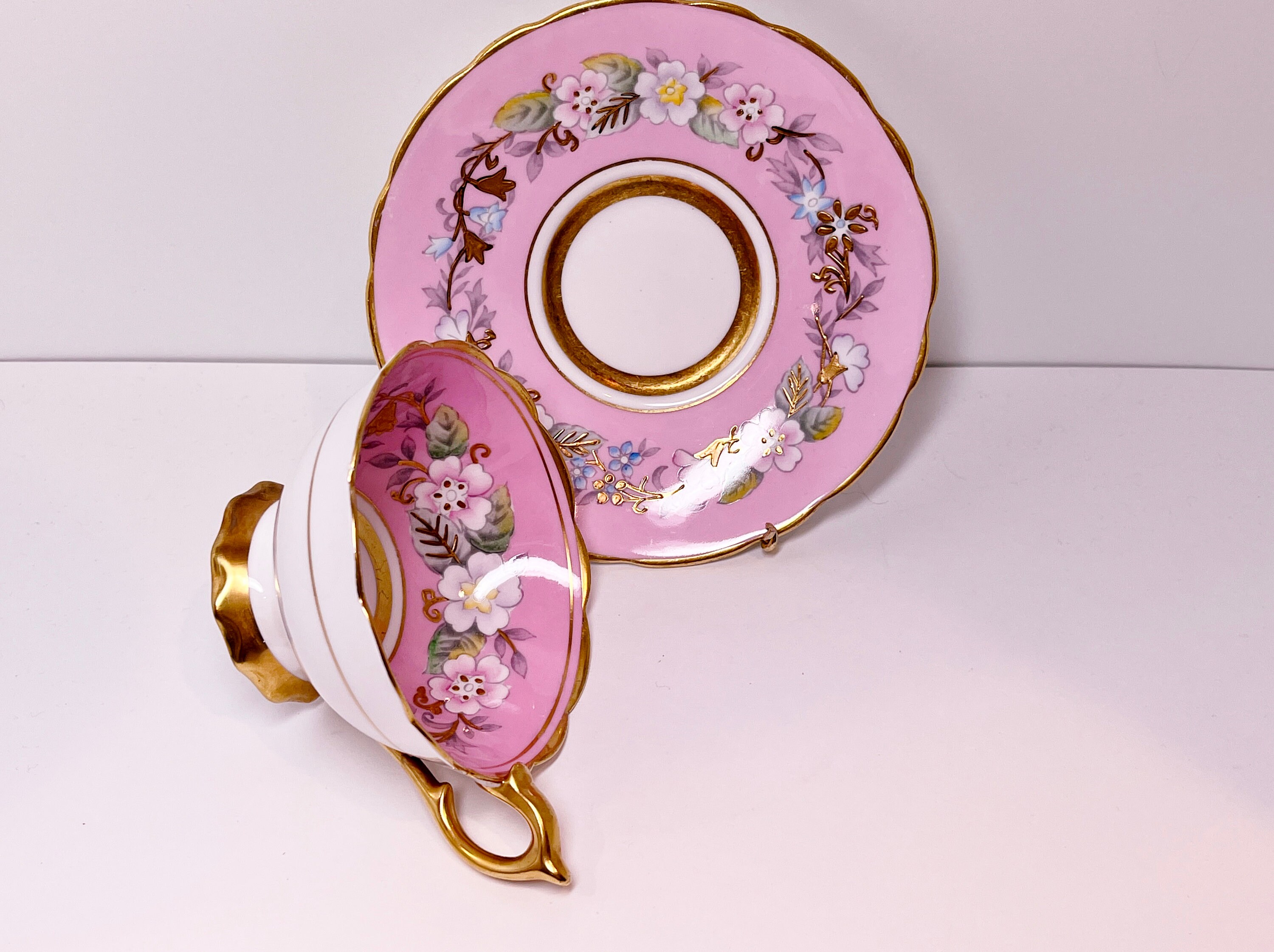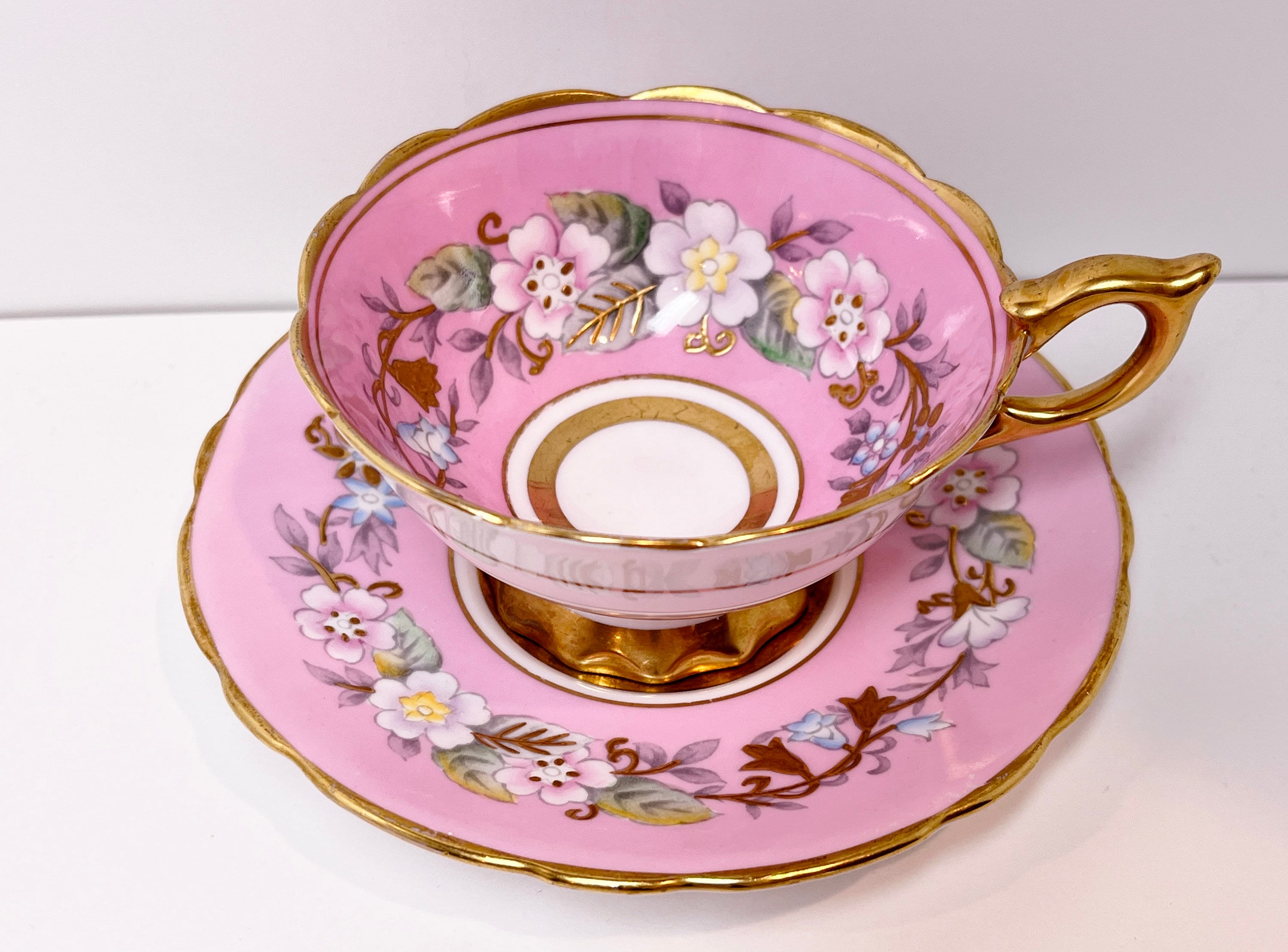 Garland Teacup, Royal Stafford Teacup and Saucer, Hand Painted Teacup, Antique Teacups, Pink Garland Teacup, Floral Teacups