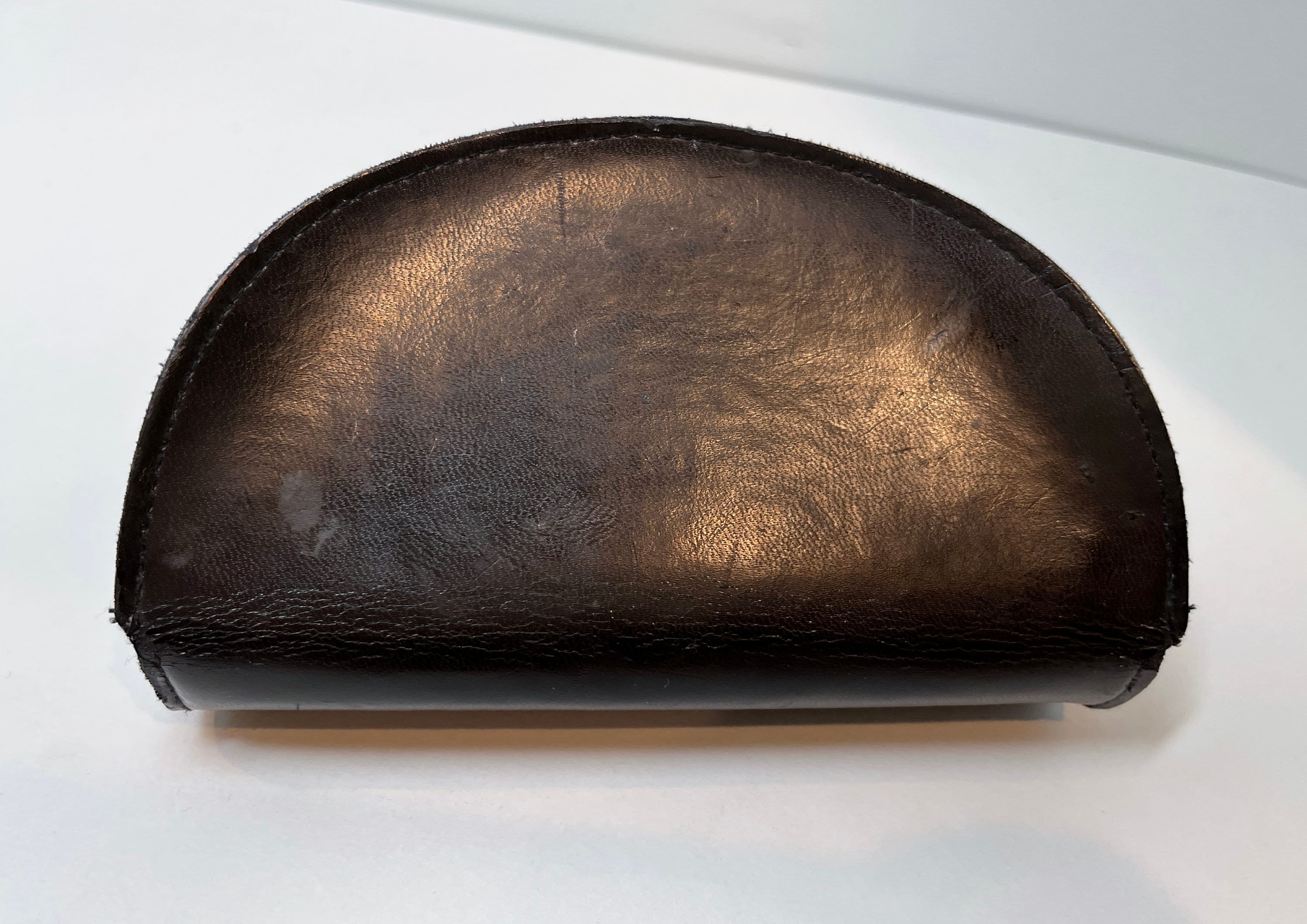 The leather case with a smooth leather is in excellent condition as is the inside. It does have a patina like a well loved wallet. Although we wish to make a sale, we prefer to have loyal, appreciative, repeat customers. Therefore we do not sell damaged items. You may buy with confidence.