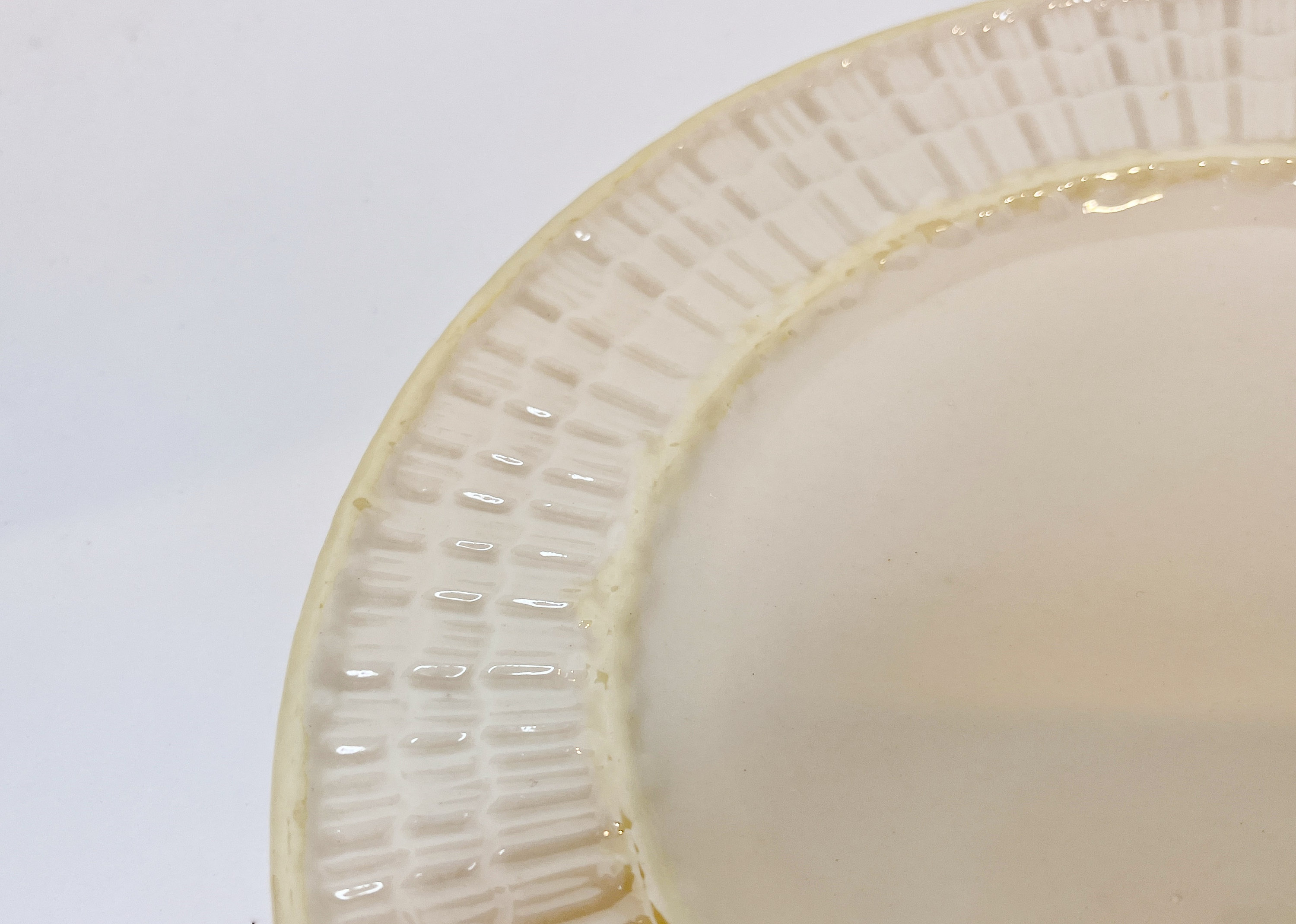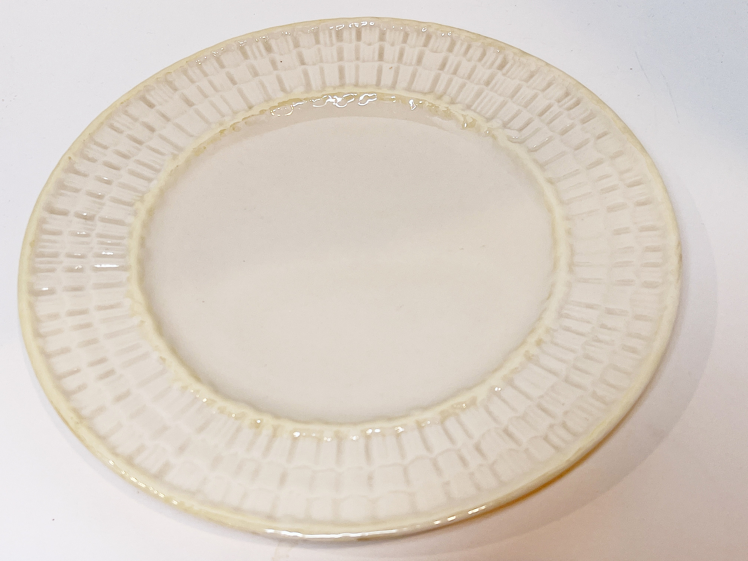 This charming plate would probably get used for serving elegant pastry, It was even offered in the 1928 Belleek catalog offerings.