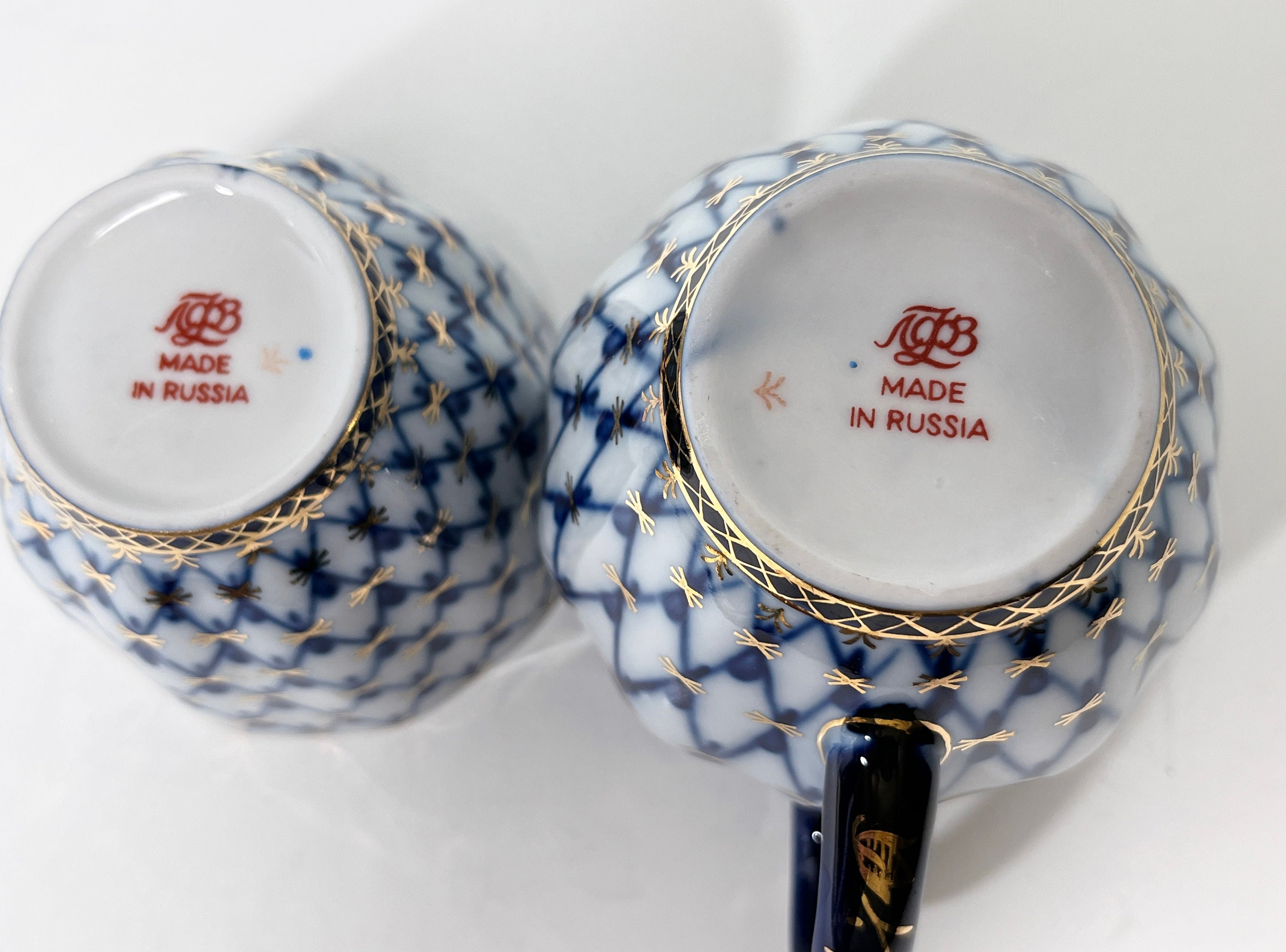 This set proudly wears the House of Lomonosov mark from the factory in Leningrad, USSR. It was produced sometime in the late twentieth century.