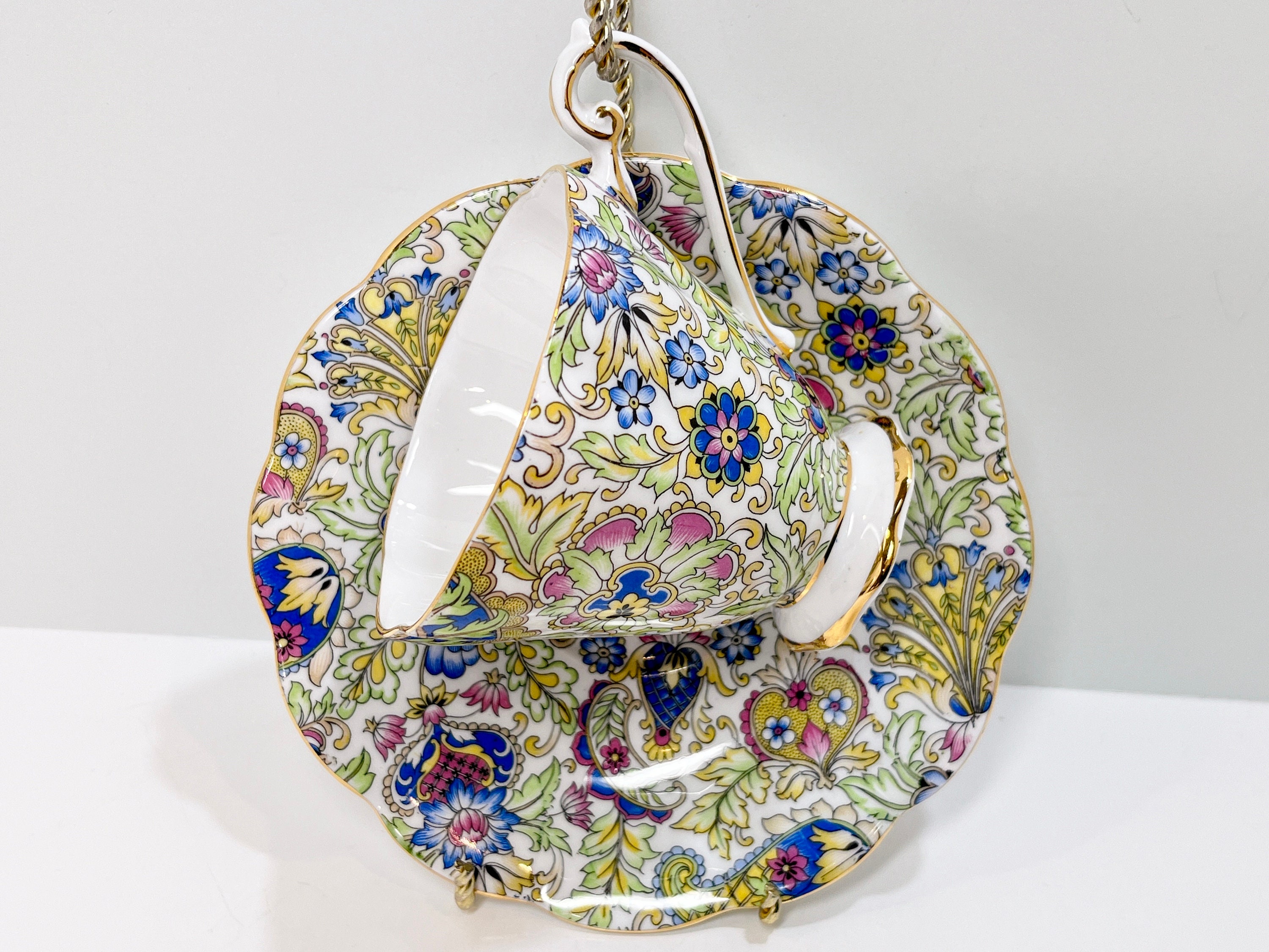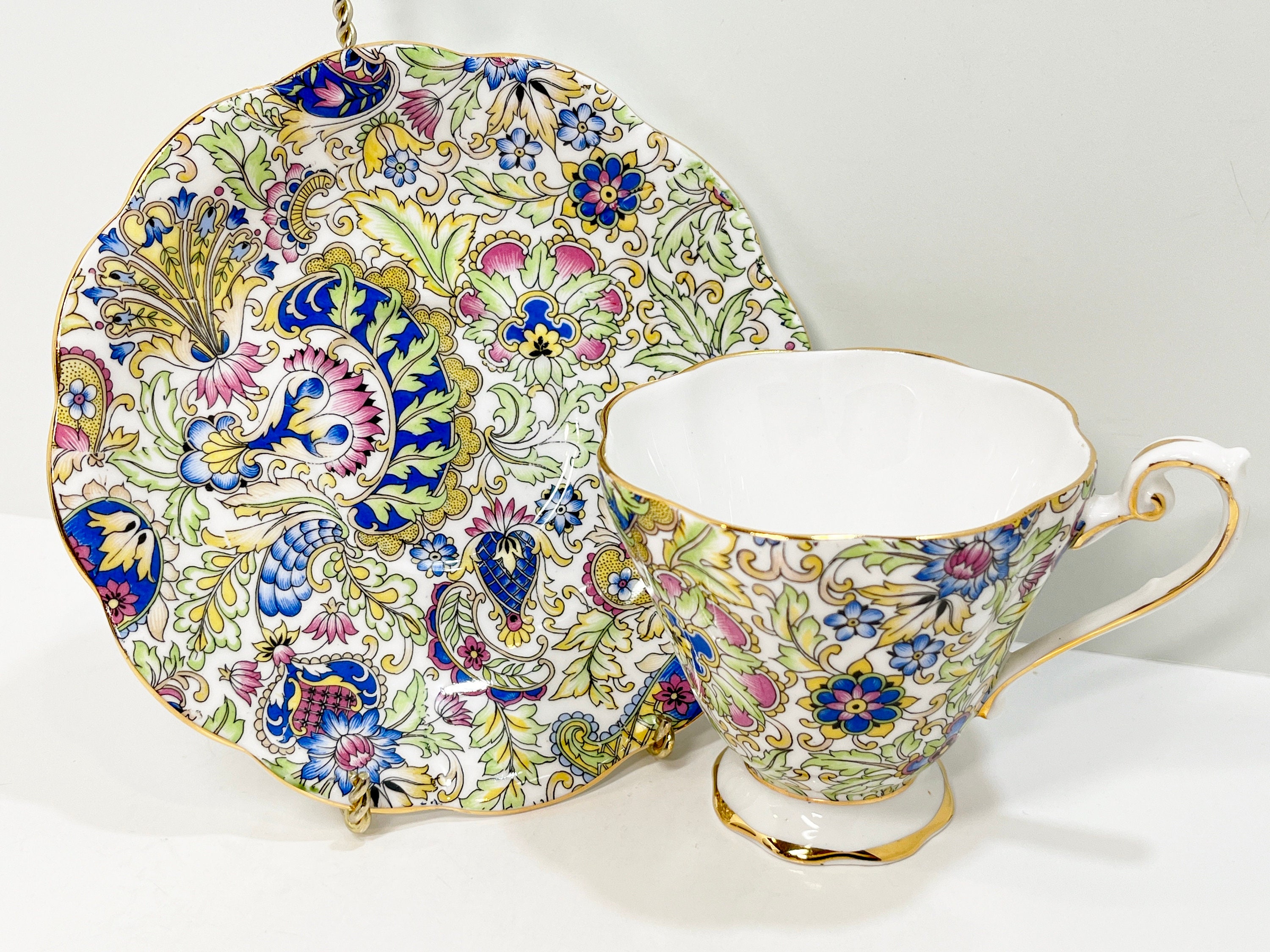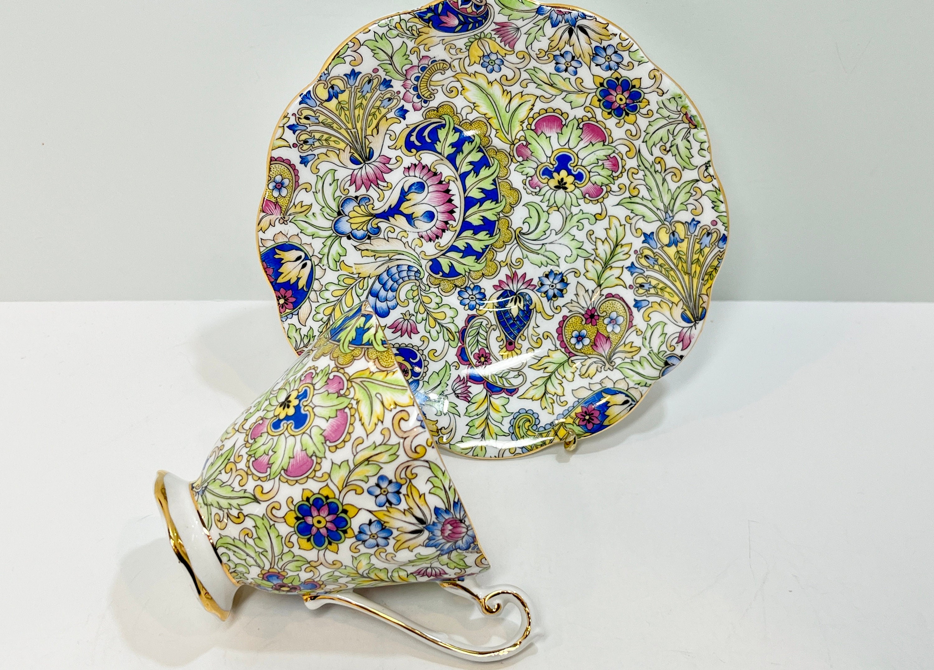 Royal Standard Fine Bone China of England crafted this showpiece teacup and saucer.