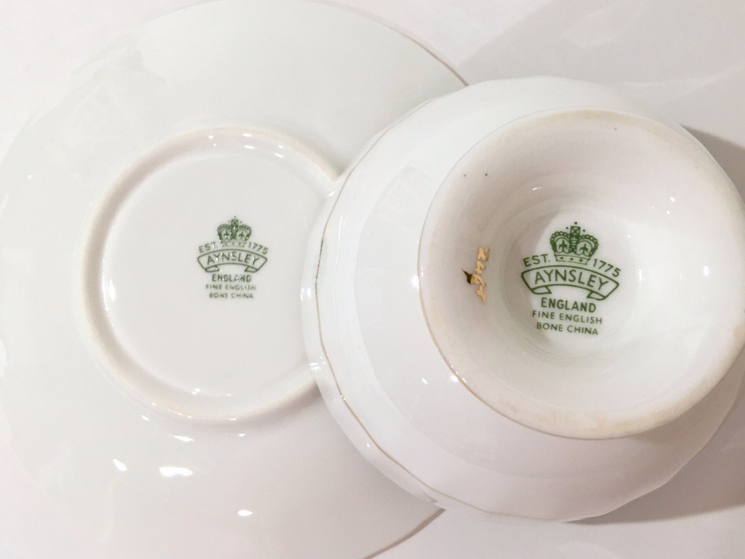 Aynsley manufacturing first used this mark in 1960. The company was a division of the John Aynsley and Sons Ltd company of Portland Works in Longton, England, one of the Staffordshire potteries. It was first established in 1864. Aynsley has become one of most sought after collectible teacups.