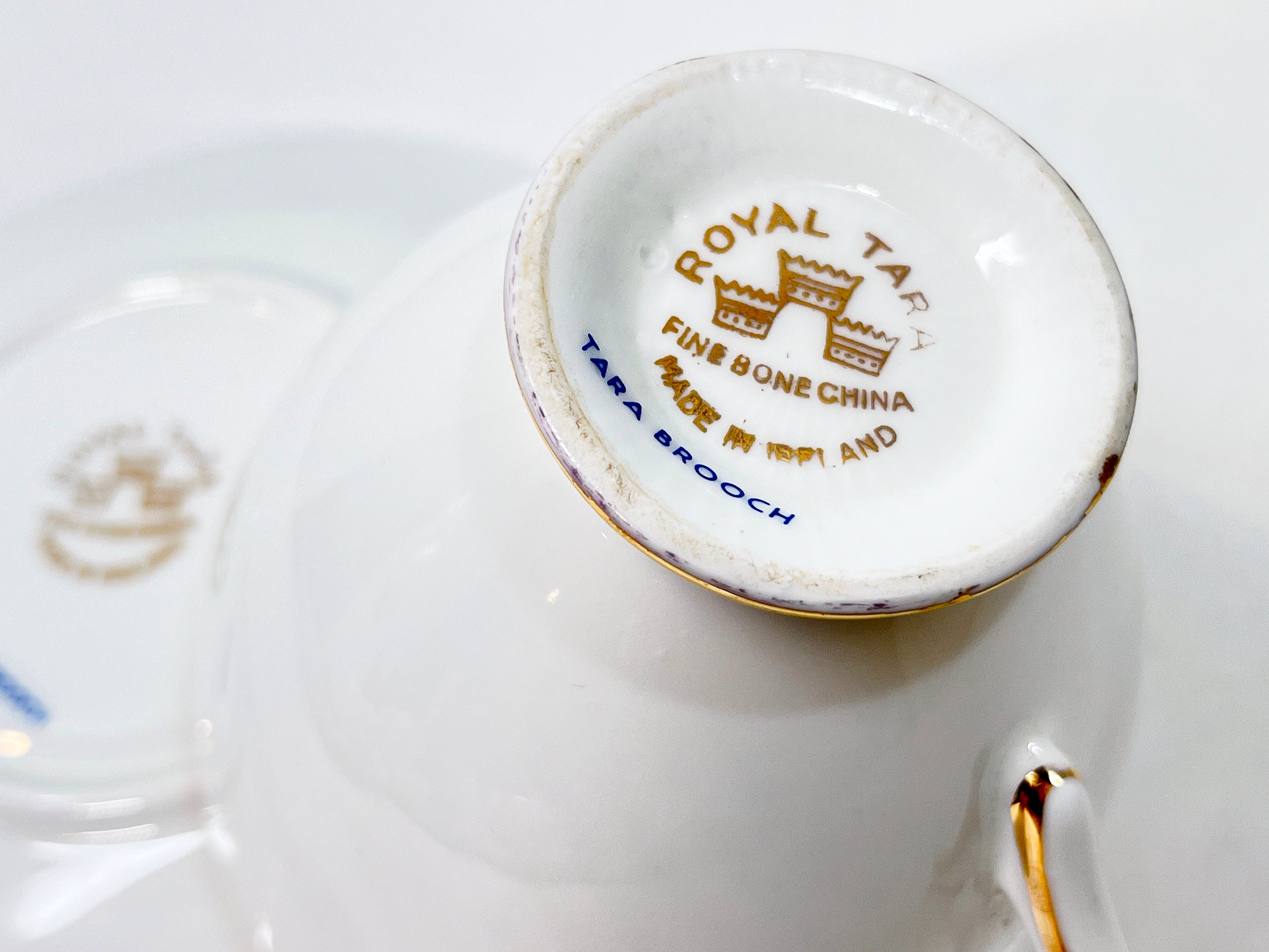 Royal Tara is a brand of fine bone china that originated in Belleek, Ireland, in the late 1940s. It was named after the Hill of Tara, an ancient site in Ireland that was once the seat of the High Kings of Ireland. The brand was founded by George Delaney, who had previously worked for Belleek Pottery and later set up his own business in Fermanagh. He partnered with a local businessman named Ernest Gribbon, and together they established the Royal Tara China company.