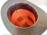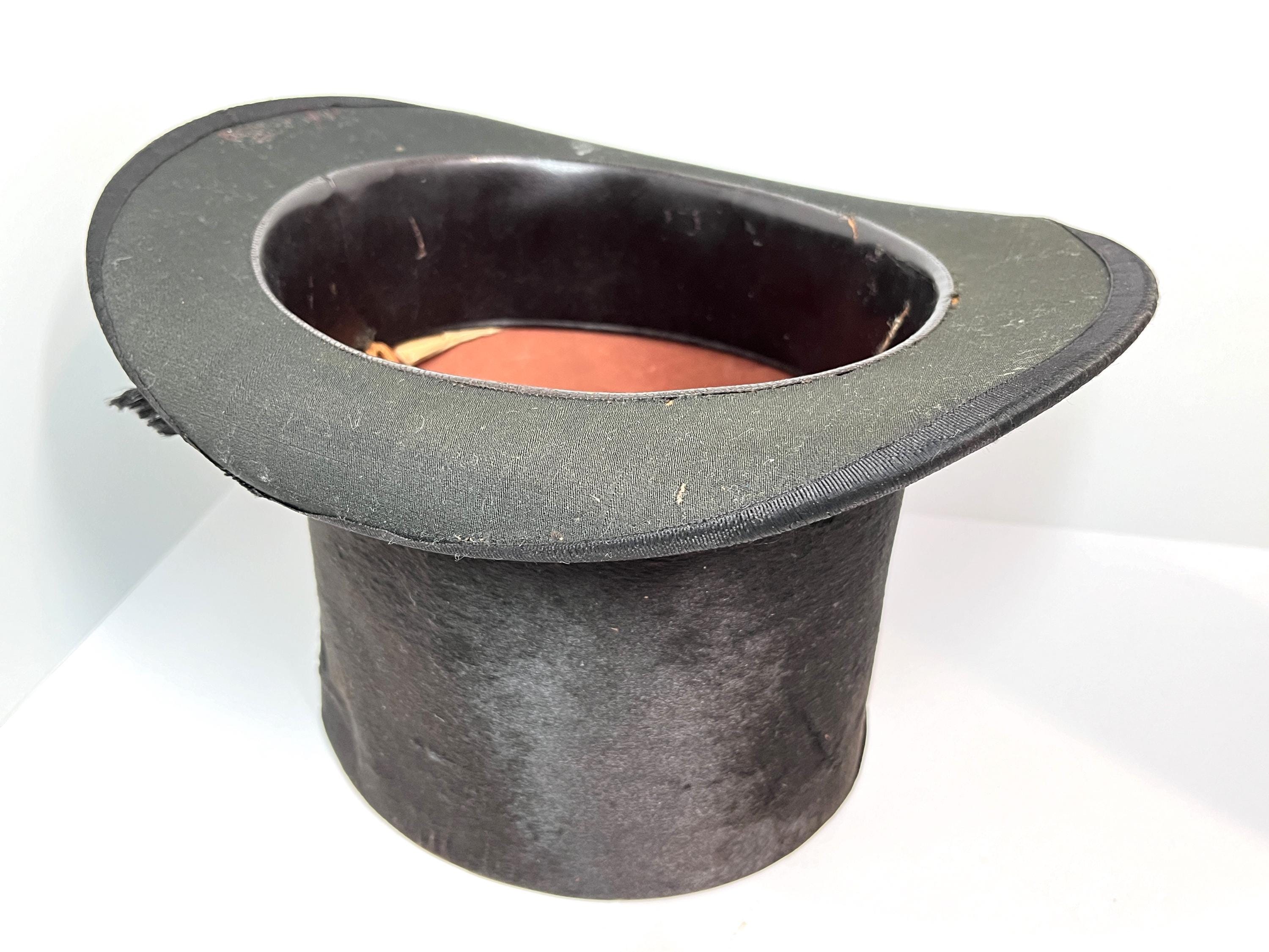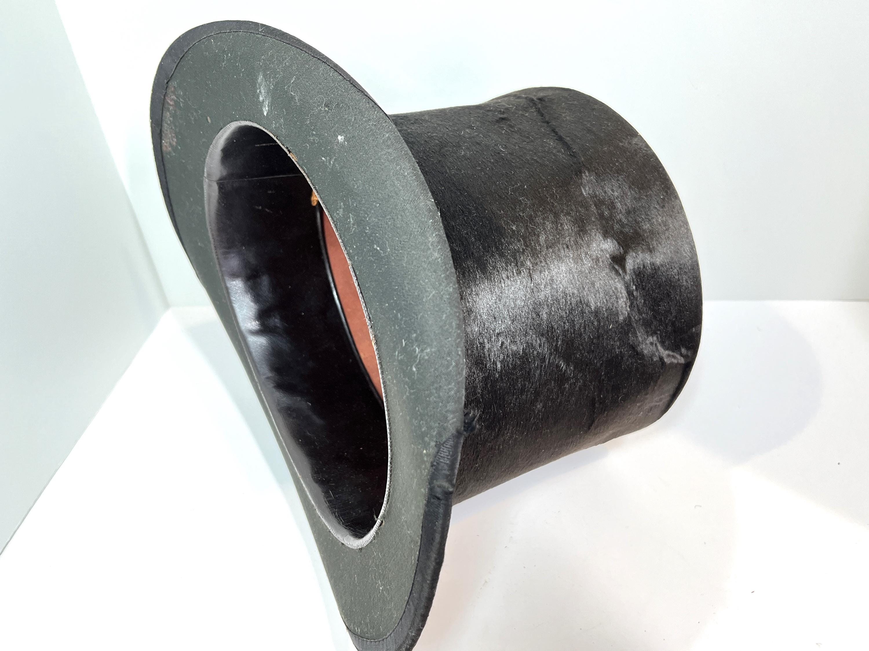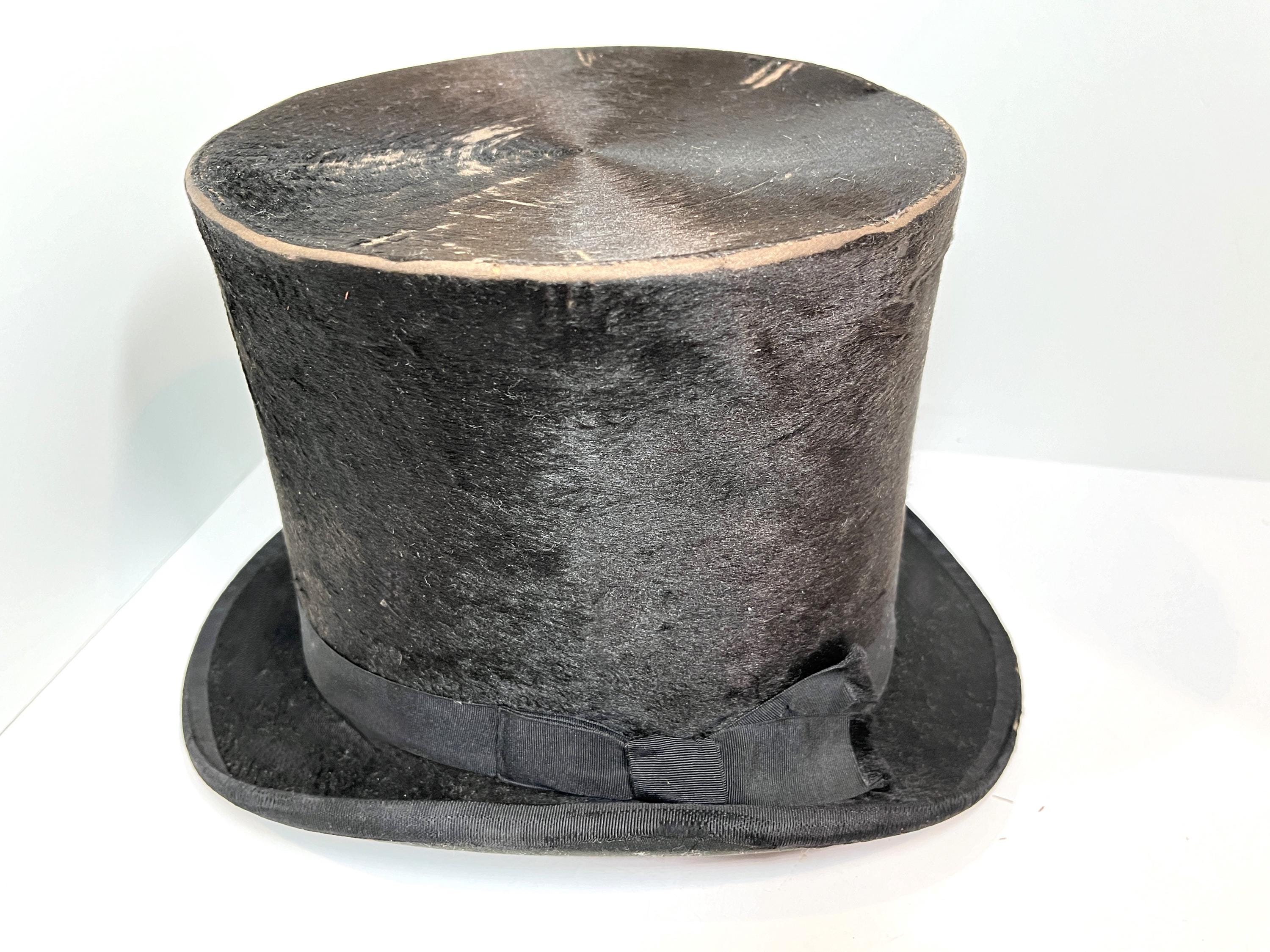 To make felt, the underhairs were shaved from the beaver pelt and mixed with a vibrating hatter's bow. The matted fabric was pummeled and boiled repeatedly, resulting in a shrunken and thickened felt. Filled over a hat-form block, the felt was pressed and steamed into shape. The hat maker then brushed the outside surface to a sheen
