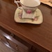 Measurements: The saucer is 5.1" by 4.75". The cup is 3" high and 3" from rim to rim.