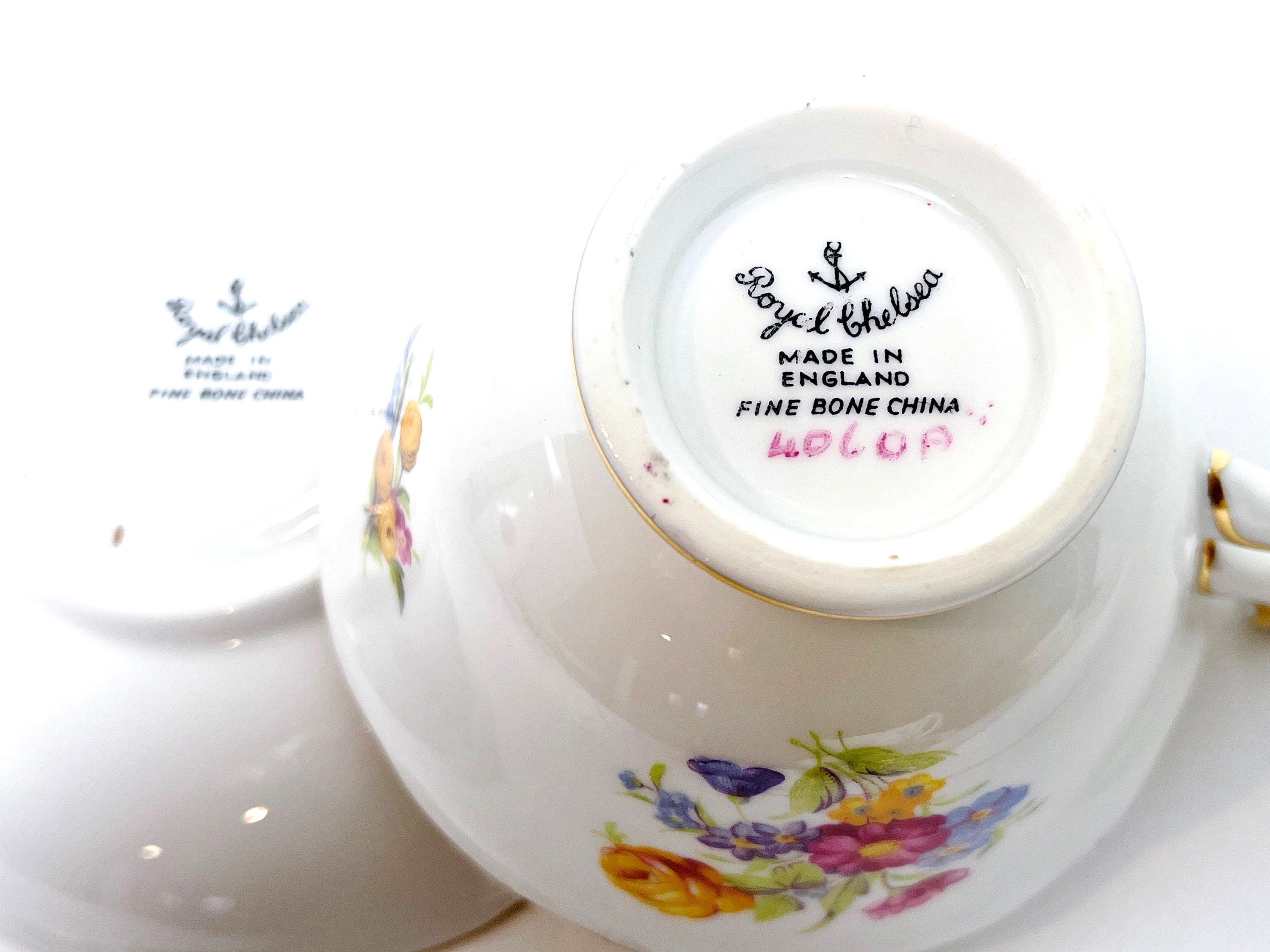 The manufacturer was Royal Chelsea Bone China of England. It was crafted between 1952 - 1961. They manufactured on Chelsea Street in Longton, England and later were acquired by Grosvenor China Ltd.