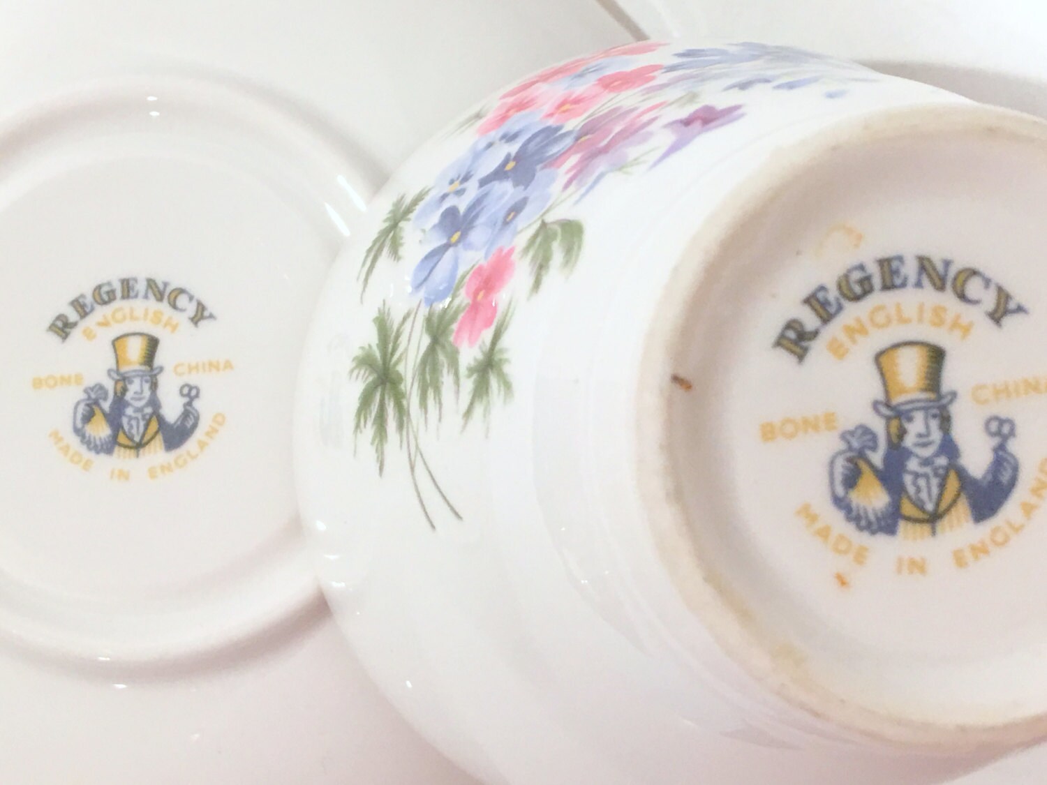 Regency Bone China of England crafted this attractive tea cup and saucer during the mid century.