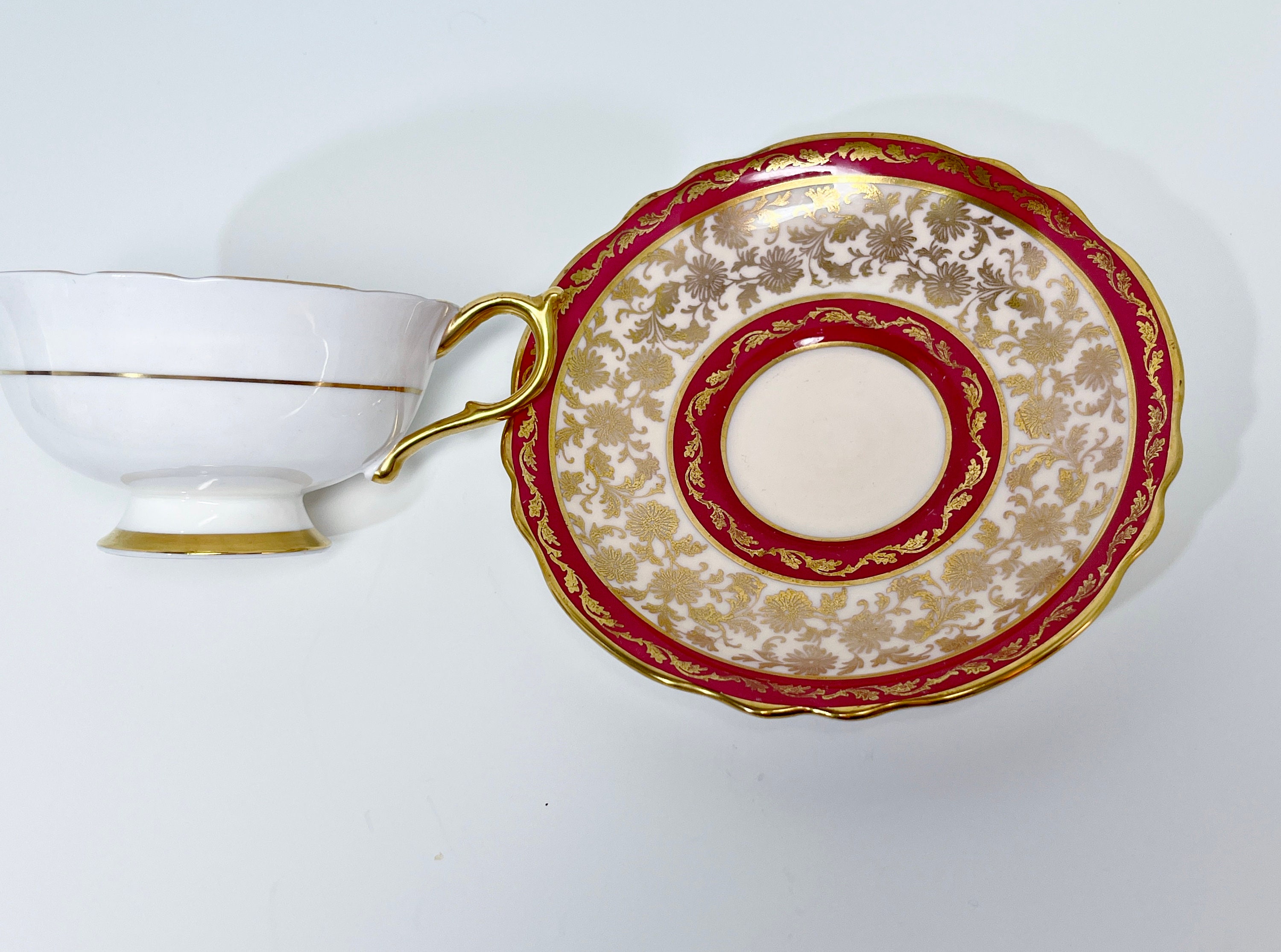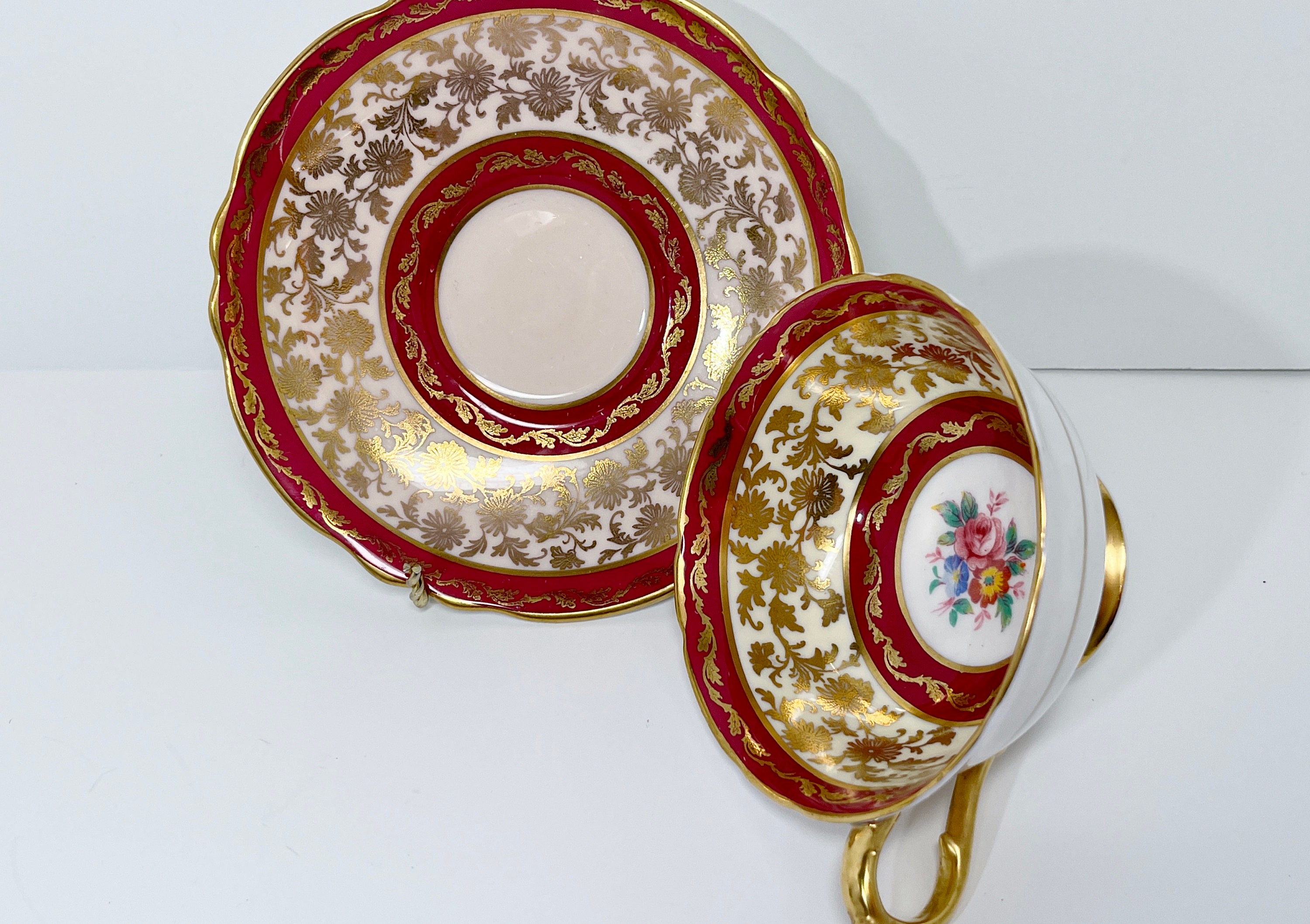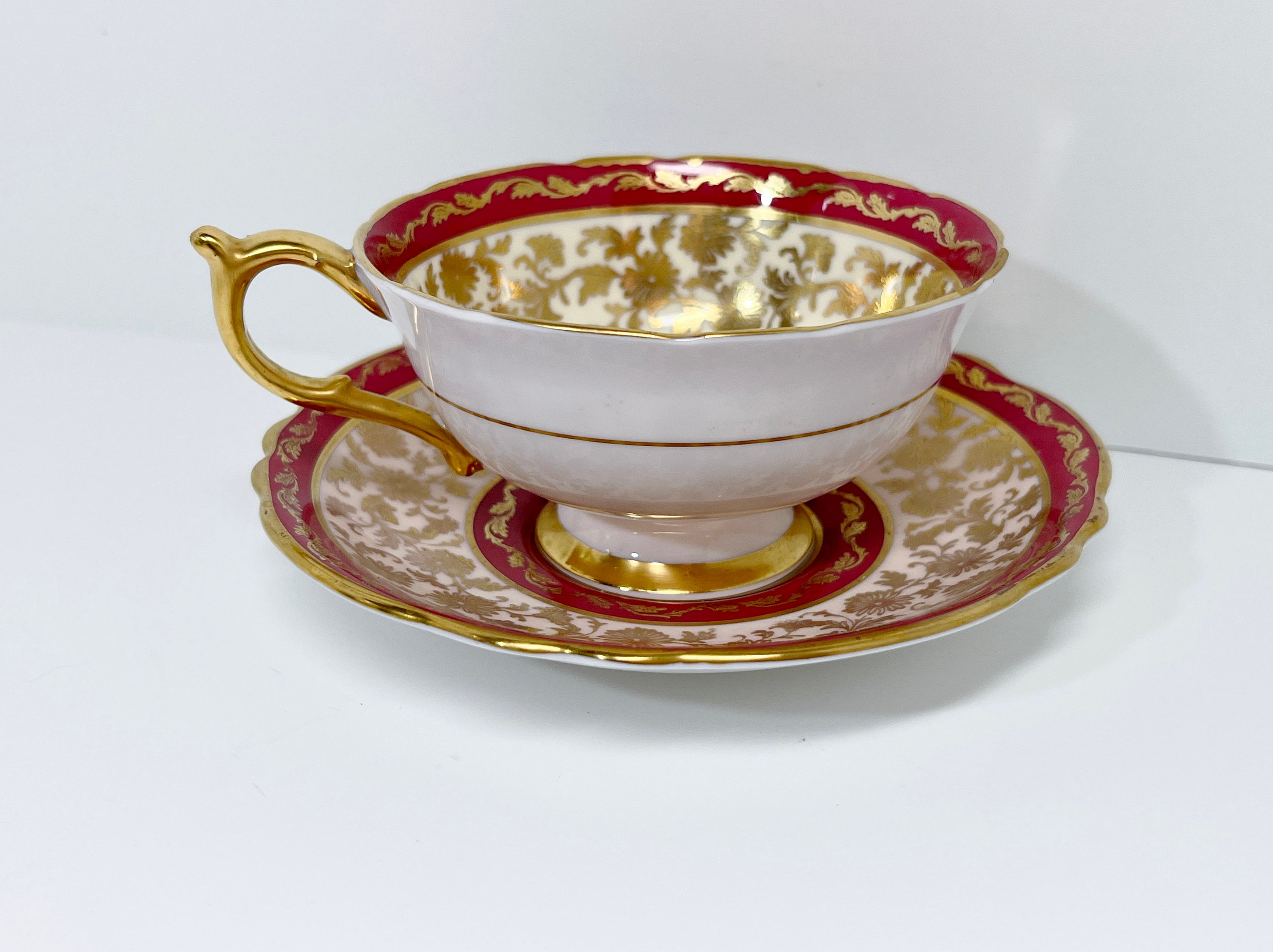 Paragon, with its double royal appointment from Queen Elizabeth and Queen Mary, proudly introduced this luxurious regal teacup and saucer in 1935.