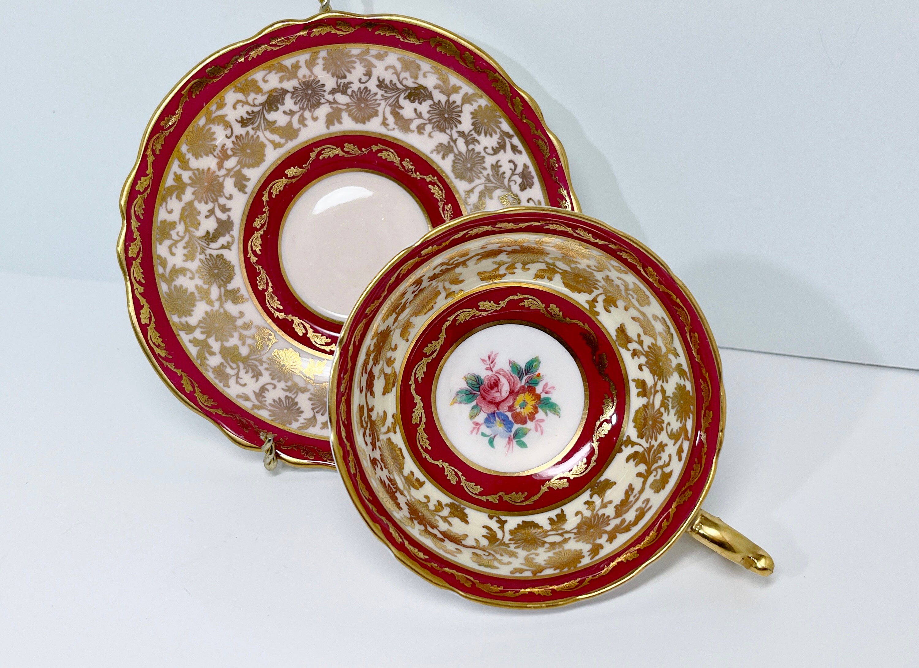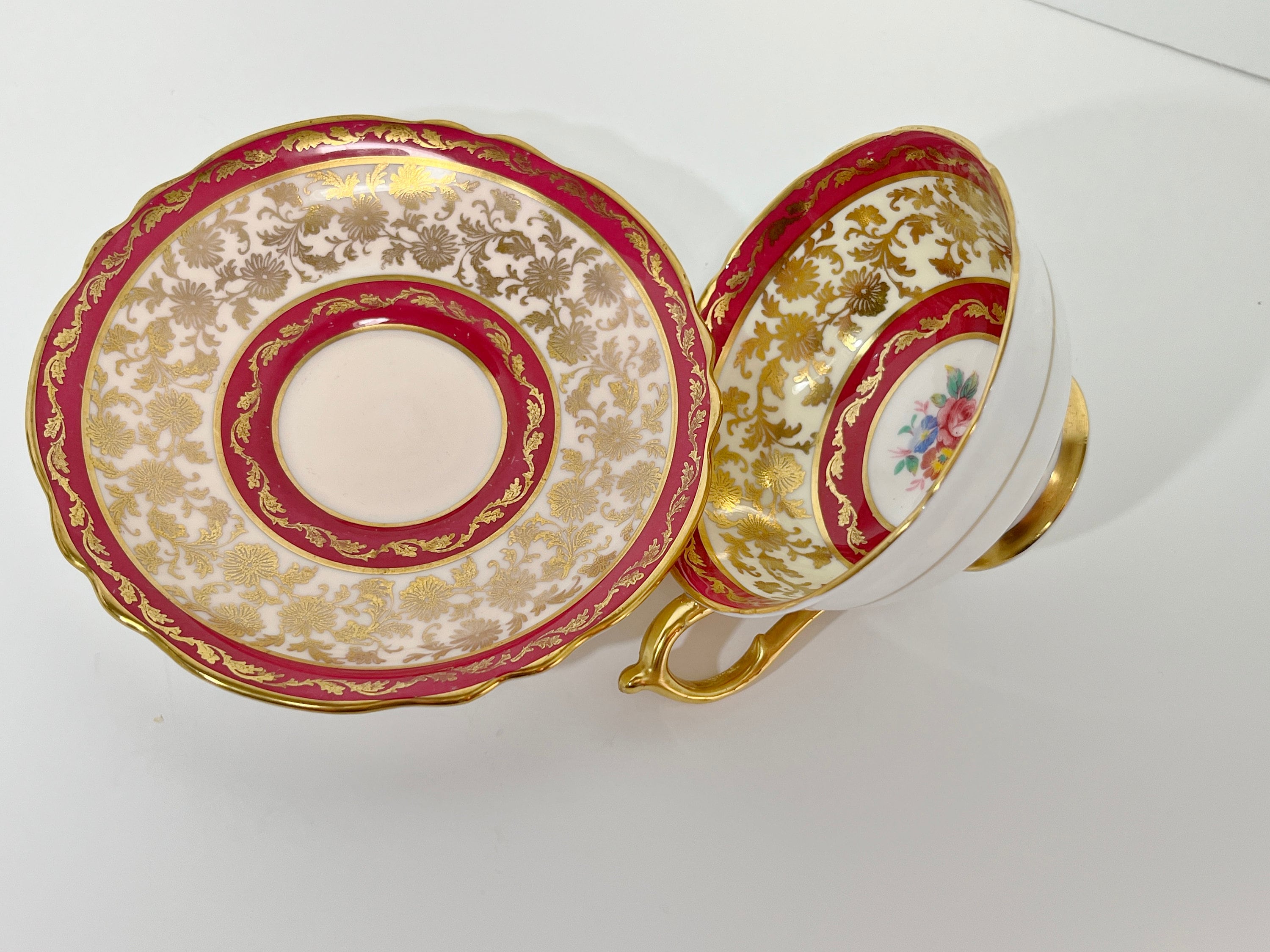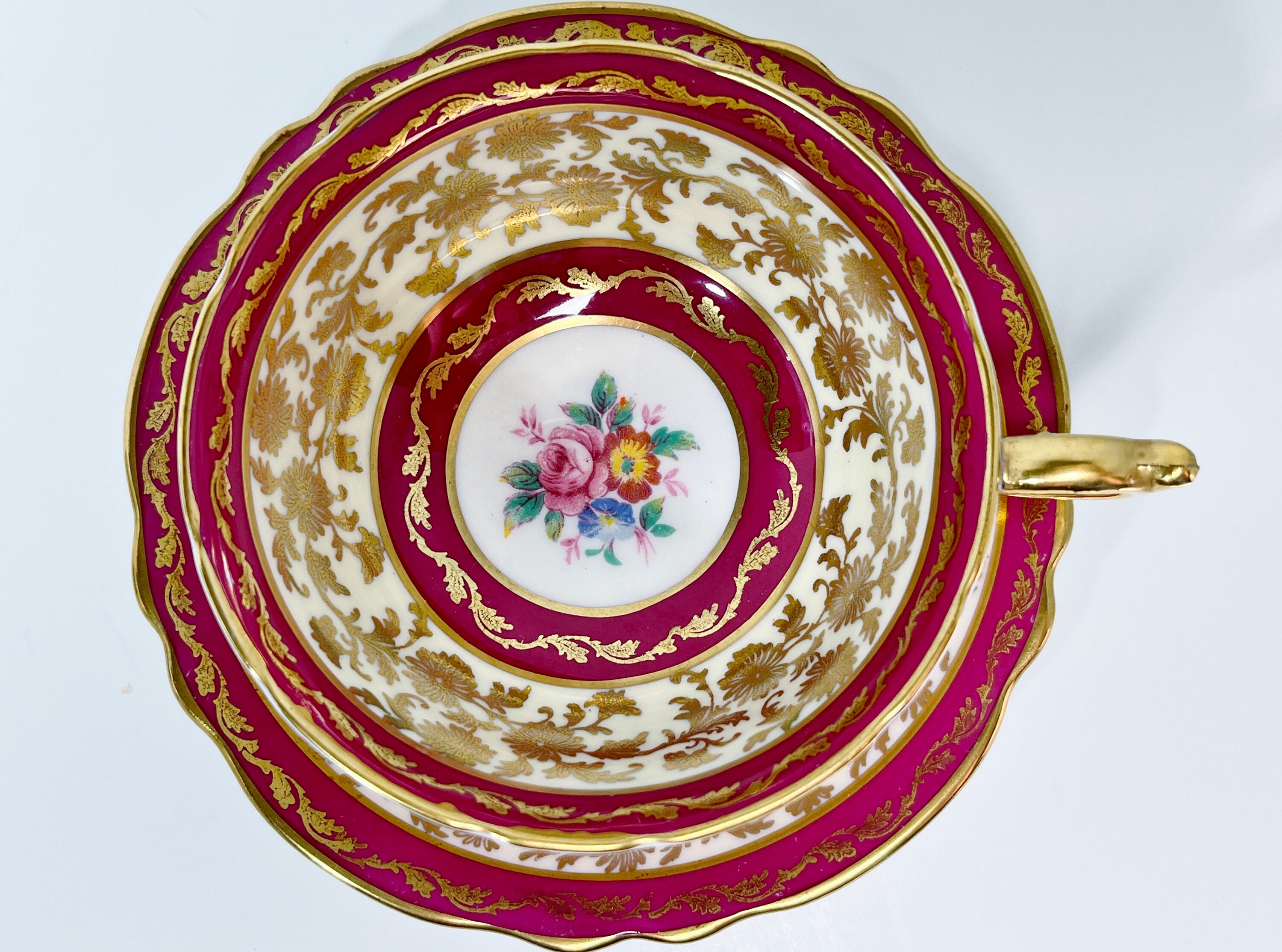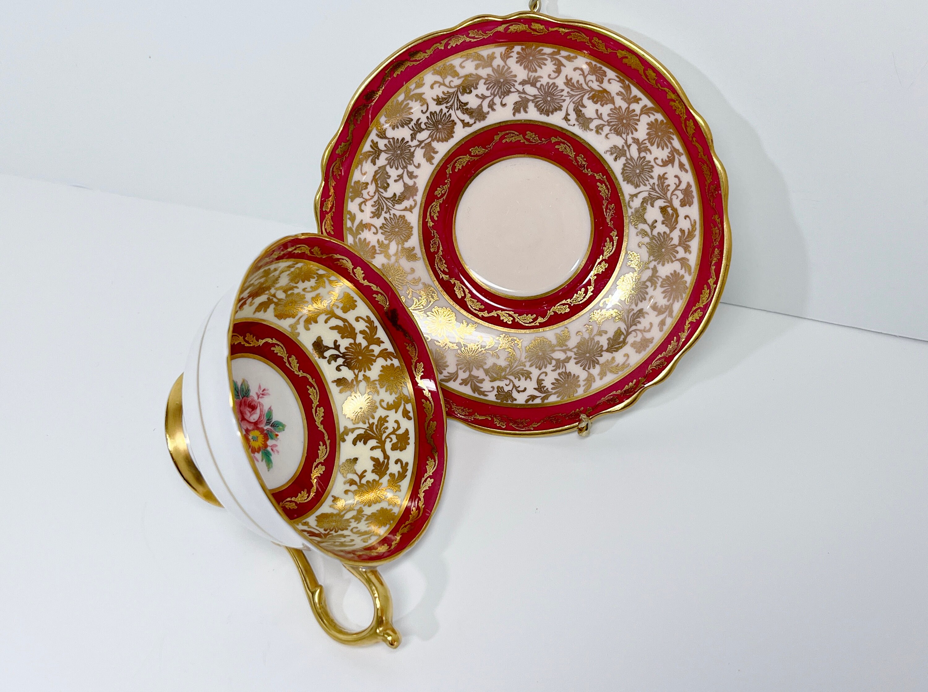 Paragon, with its double royal appointment from Queen Elizabeth and Queen Mary, proudly introduced this luxurious regal teacup and saucer in 1935.