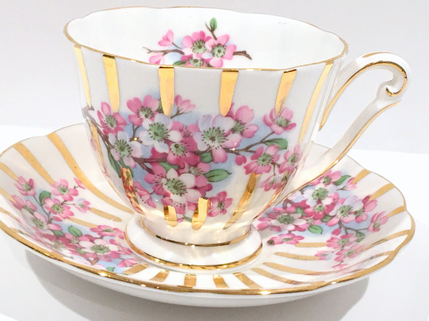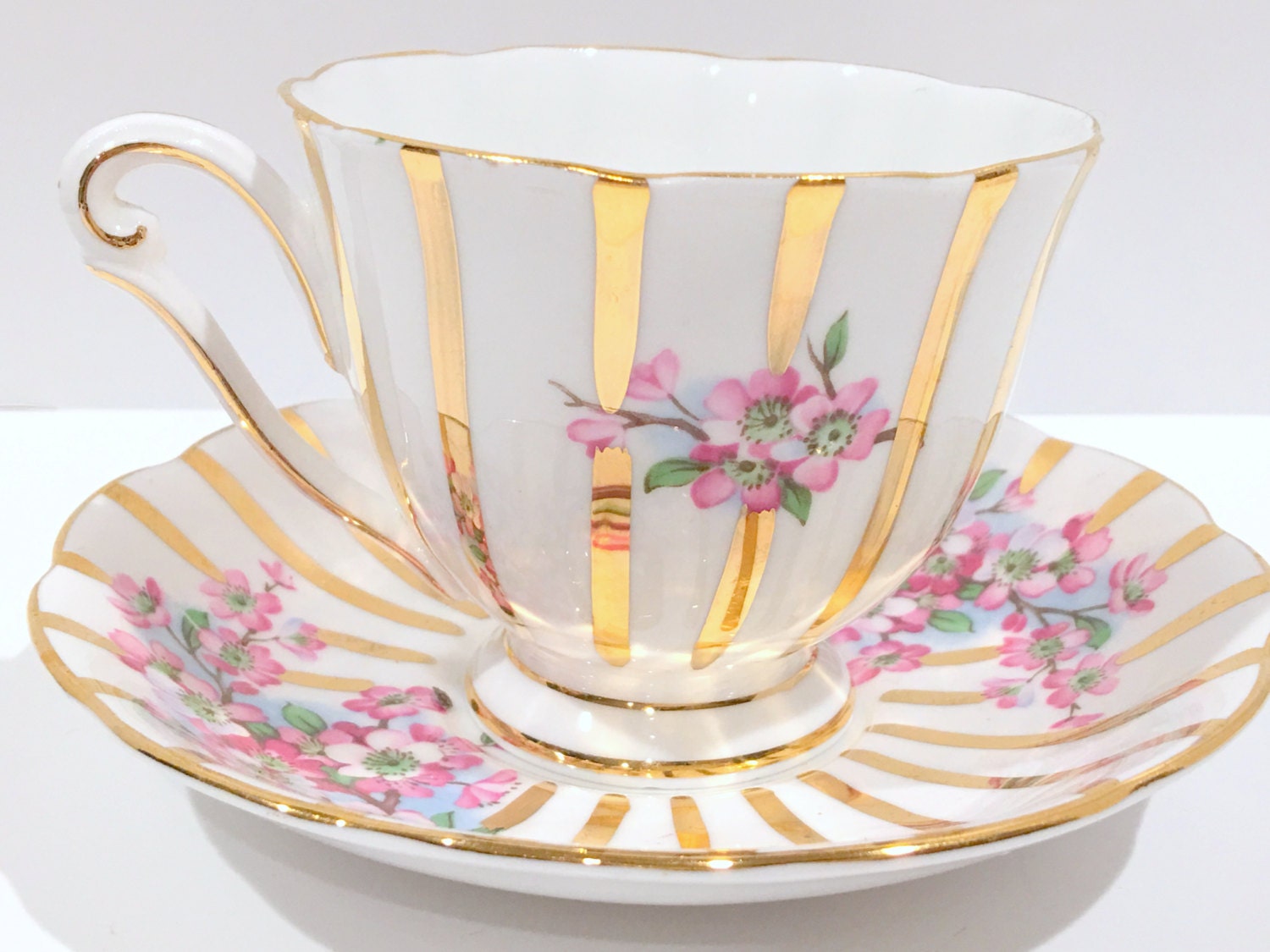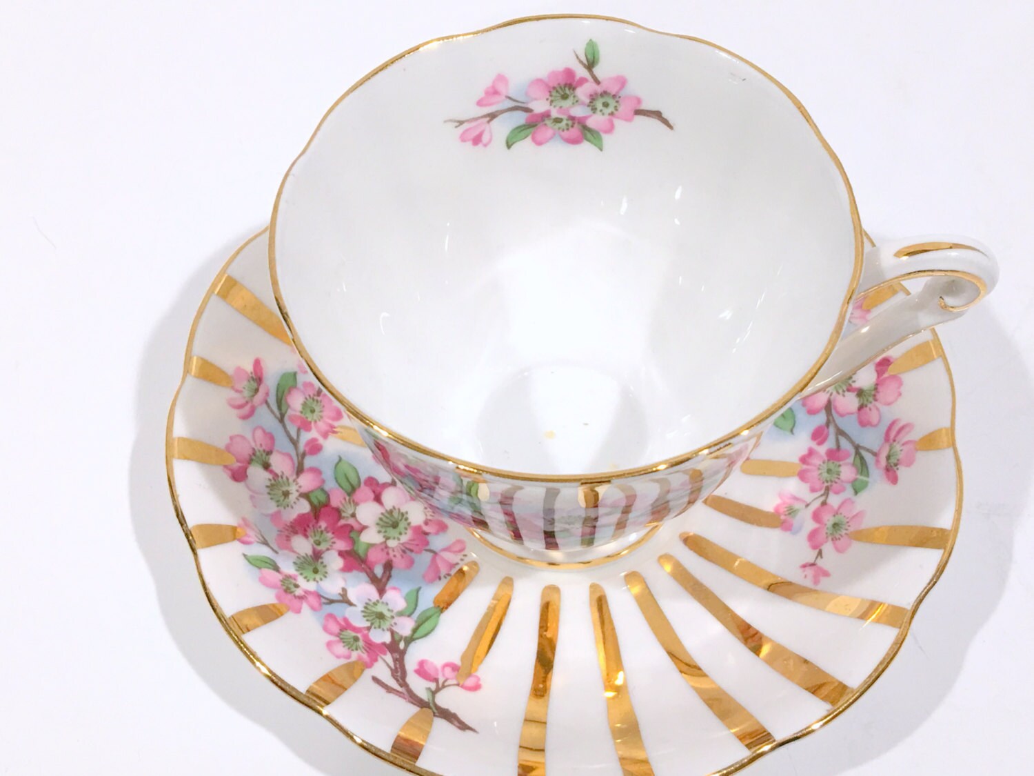 Queen Anne Fine Bone China of England manufactured this enchanting teacup and saucer. This pedestal cup and saucer is fit for a lady who appreciates the finer things in life.