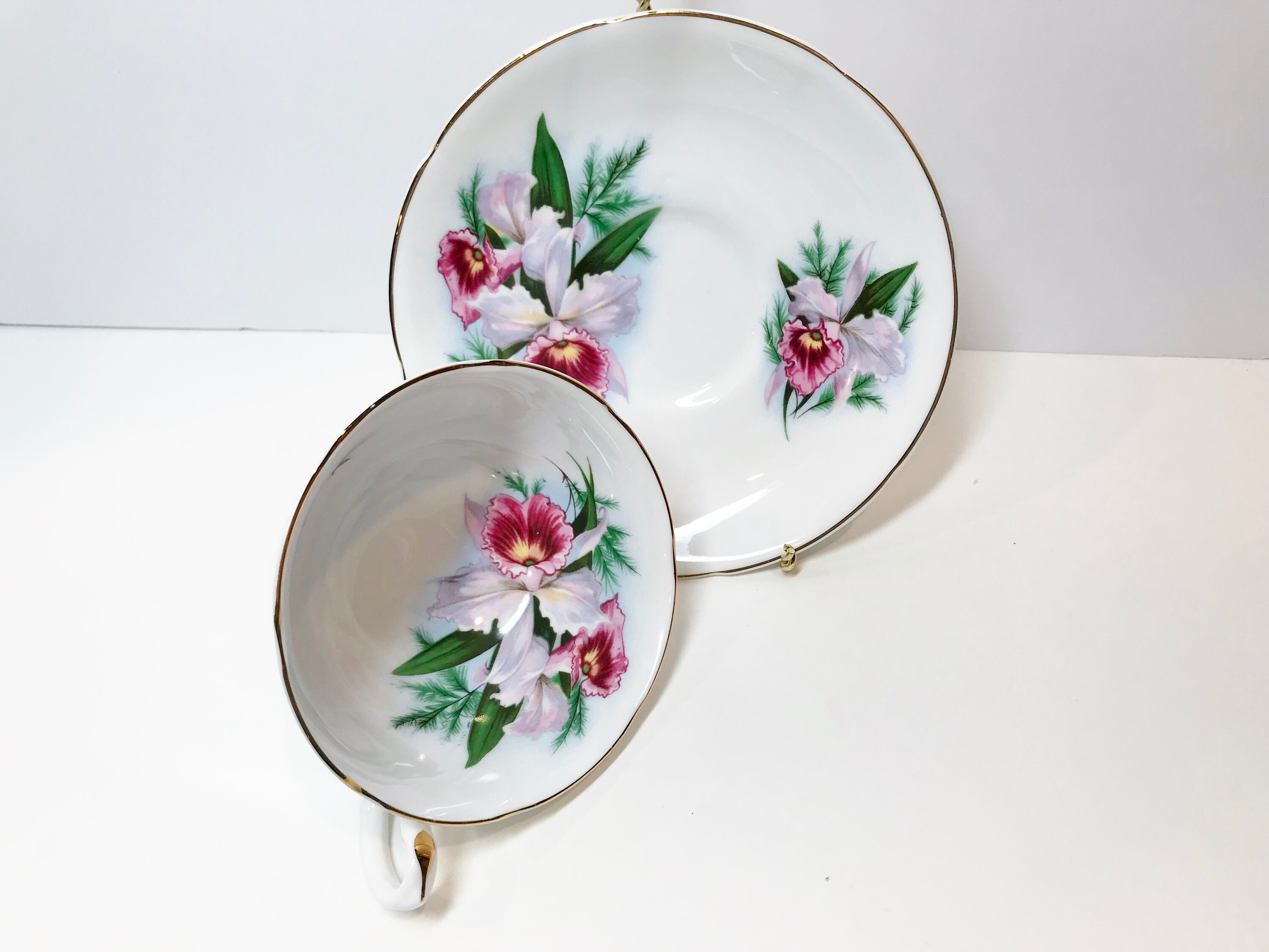 This tea cup and saucer is in excellent condition. We do not sell damaged items. You may buy with confidence.