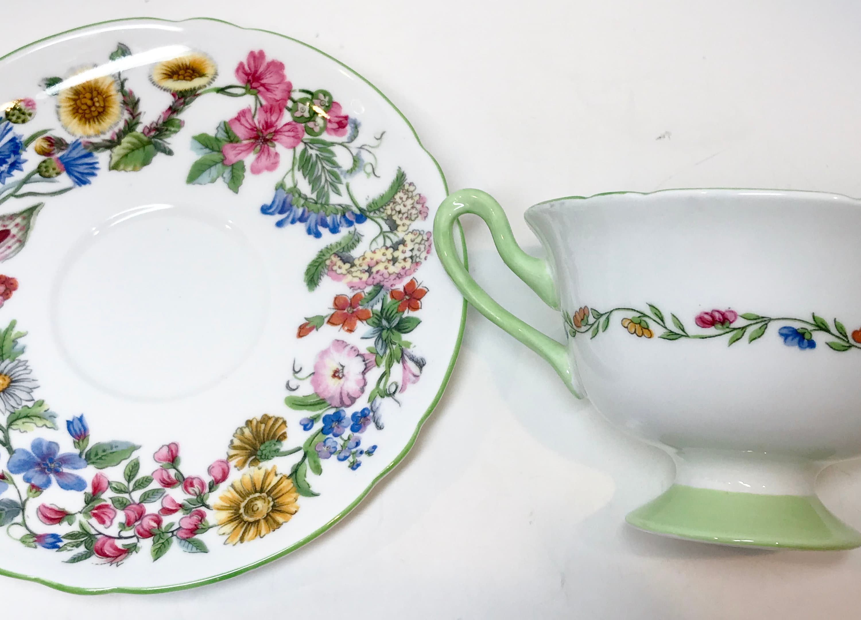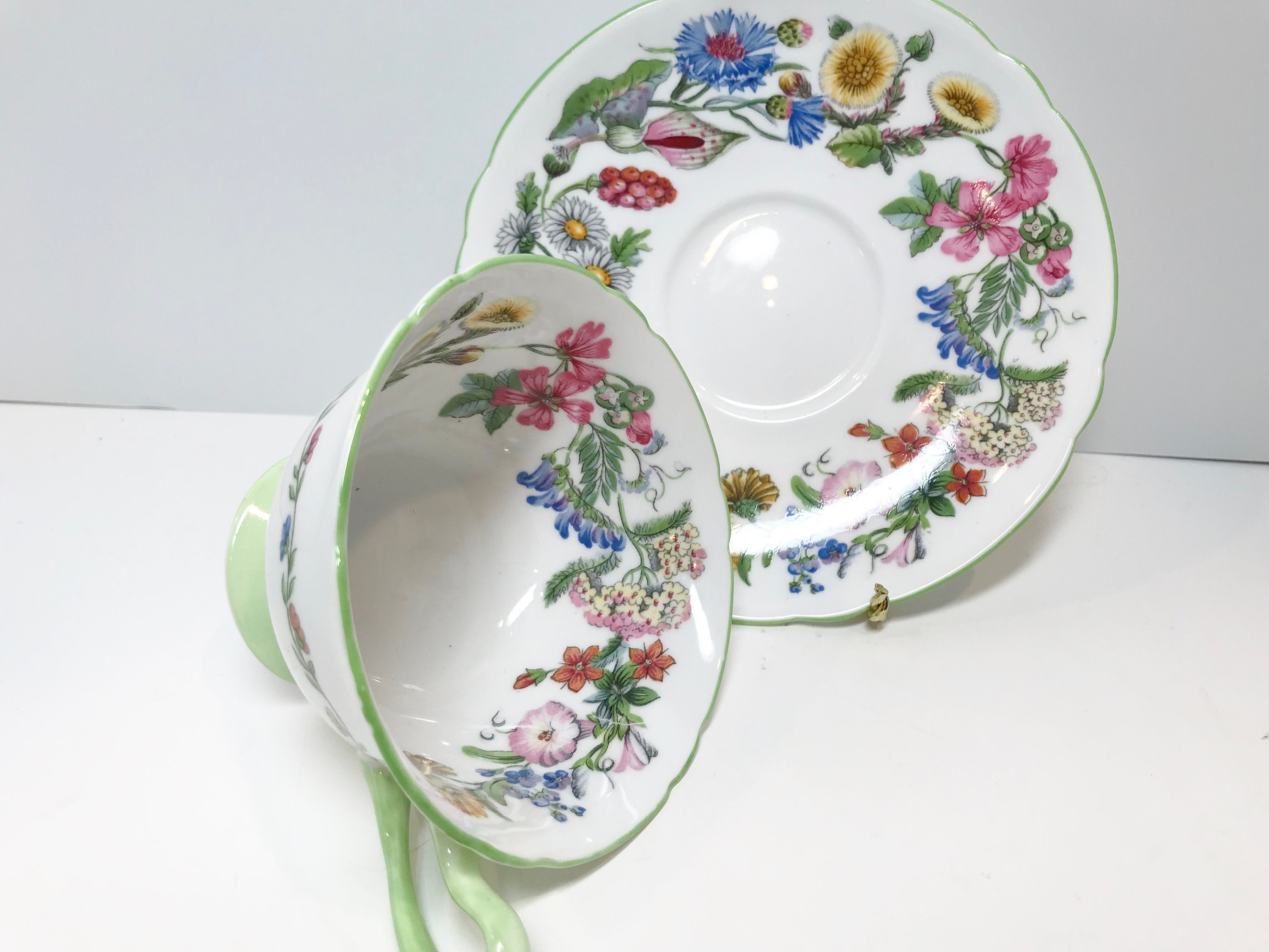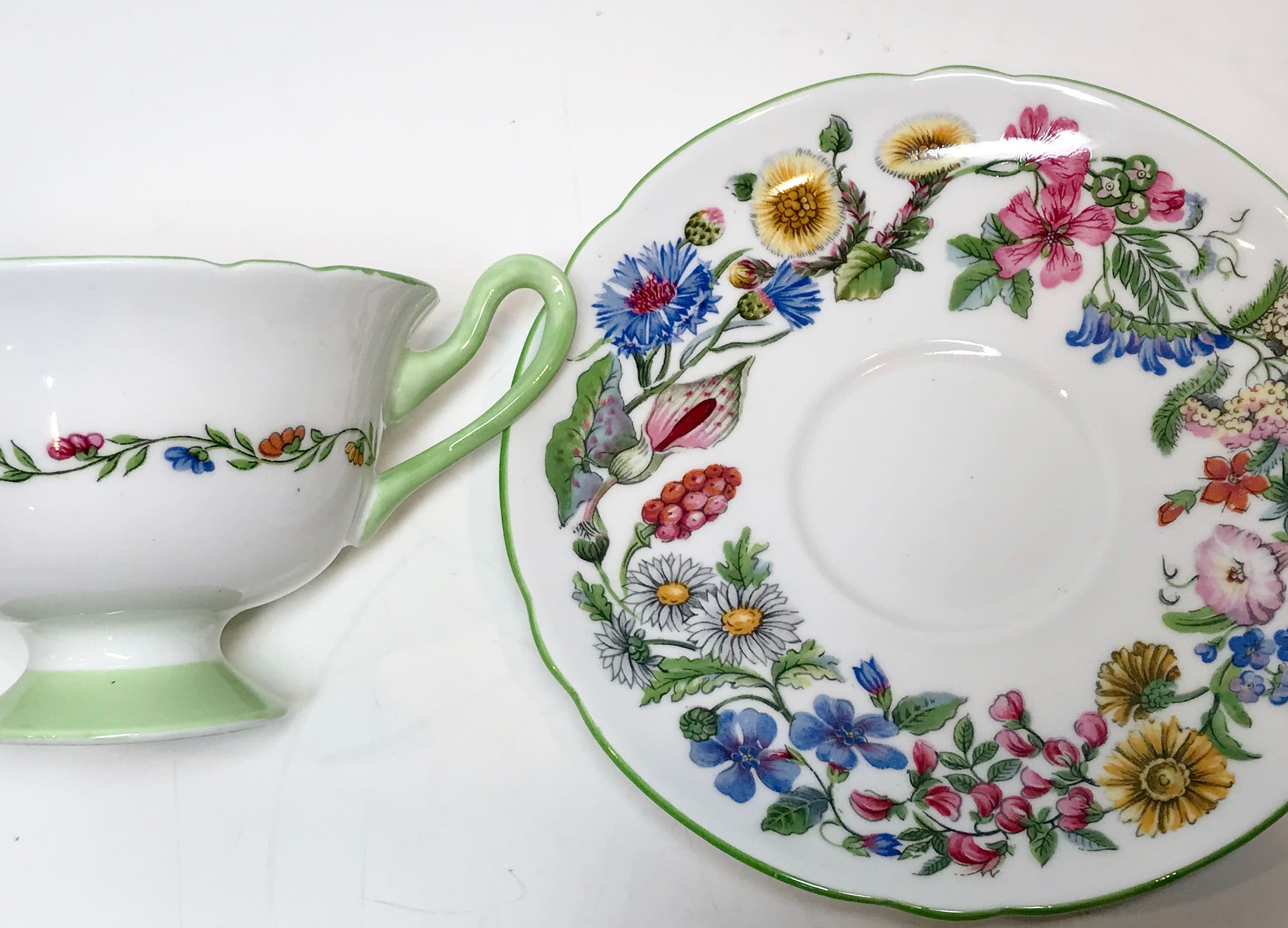 Delightful flowers encircle this Gainsborough shape tea cup and saucer, pattern 13492.
