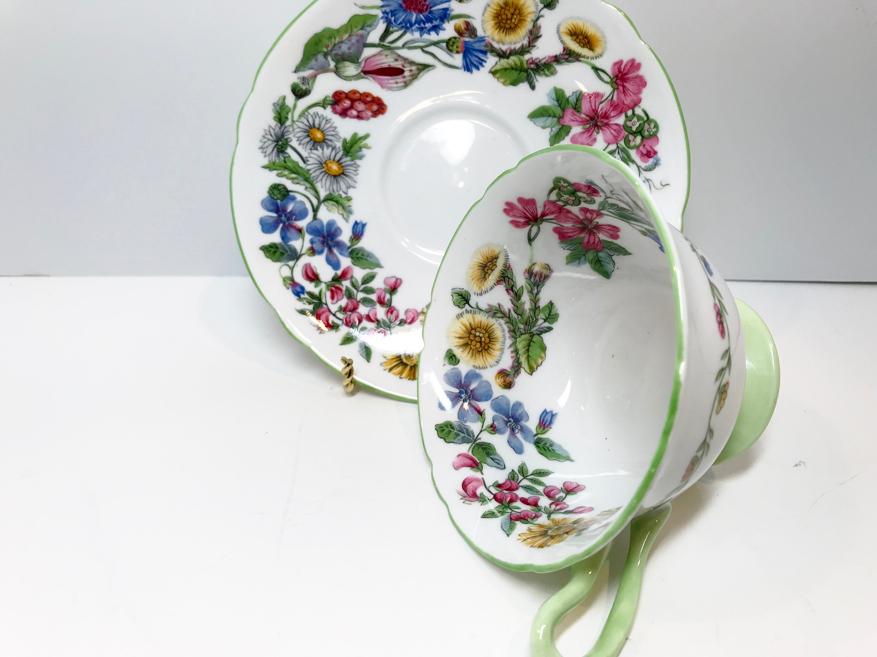 Shelley Fine Bone China of England, the premier English manufacturer, crafted this festive footed antique tea cup.