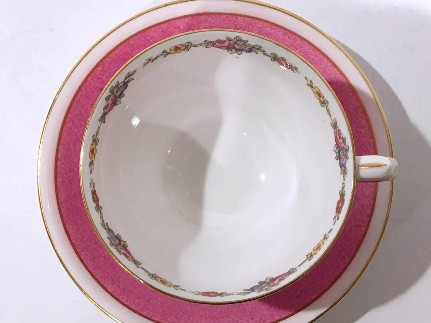This English tea cup and saucer is in excellent condition. We do not sell damaged items. They do not have cracks, chips, or crazing. You may buy with confidence.