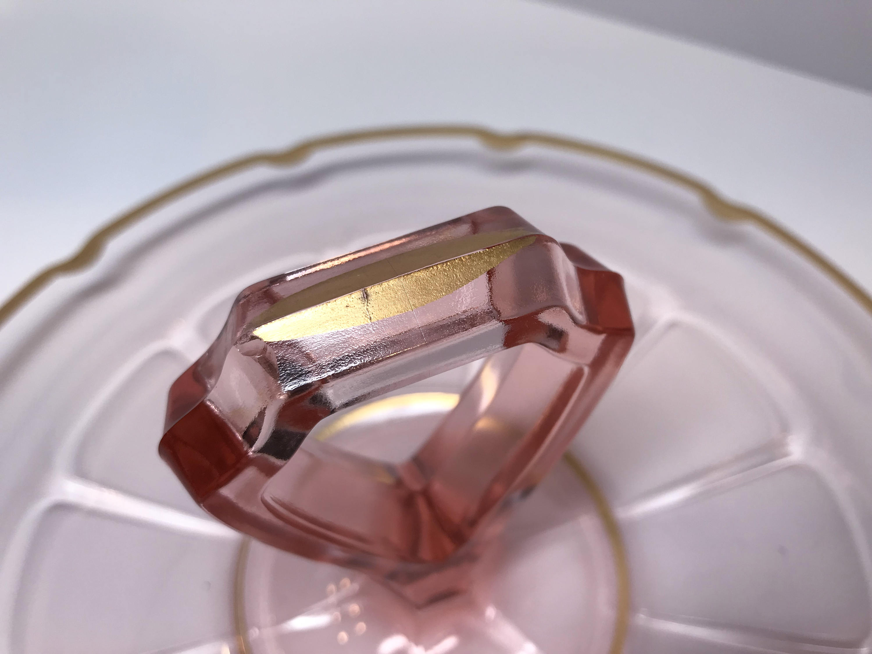This is an elegant piece trimmed in gold from the Depression Glass era.