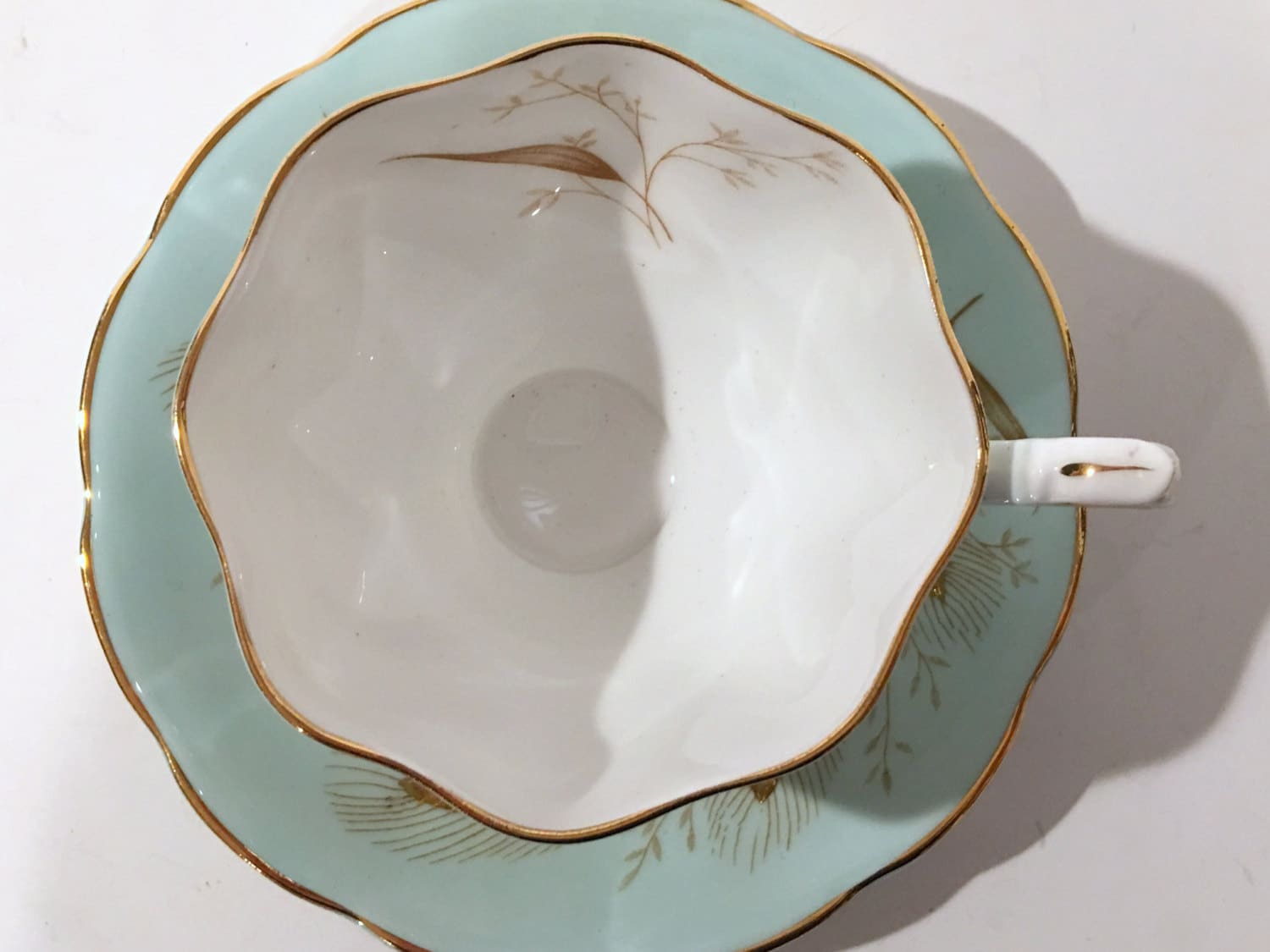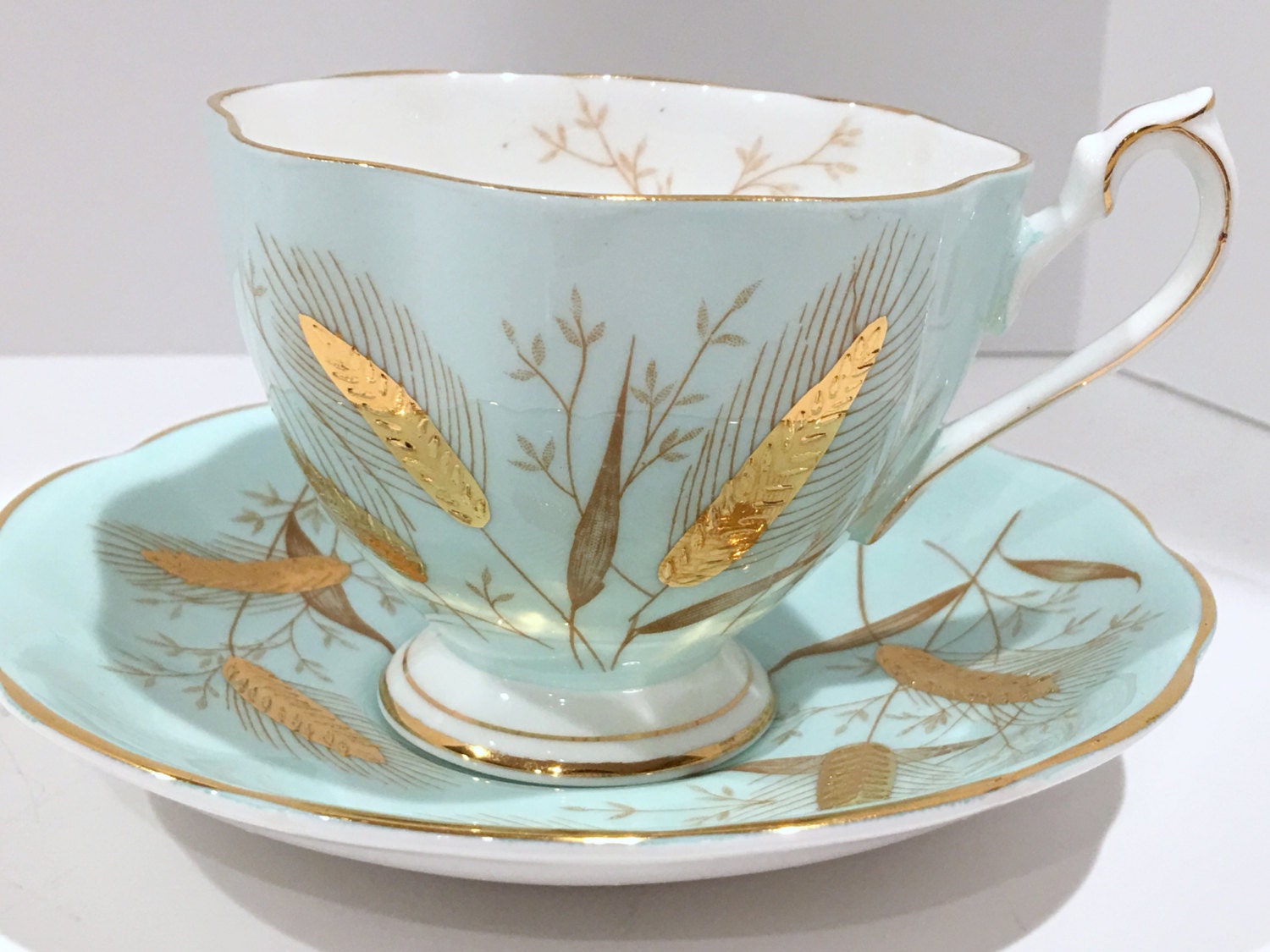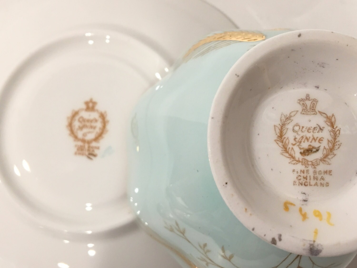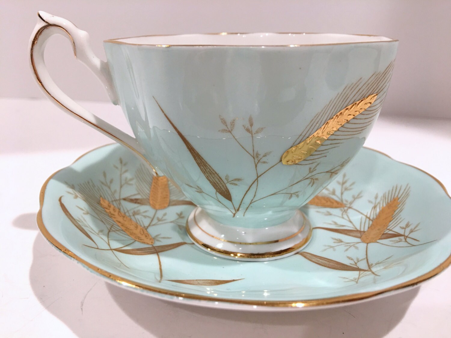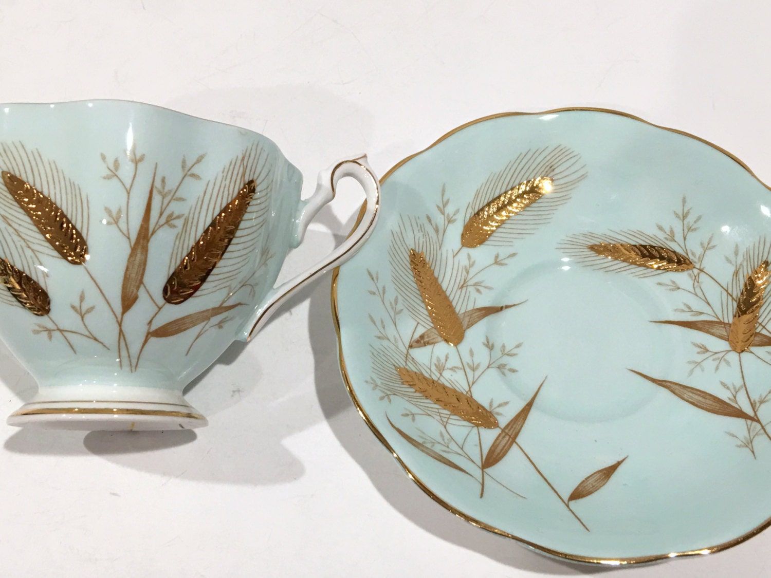 Queen Anne Bone China of England produced this gorgeous robin's egg blue tea cup and saucer.