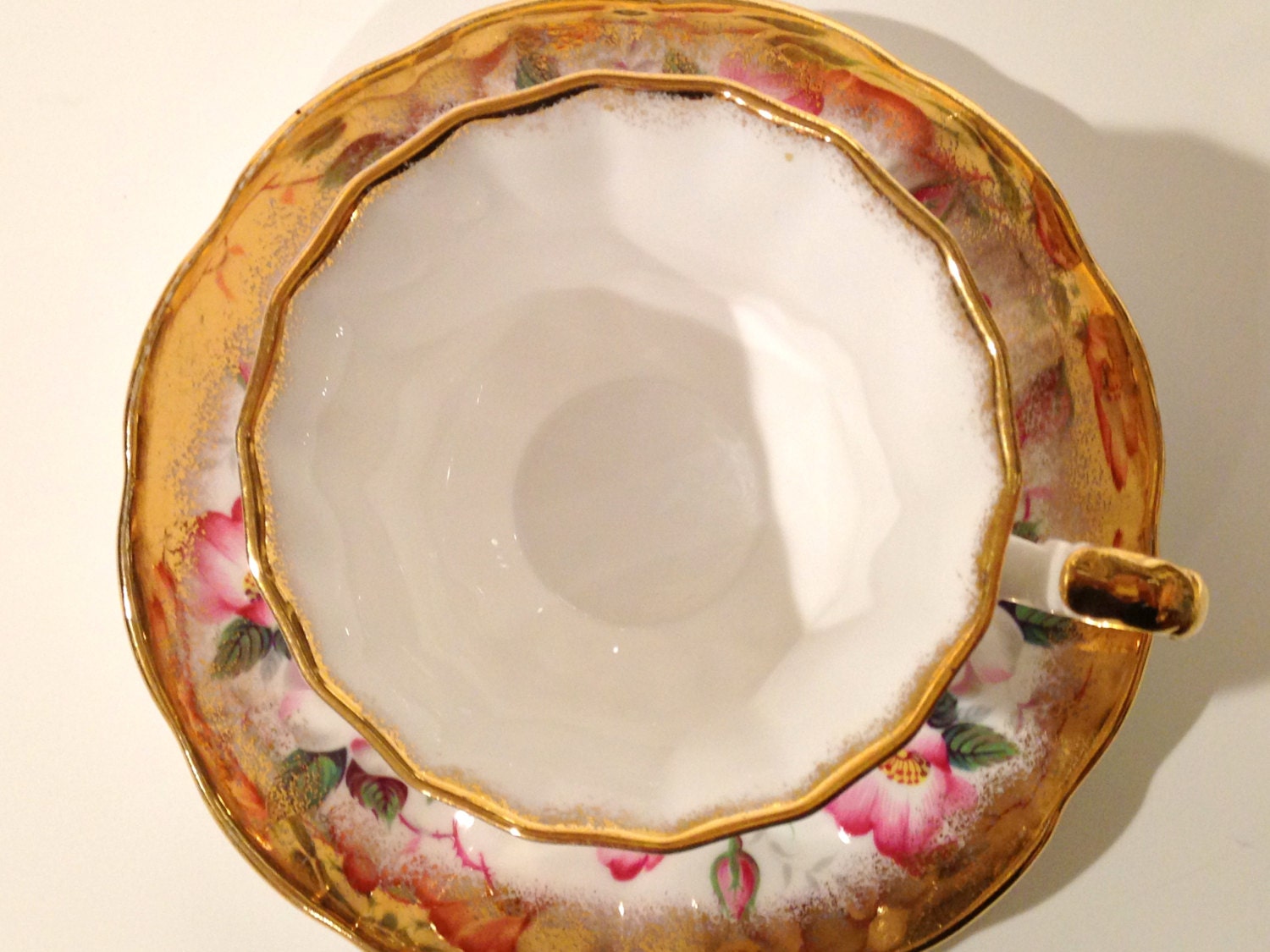 Elizabethan Bone China of England crafted this mesmerizing, pedestal tea cup and saucer.