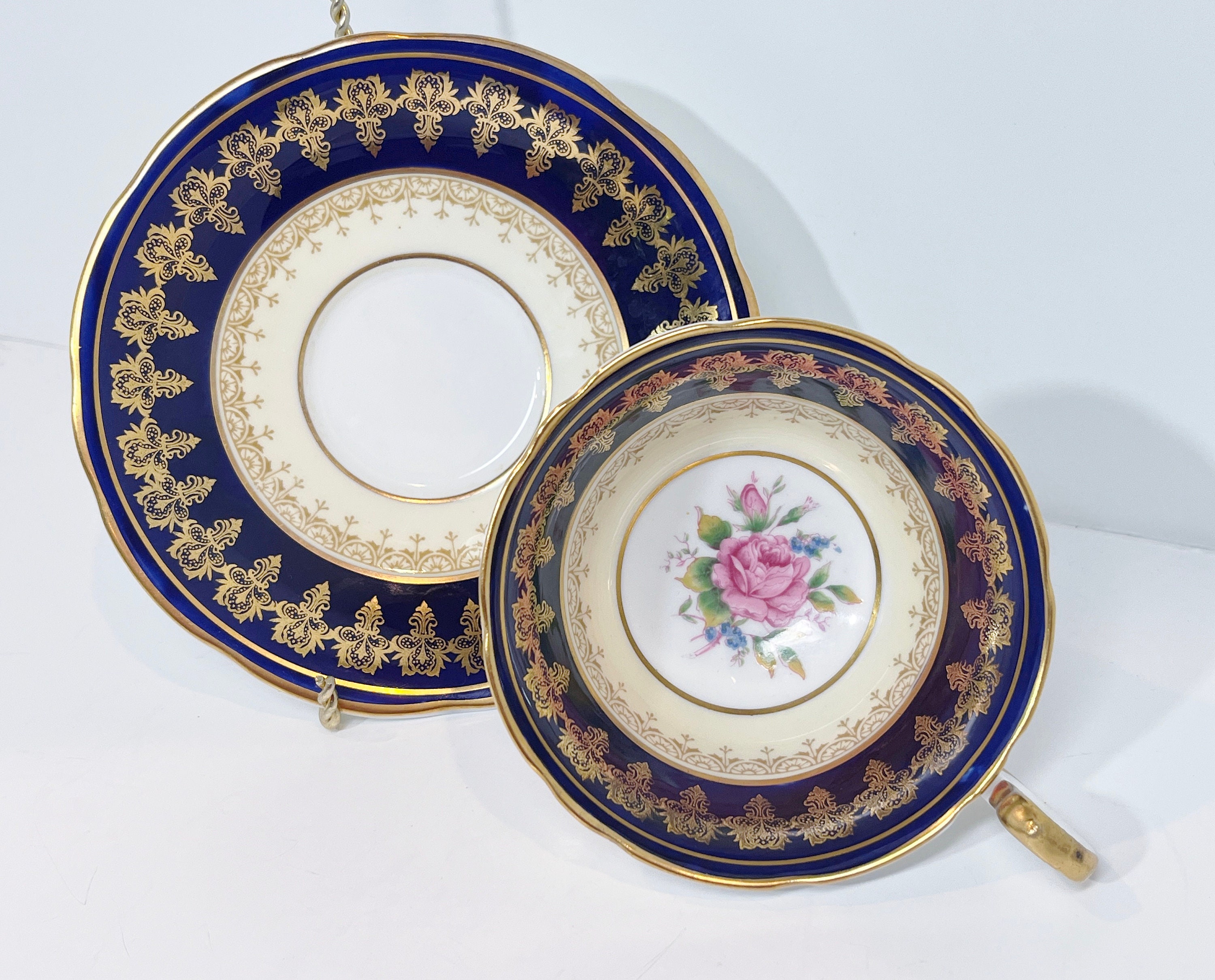 This resplendent tea cup and saucer by Aynsley Fine Bone China of England enhances every afternoon tea. It's also an appreciated gift.