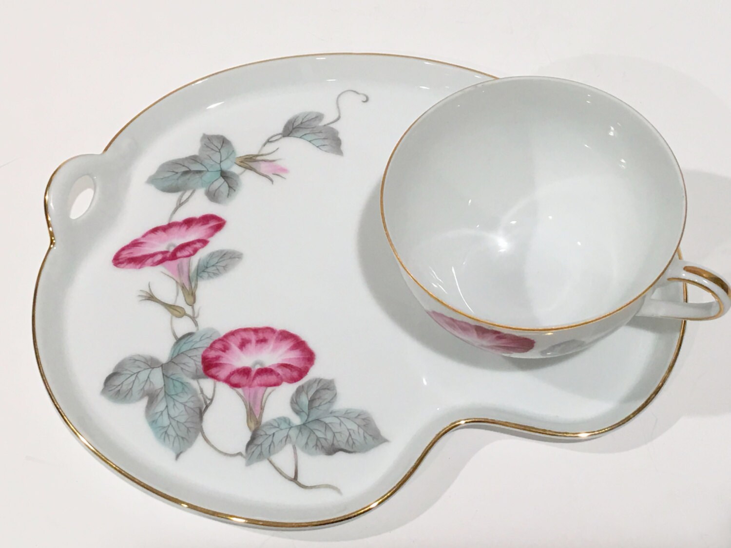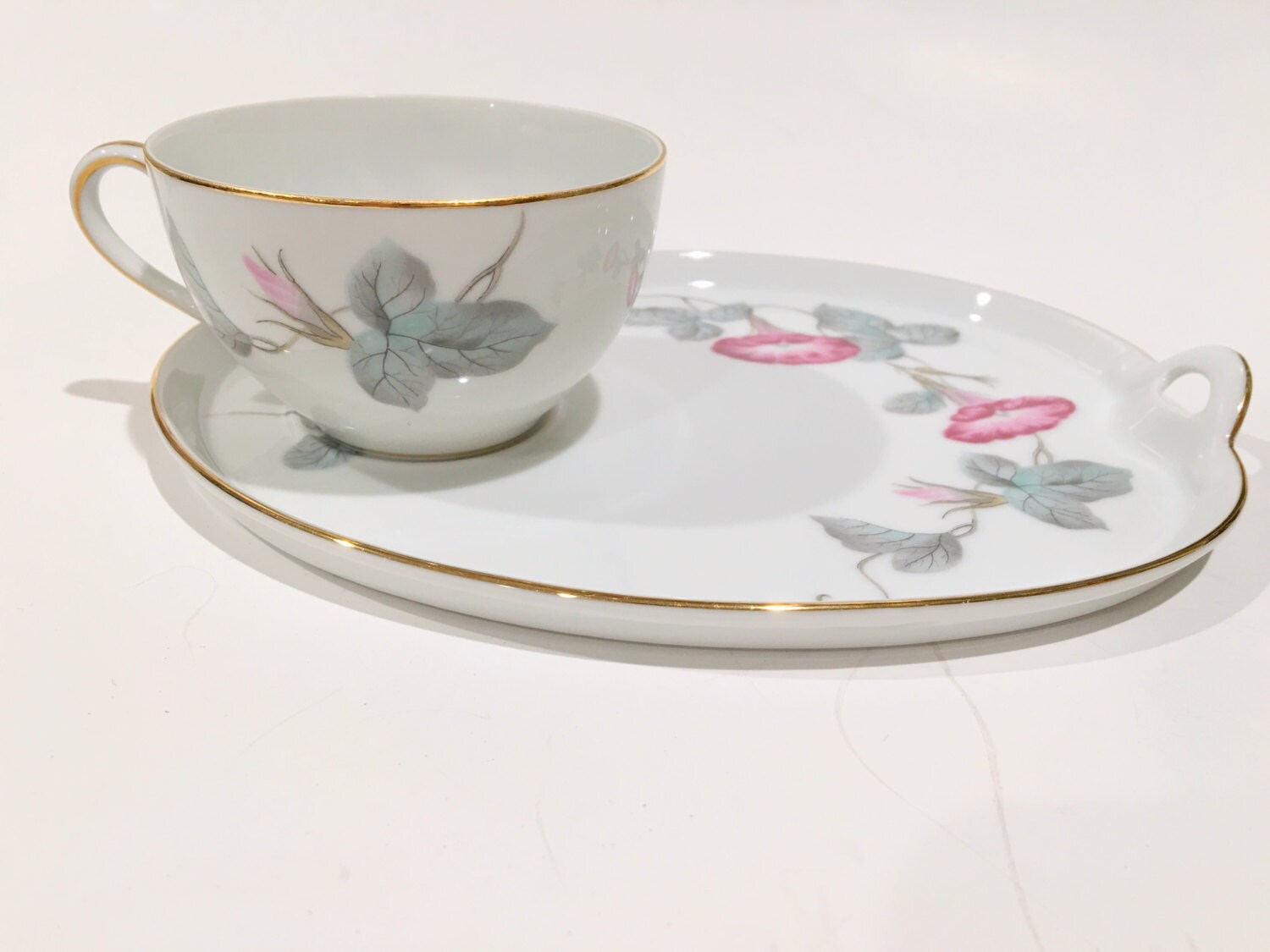 We are having an overstock sale. This teacup and tray was $45. It is now $22 with free US shipping.