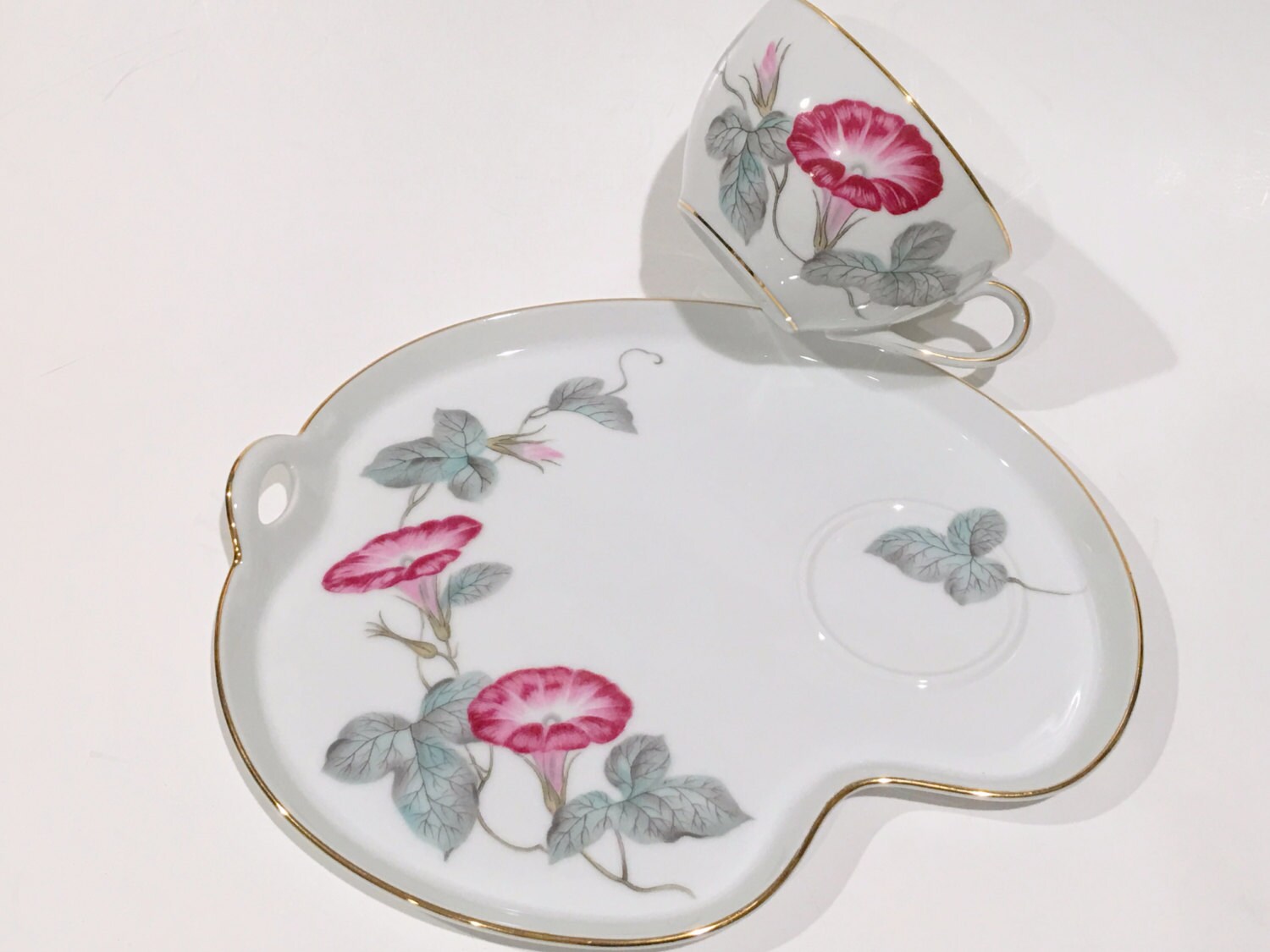 The vibrant pink morning glory pattern is highlighted by gold edges.