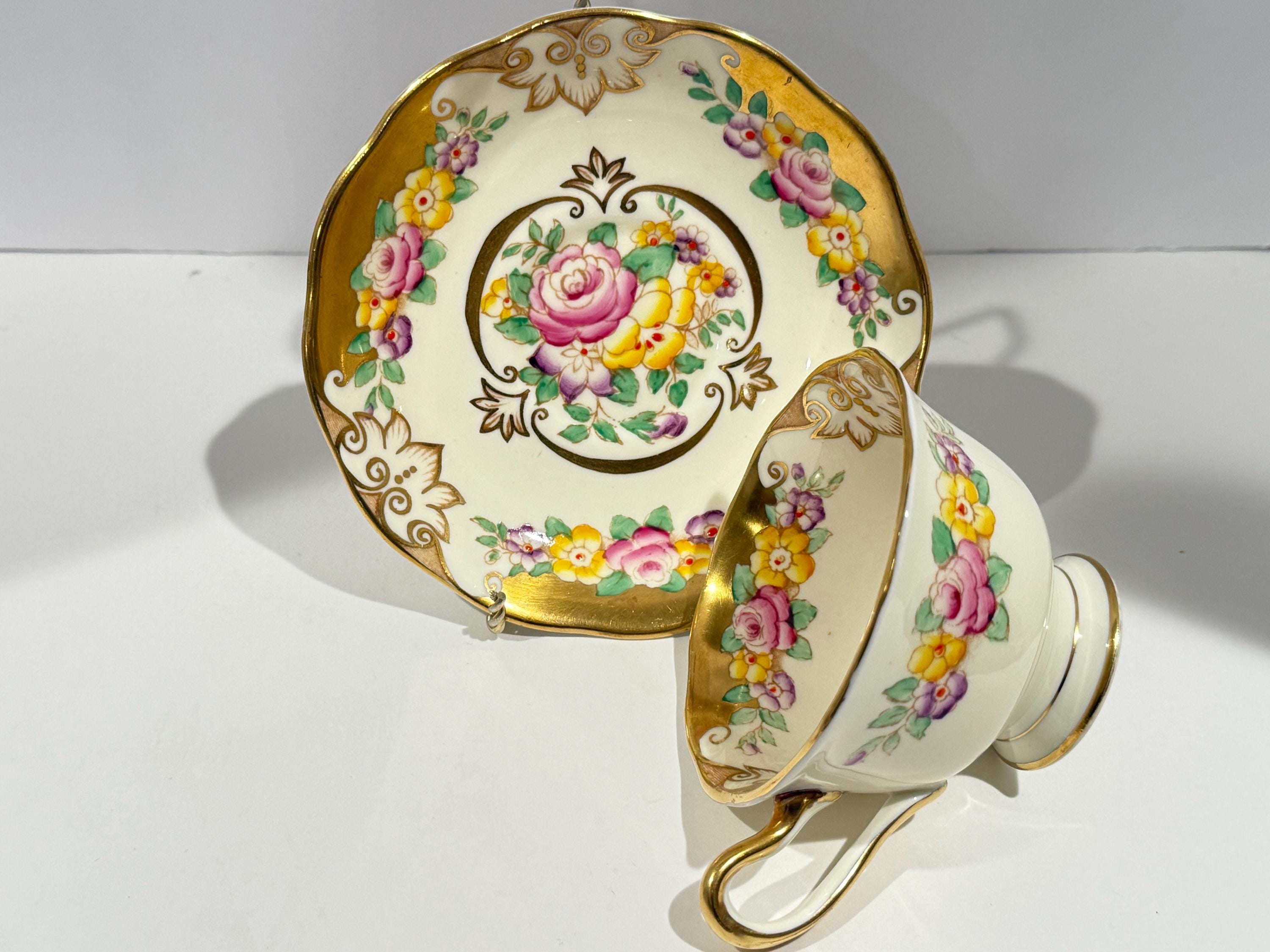 This English bone china cup and saucer is in excellent condition. There are no chips, cracks or crazing. We do not sell damaged items. You may buy with confidence.