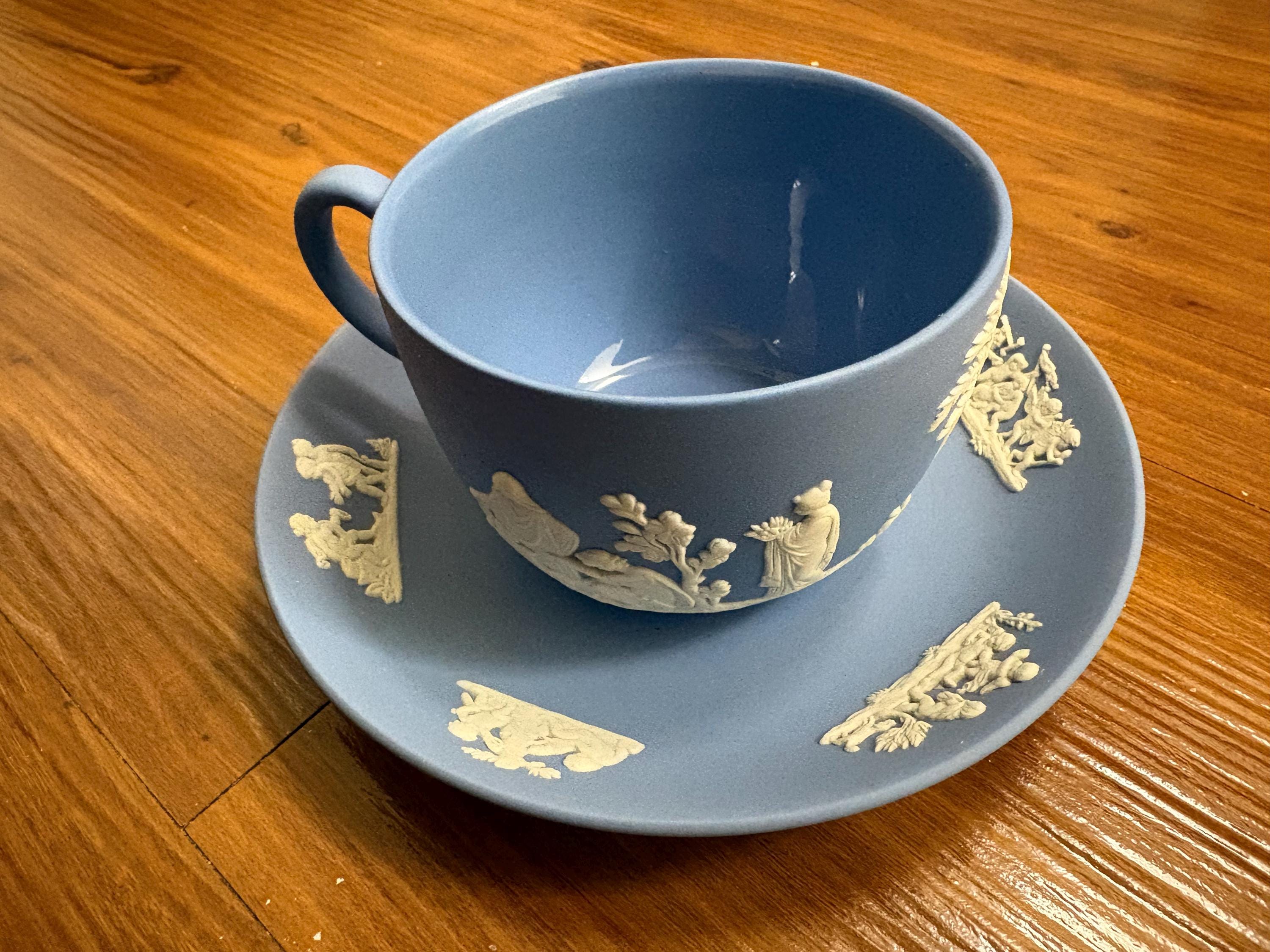 Wedgwood China of England produced an unglazed finish called Jasperware. This antique teacup is different since the inside of the cup IS glazed.