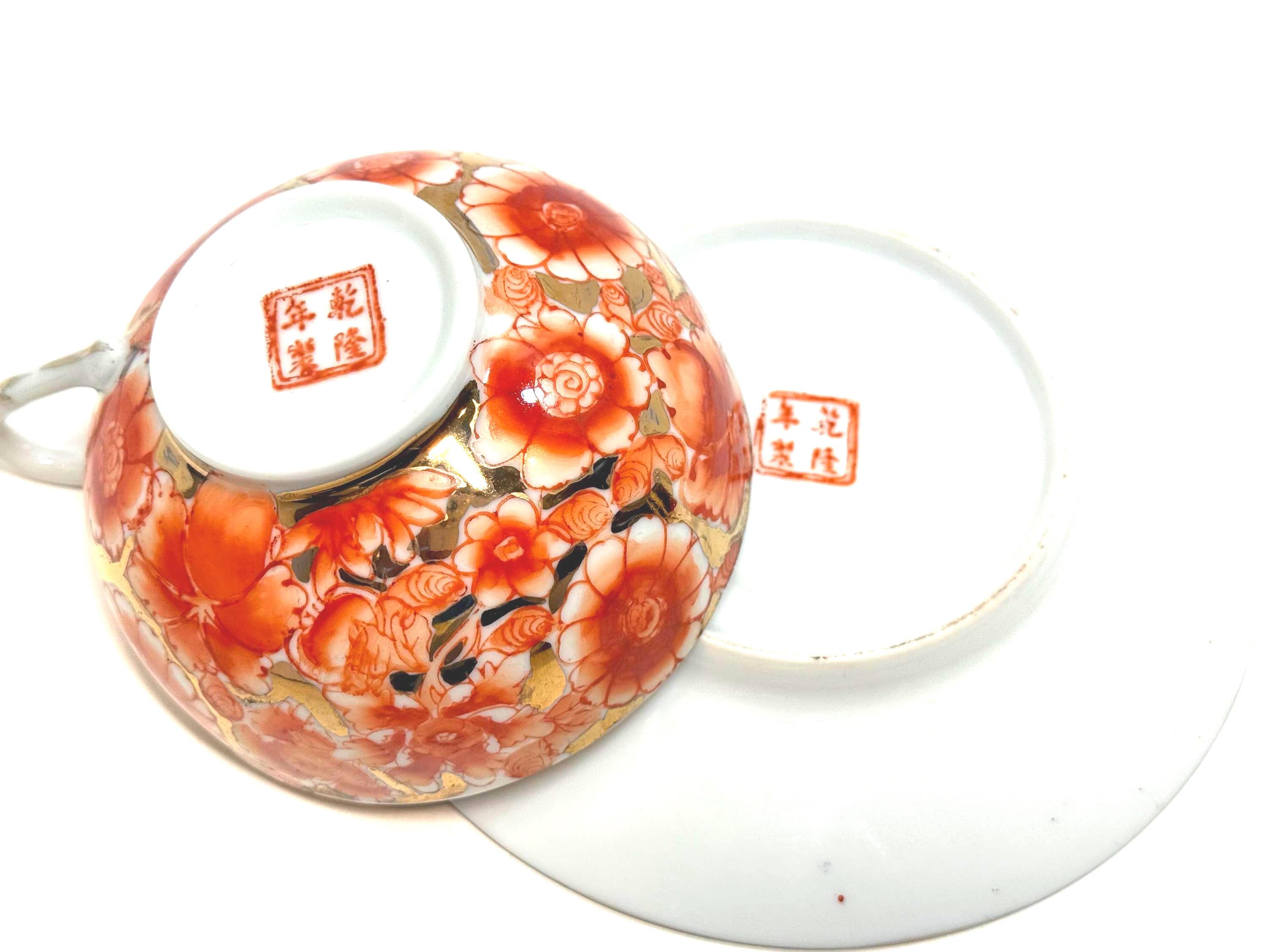 This set is excellent condition, free of cracks, crazing, or chips. There is one rough spot inside the cup which occurred when it was being made. There are also a couple of tiny dots also inside the cup from when the porcelain was being made.