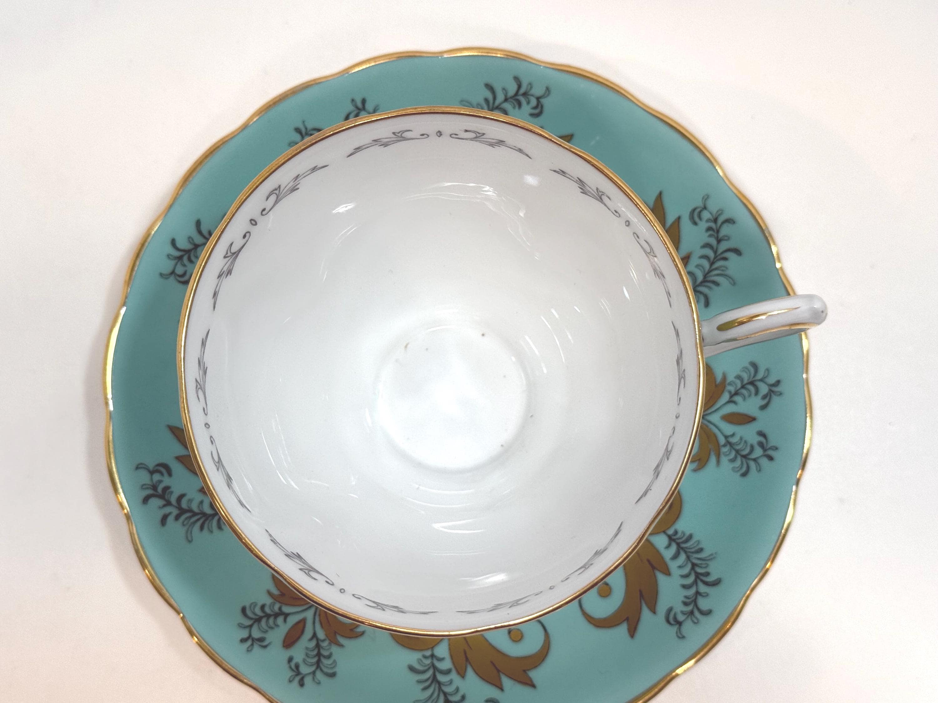 This teacup and saucer is in excellent condition. There are no chips, cracks or crazing. You may buy with confidence. We do not sell damaged items and we note any flaws that we see.