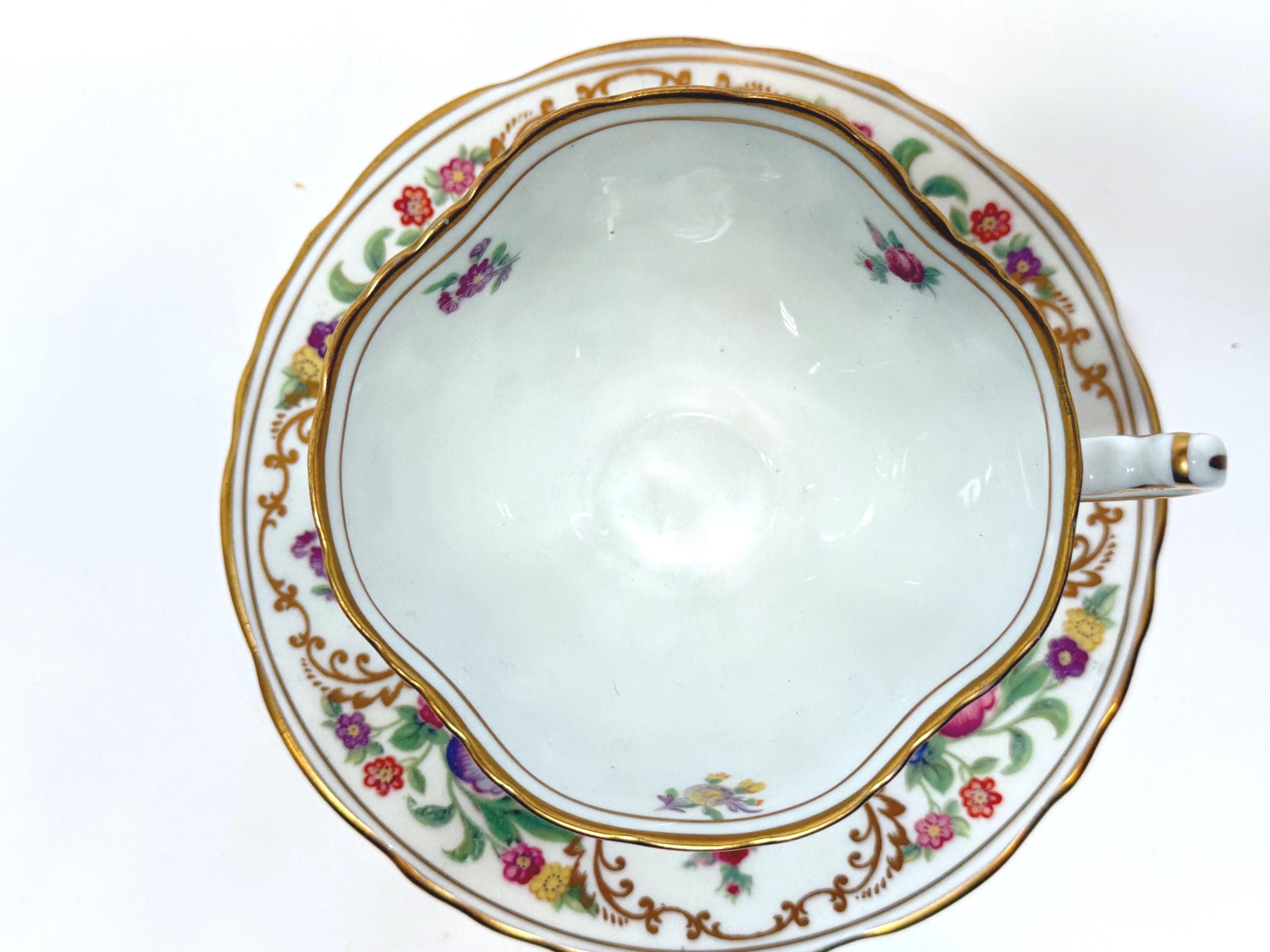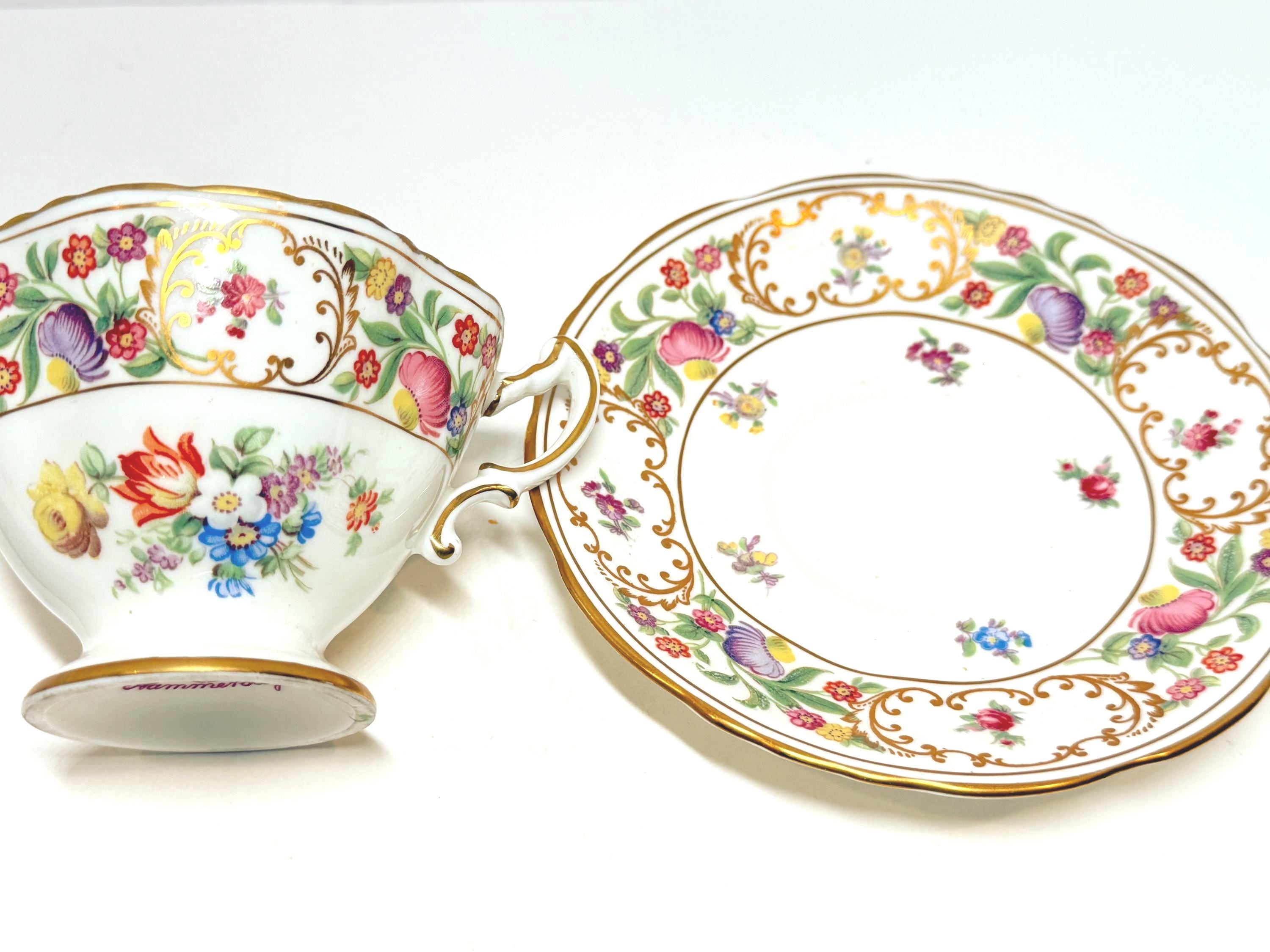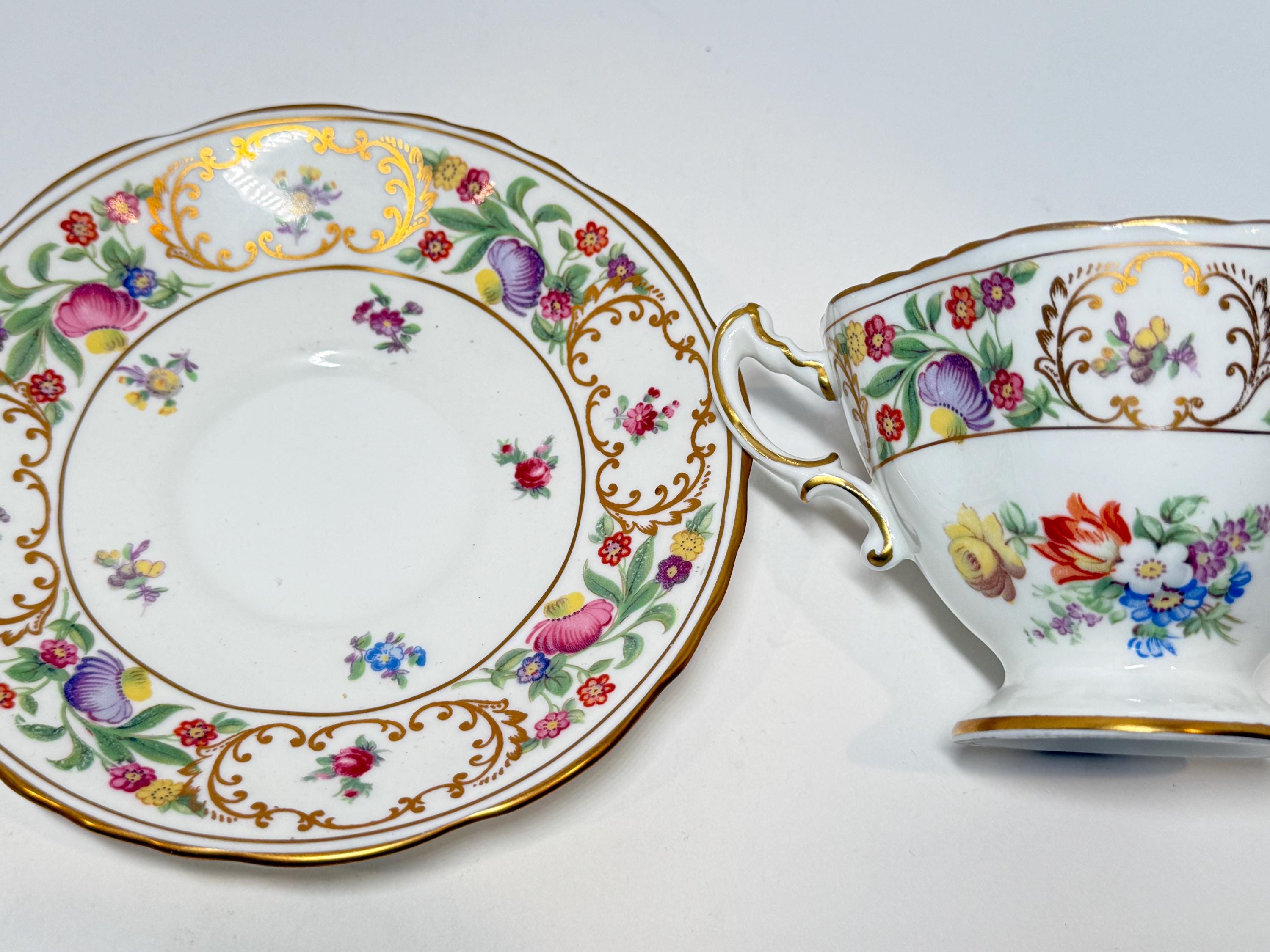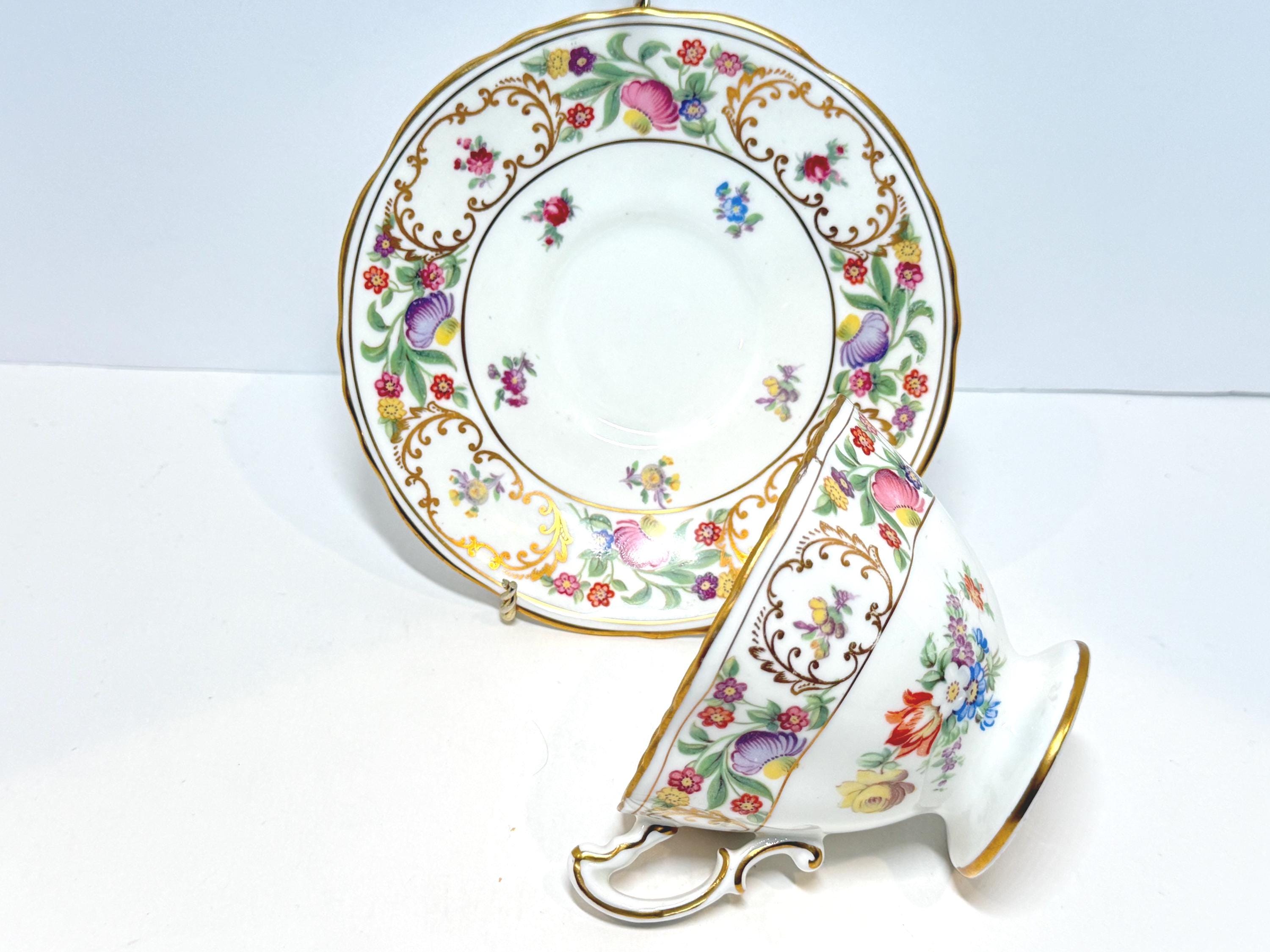 This charming Hammersley teacup and saucer evokes the feeling of a leisurely garden stroll. The pattern, called Dresden Sprays, is now discontinued. Hammersley was part of Hammersley and Asbury, from the Prince of Wales Pottery in Longton, England—one of the many distinguished factories that formed the Staffordshire potteries. The company was founded in 1872.