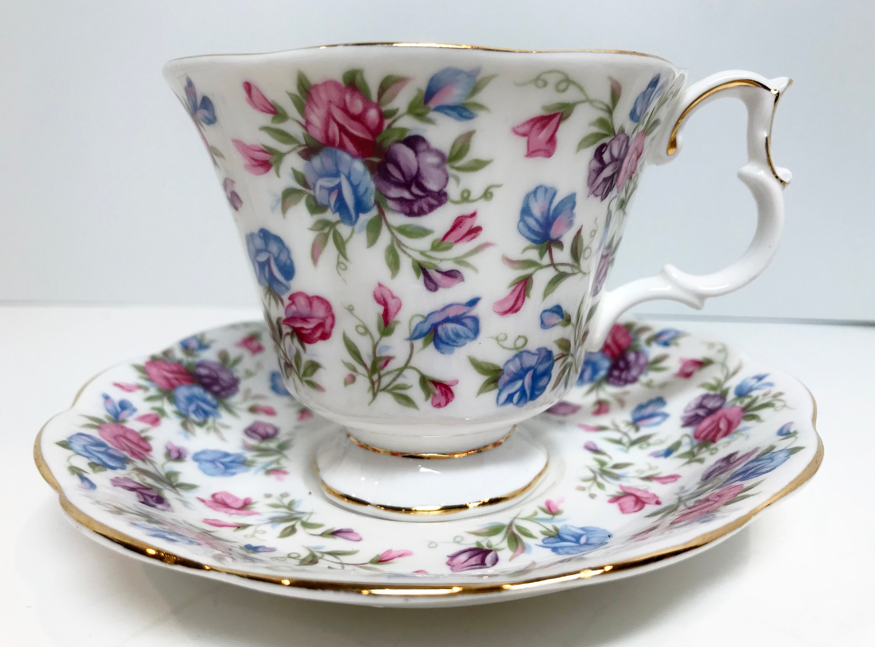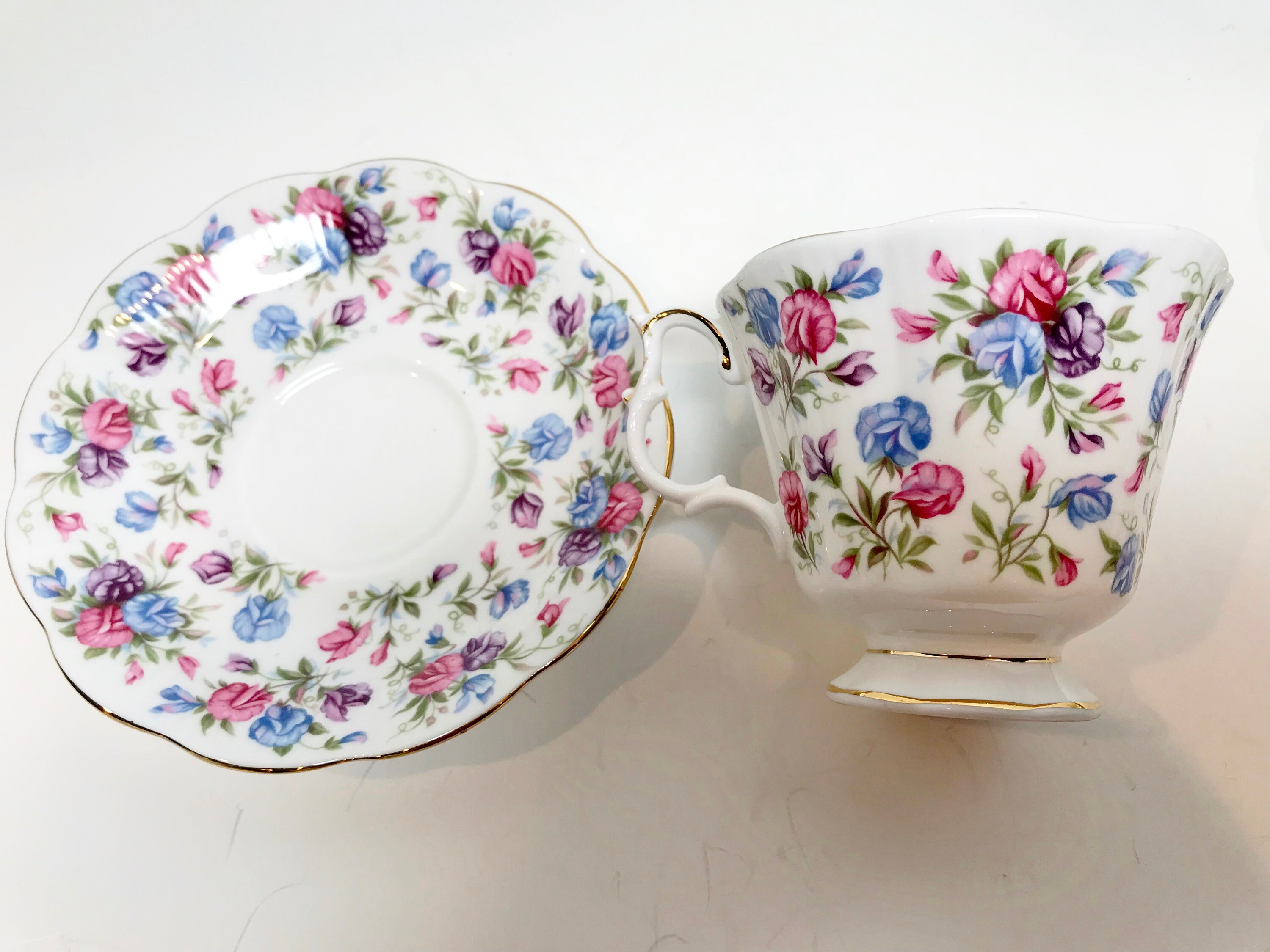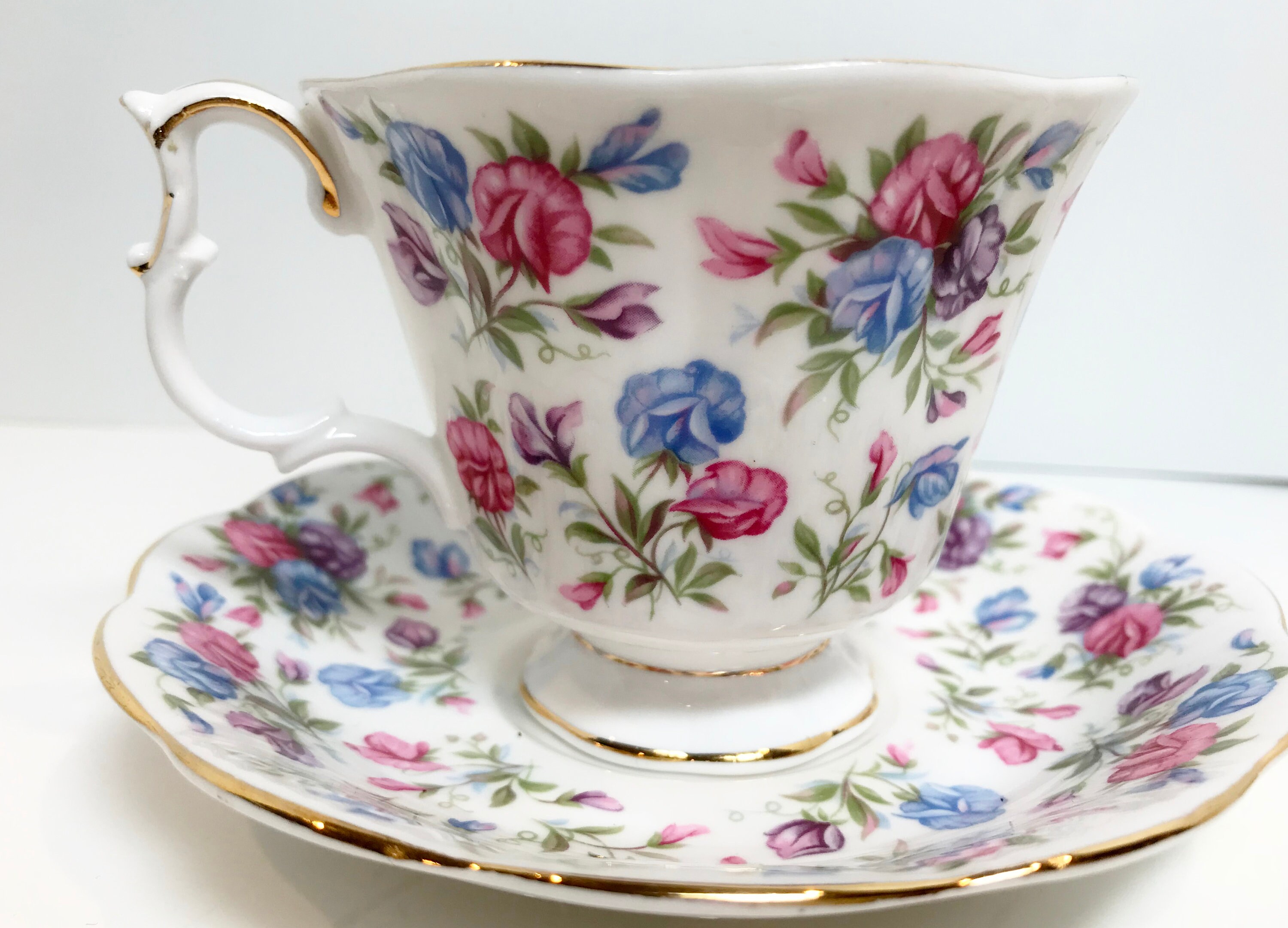 This Mayfair pattern is another colorful floral tea cup and saucer from the Nell Gwynne Series.