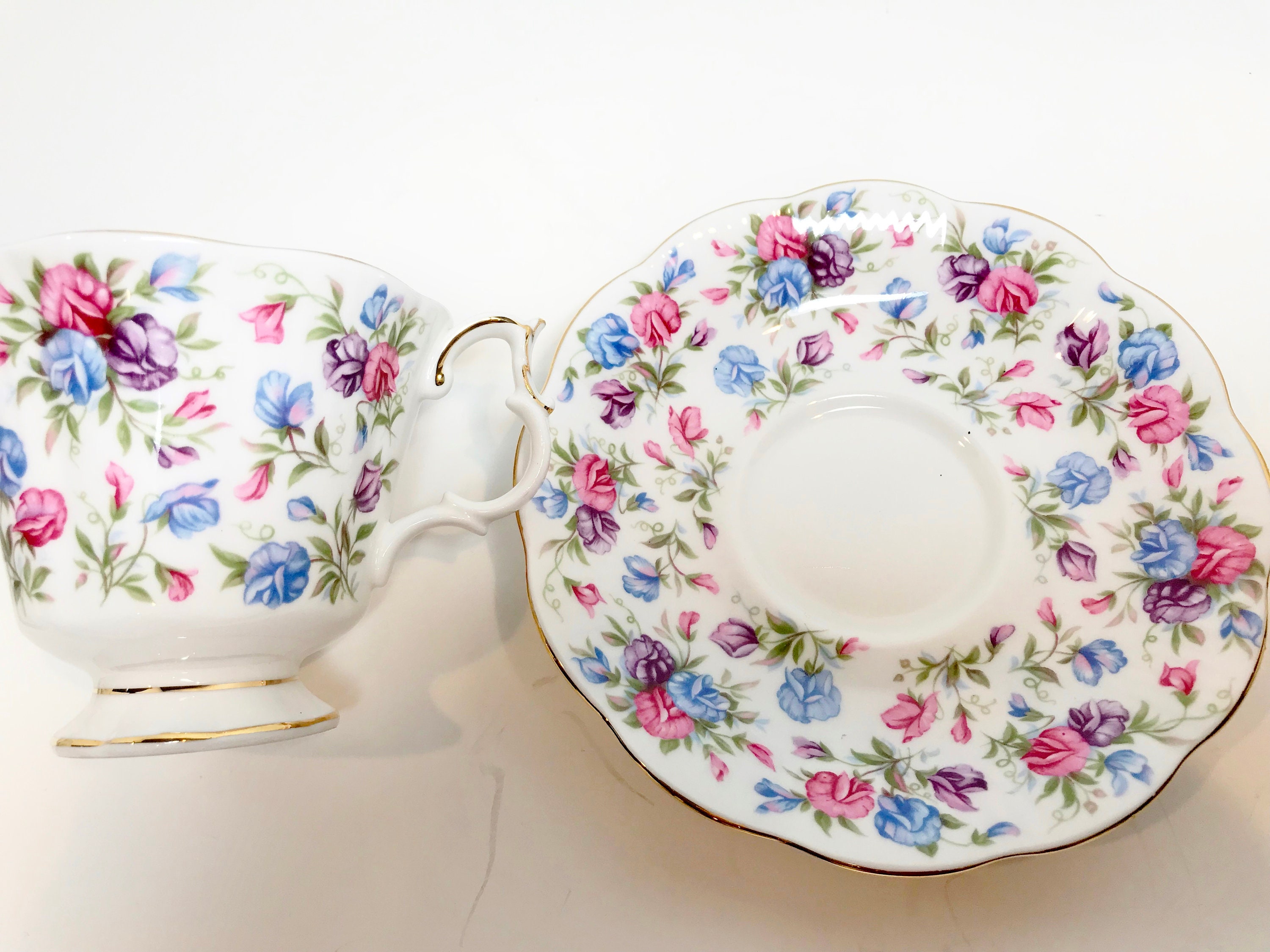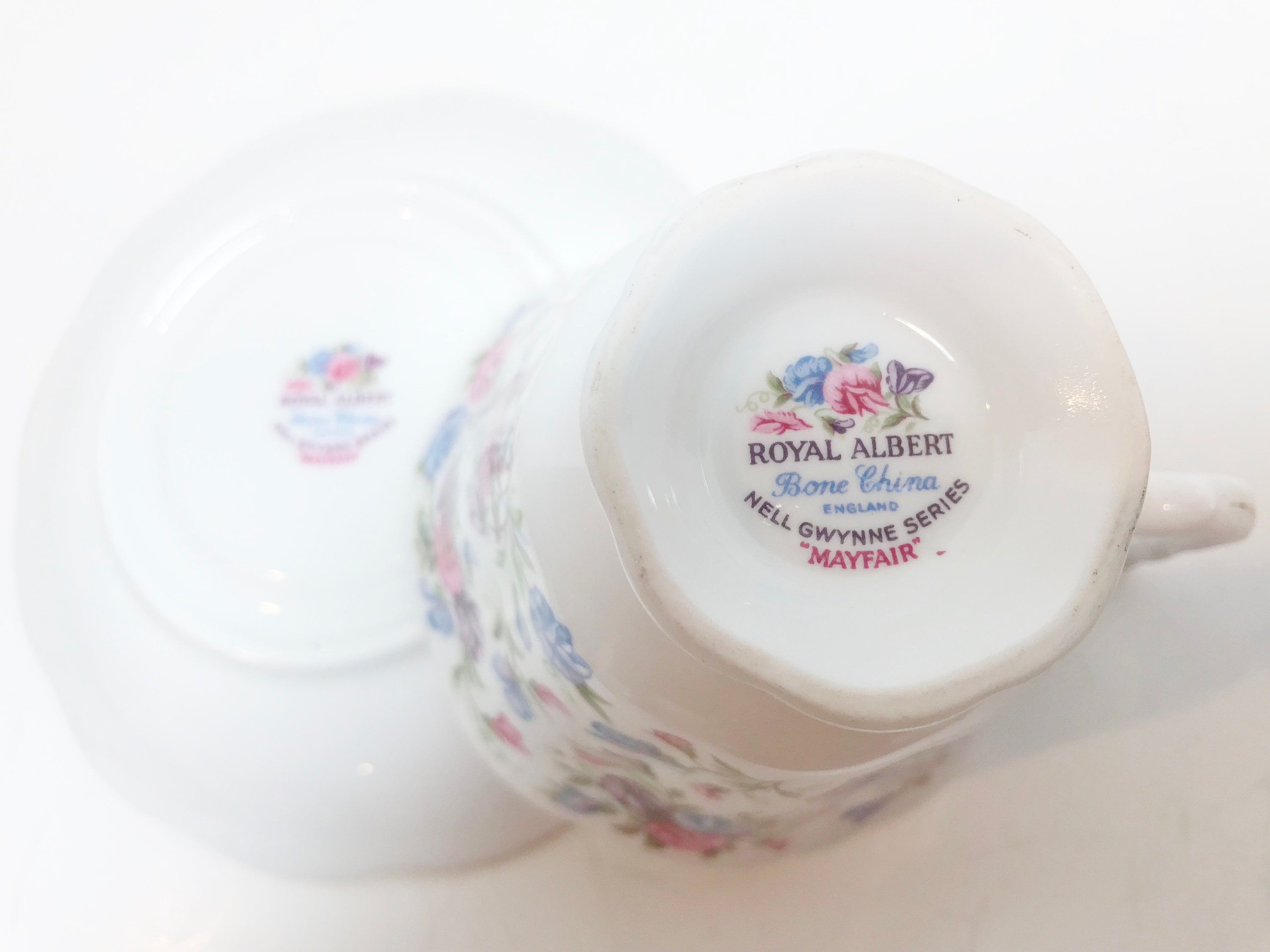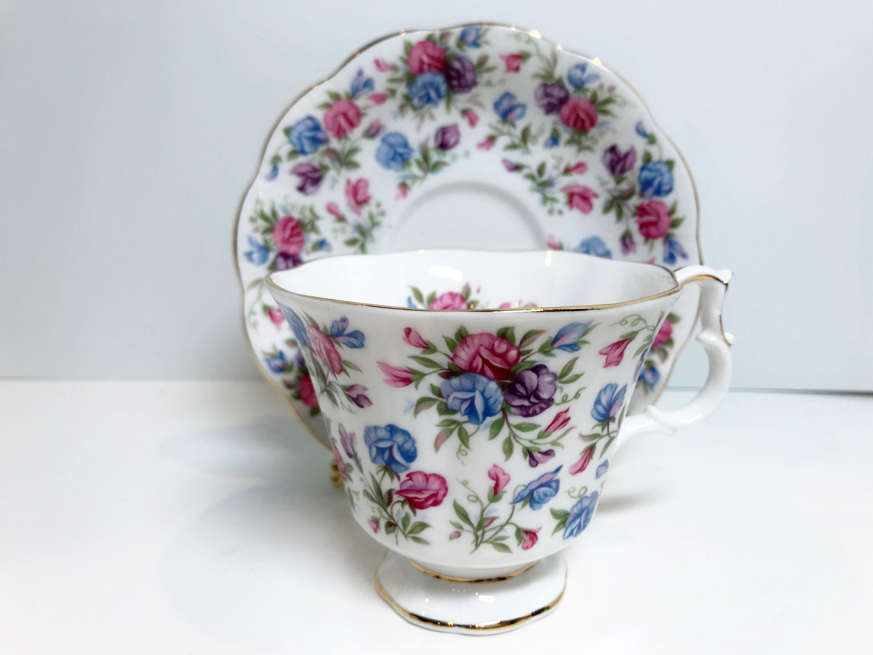 This Mayfair pattern is another colorful floral tea cup and saucer from the Nell Gwynne Series.