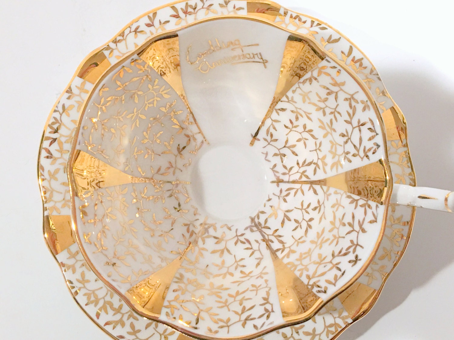 Wedding Anniversary Tea Cup and Saucer, Bone China Cup, Antique Tea Cups, Gold Tea Cups, Antique Teacups, Anniversary Teacup, Queen Anne Cup