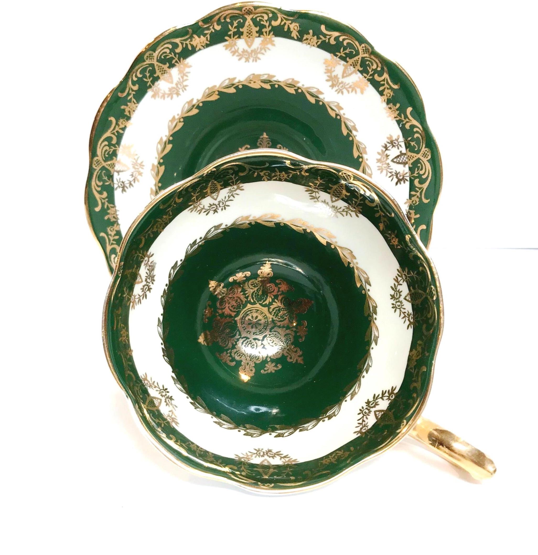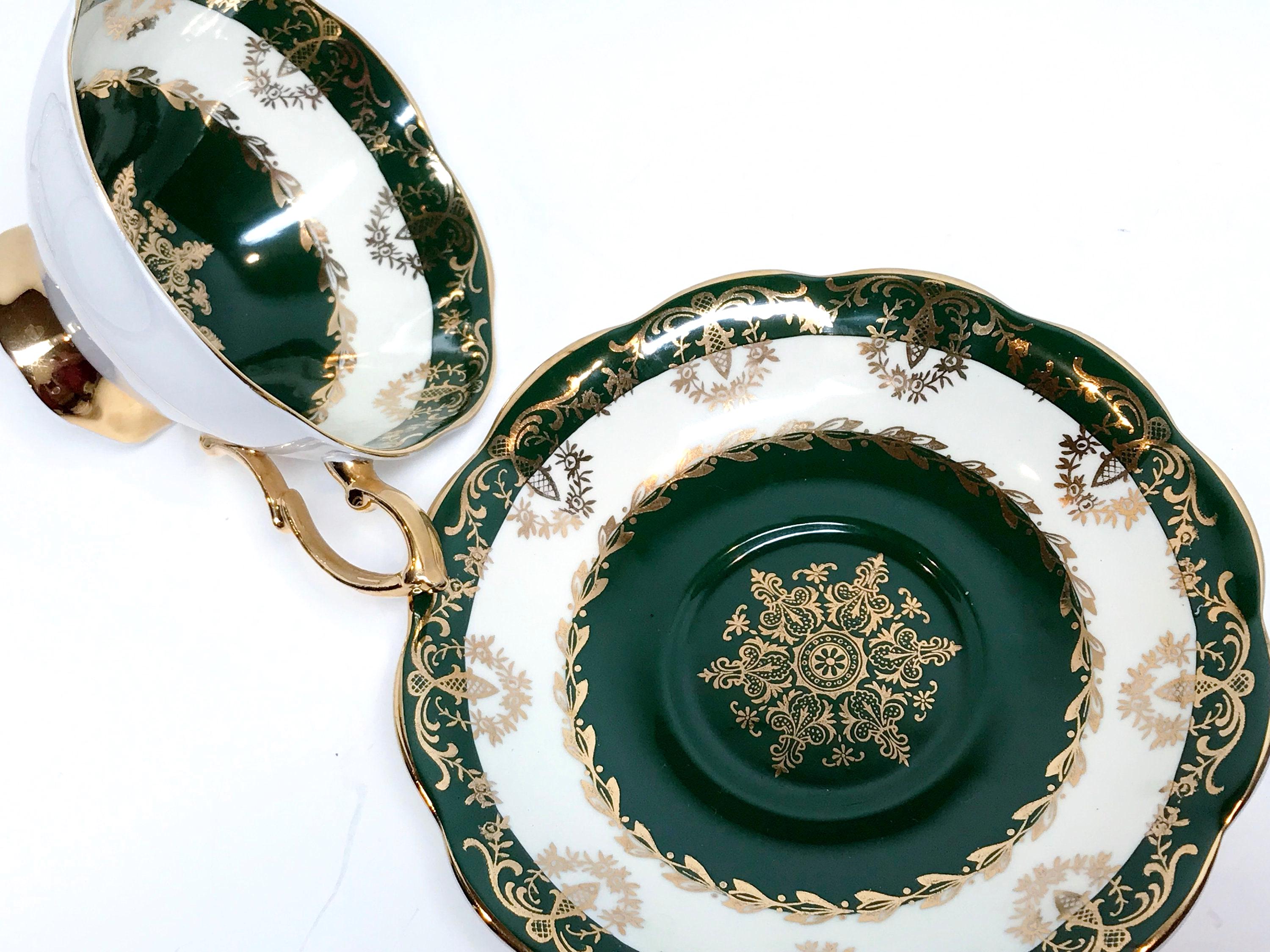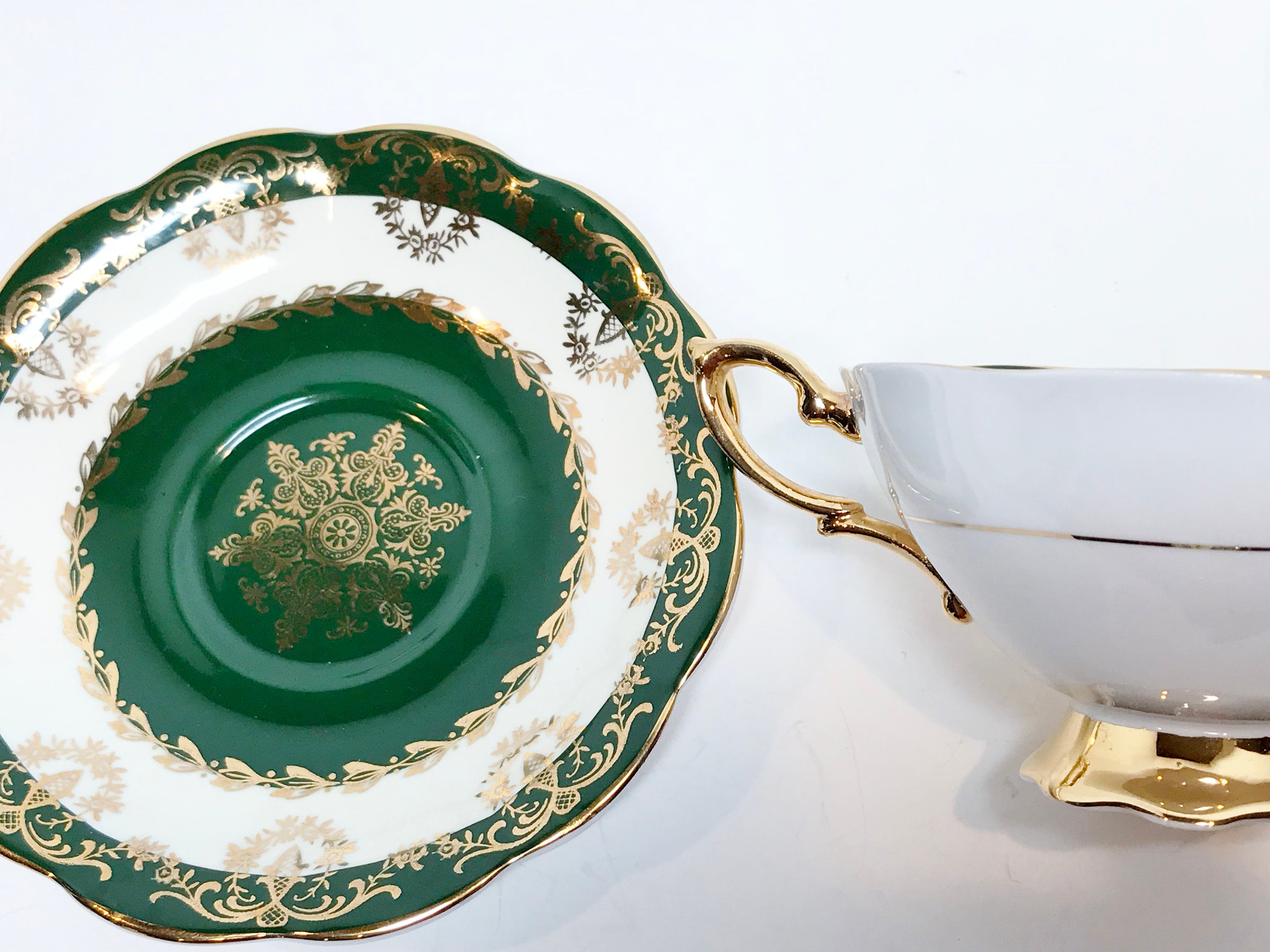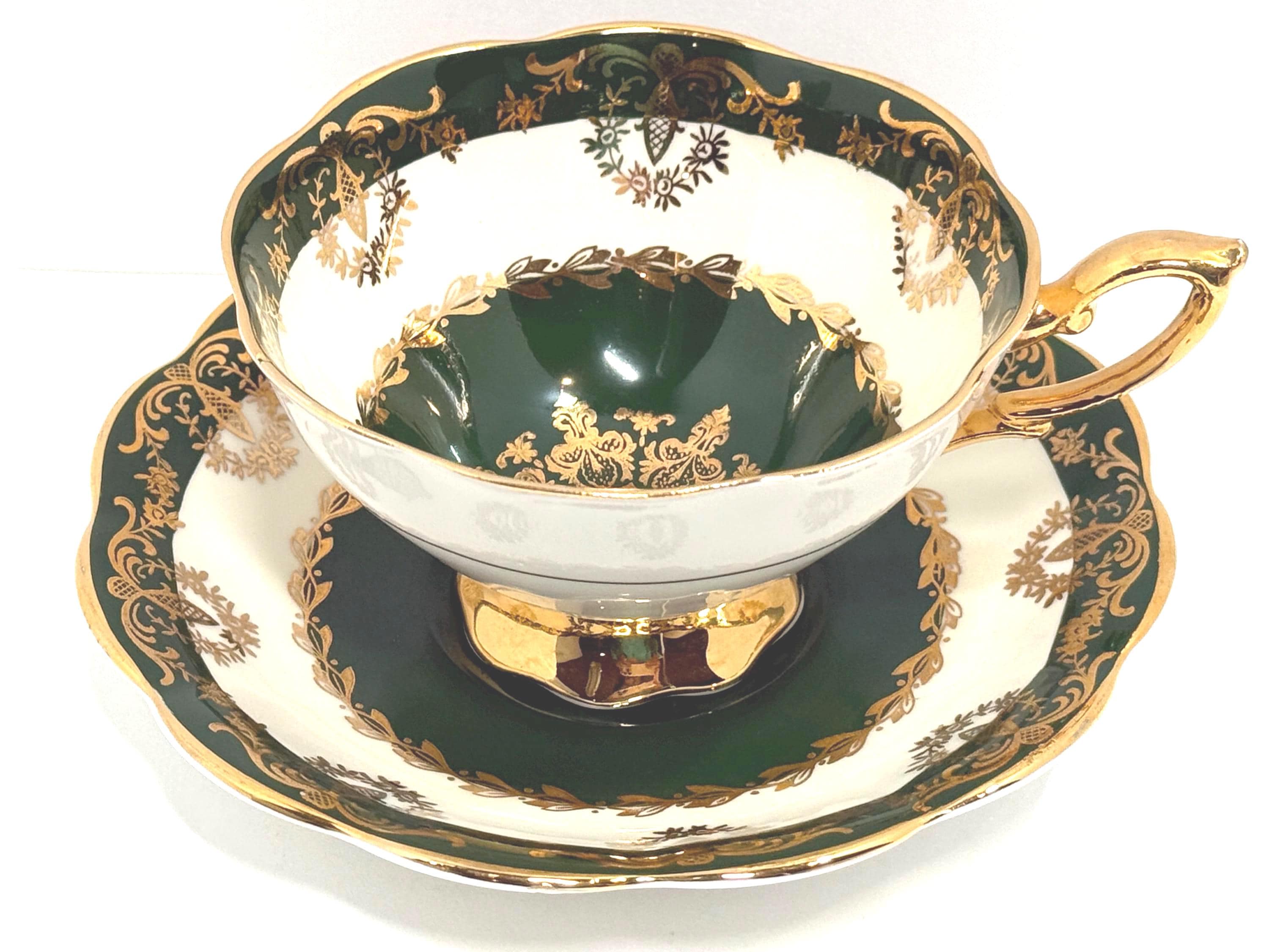 This elegant tea cup and saucer, crafted by Royal Standard Fine Bone China of England, is a true delight. With shimmering gold framing a rich green, it’s aptly named Irish Beauty. Whether you’re evoking the charm of the Irish countryside or simply savoring a warm drink at day’s end, this English tea cup and saucer is a perfect choice.