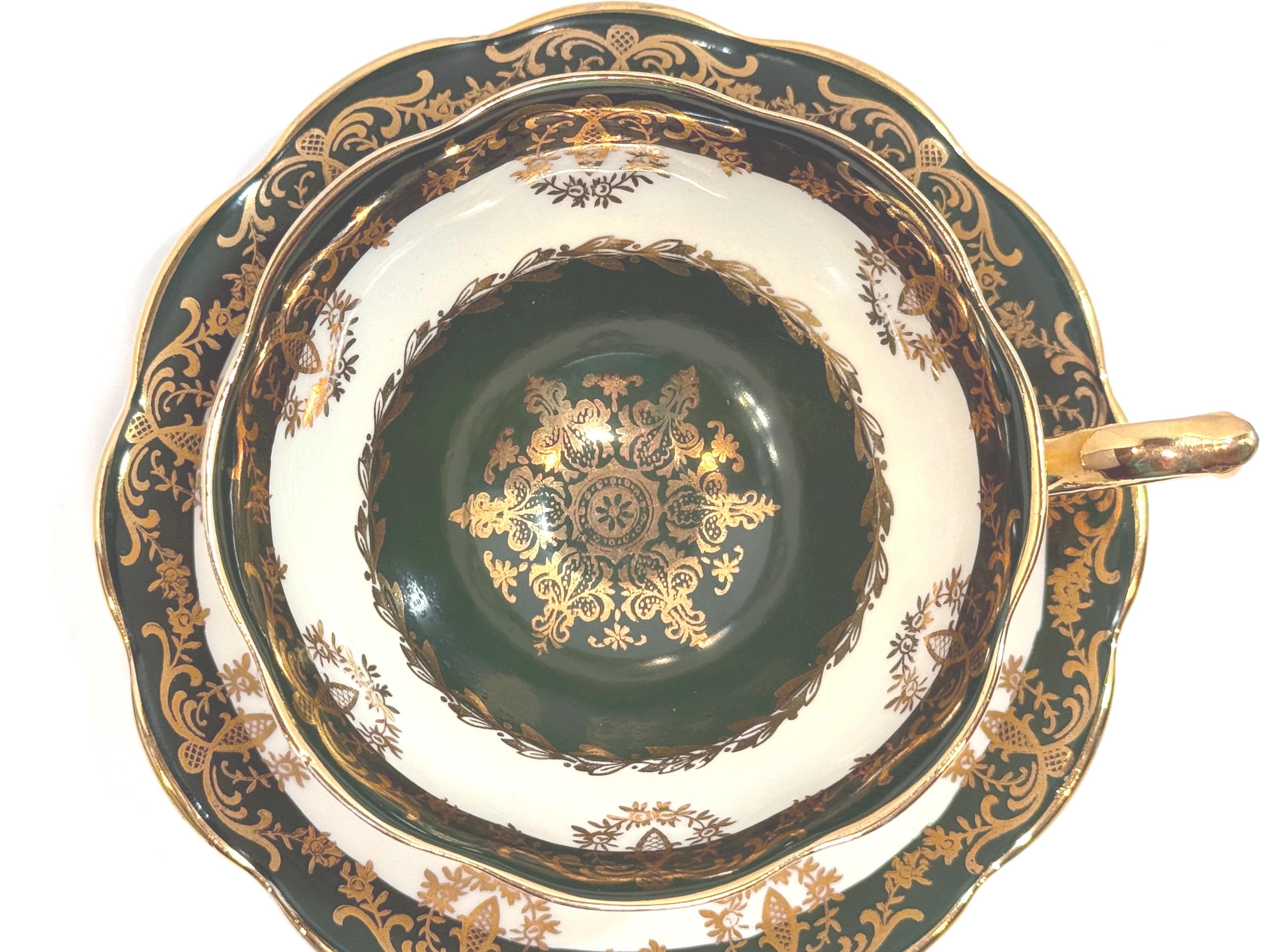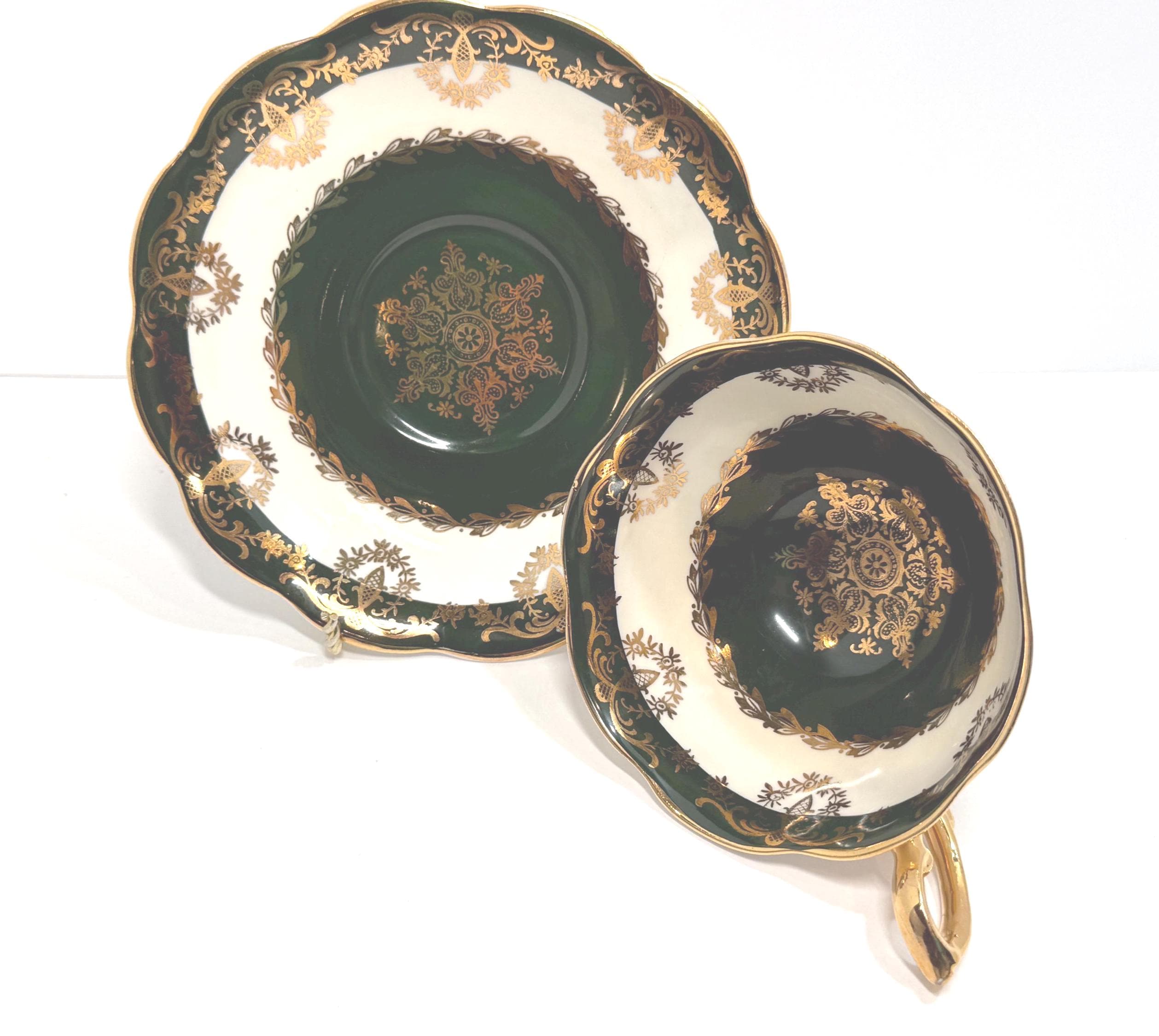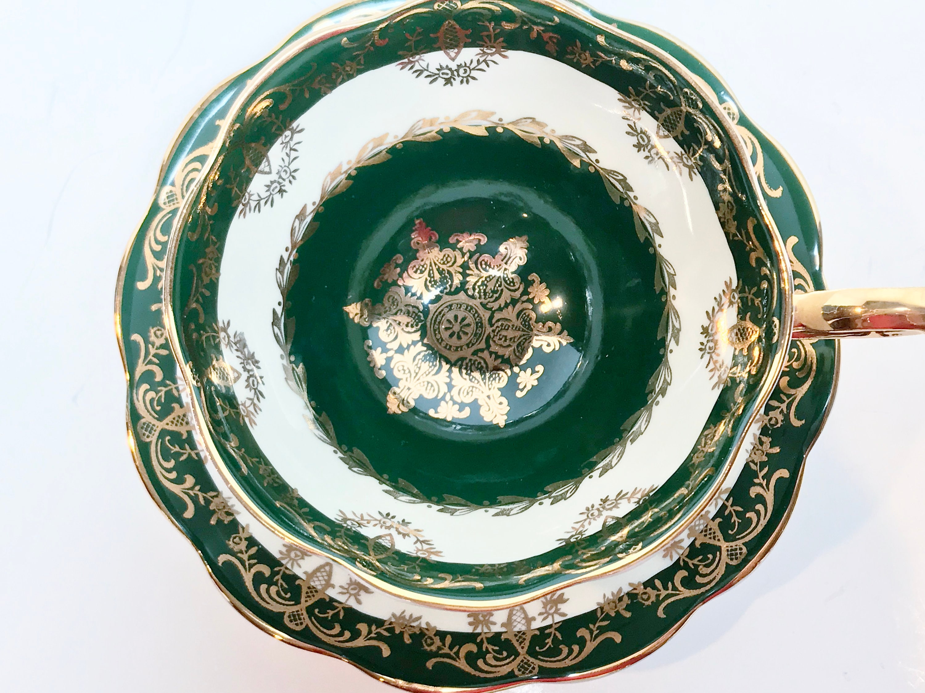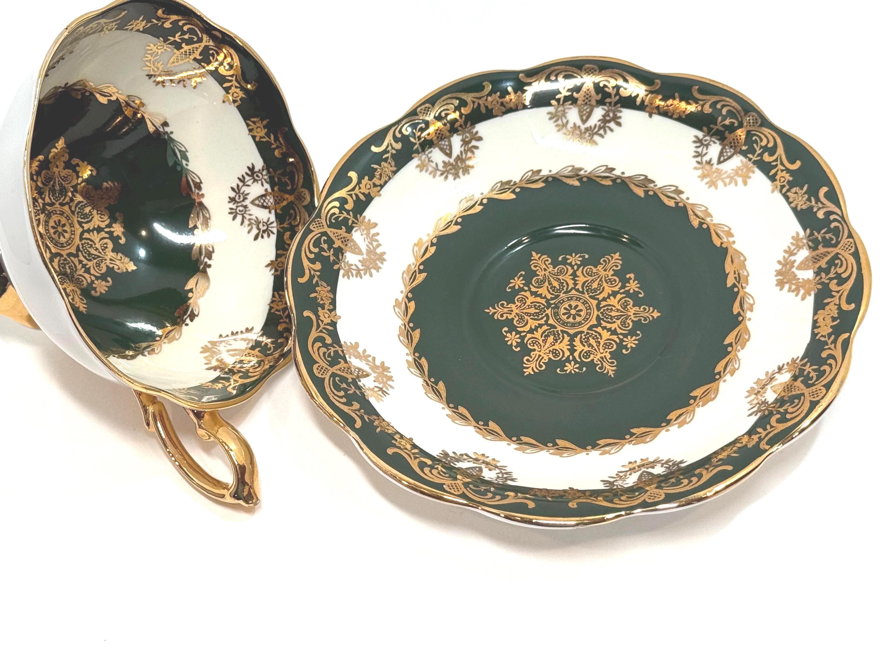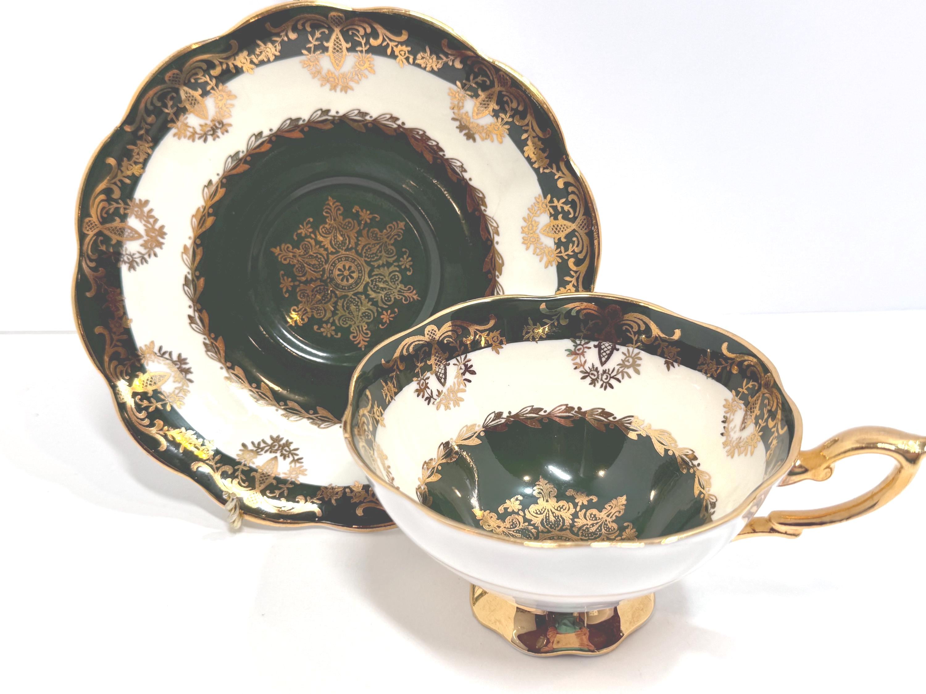 This elegant tea cup and saucer, crafted by Royal Standard Fine Bone China of England, is a true delight. With shimmering gold framing a rich green, it’s aptly named Irish Beauty. Whether you’re evoking the charm of the Irish countryside or simply savoring a warm drink at day’s end, this English tea cup and saucer is a perfect choice.