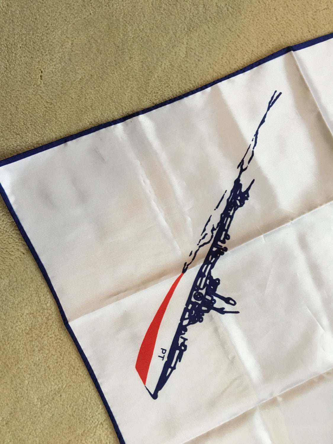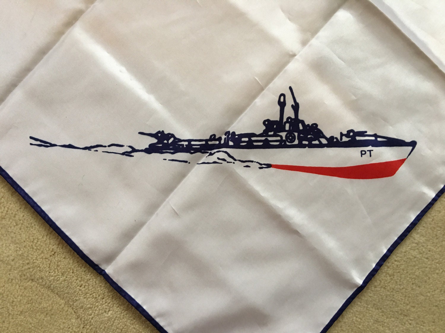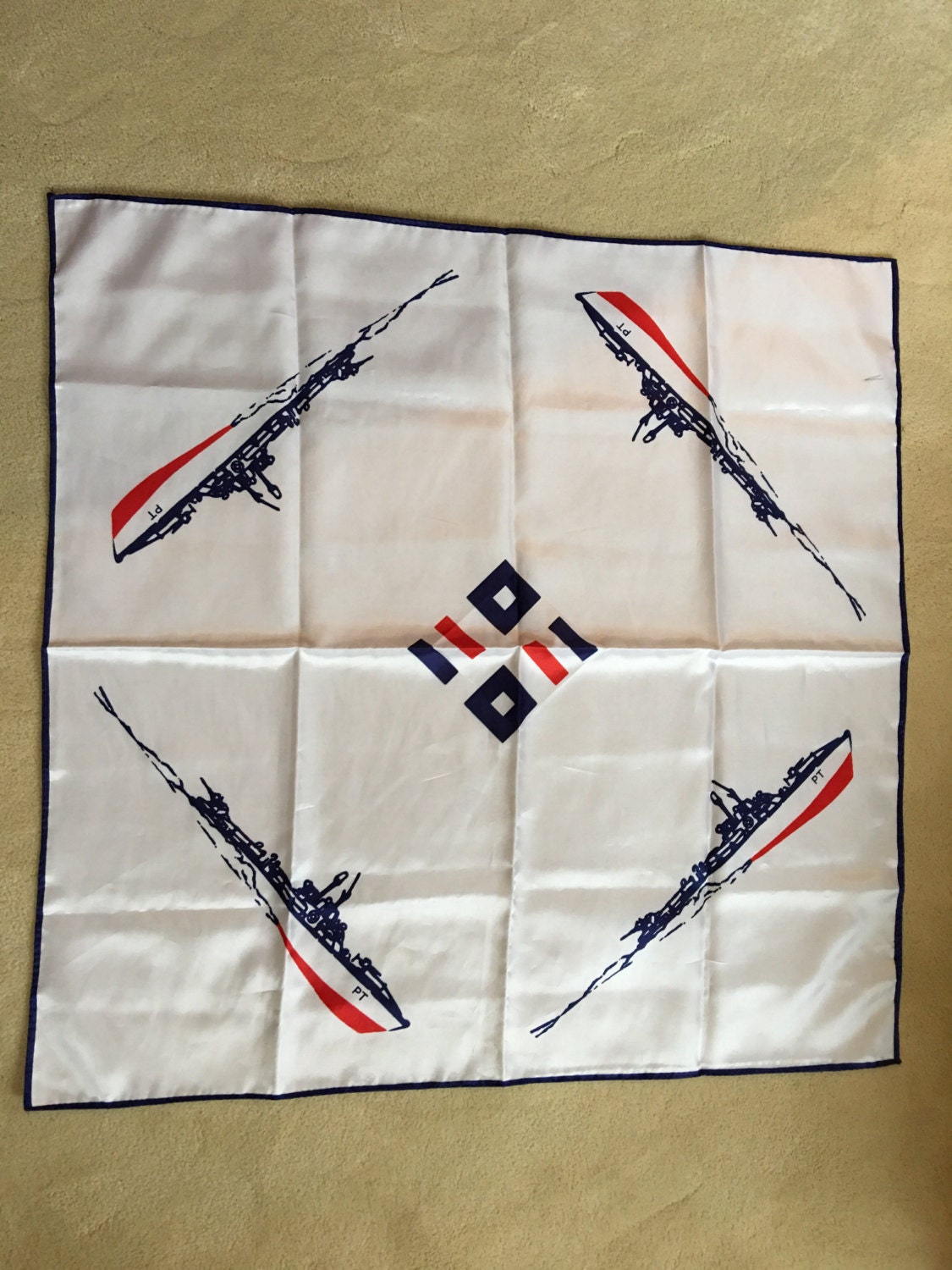The sailors remembered their Sweethearts at home by sending them a scarf with a World War 2, PT boat on it.