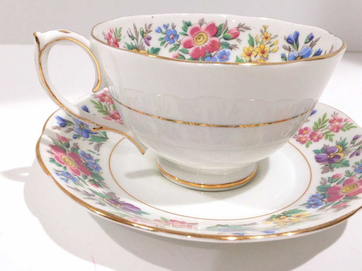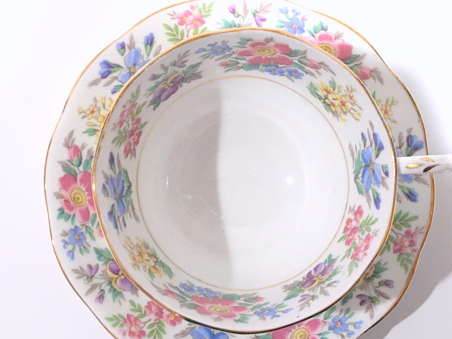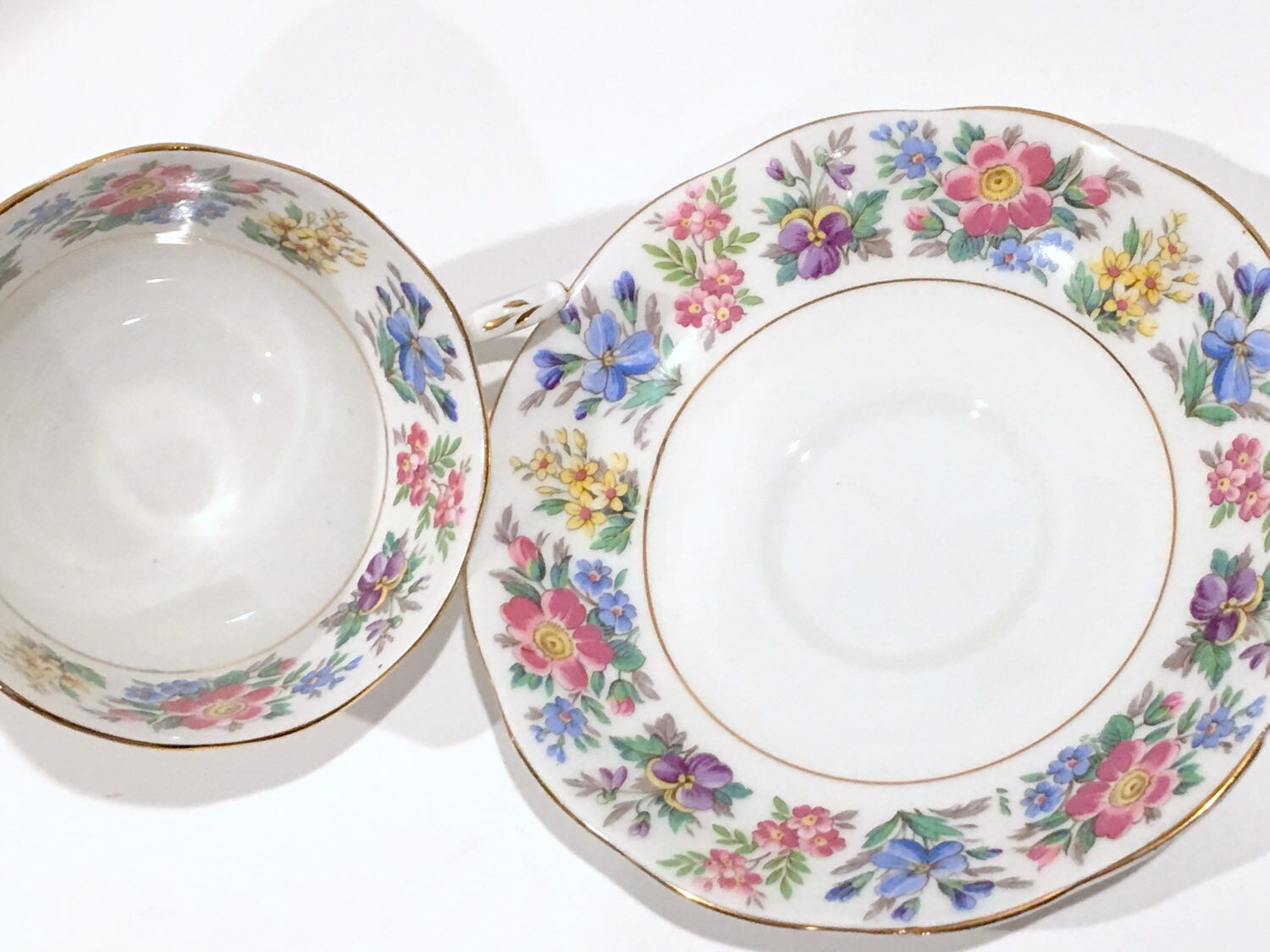 This English teacup and saucer is in excellent condition. There are no cracks, chips or crazing. We do not sell damaged items. You may buy with confidence.