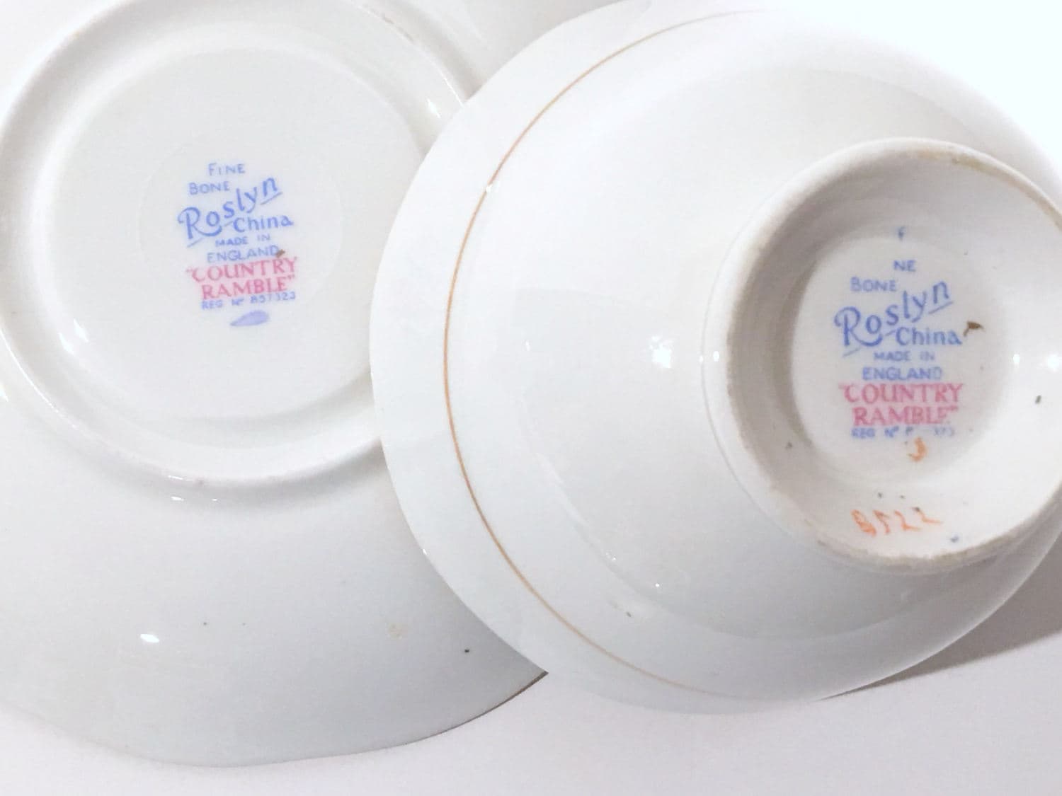 Roslyn Fine Bone China of England crafted this antique teacup and saucer in the 1950s.