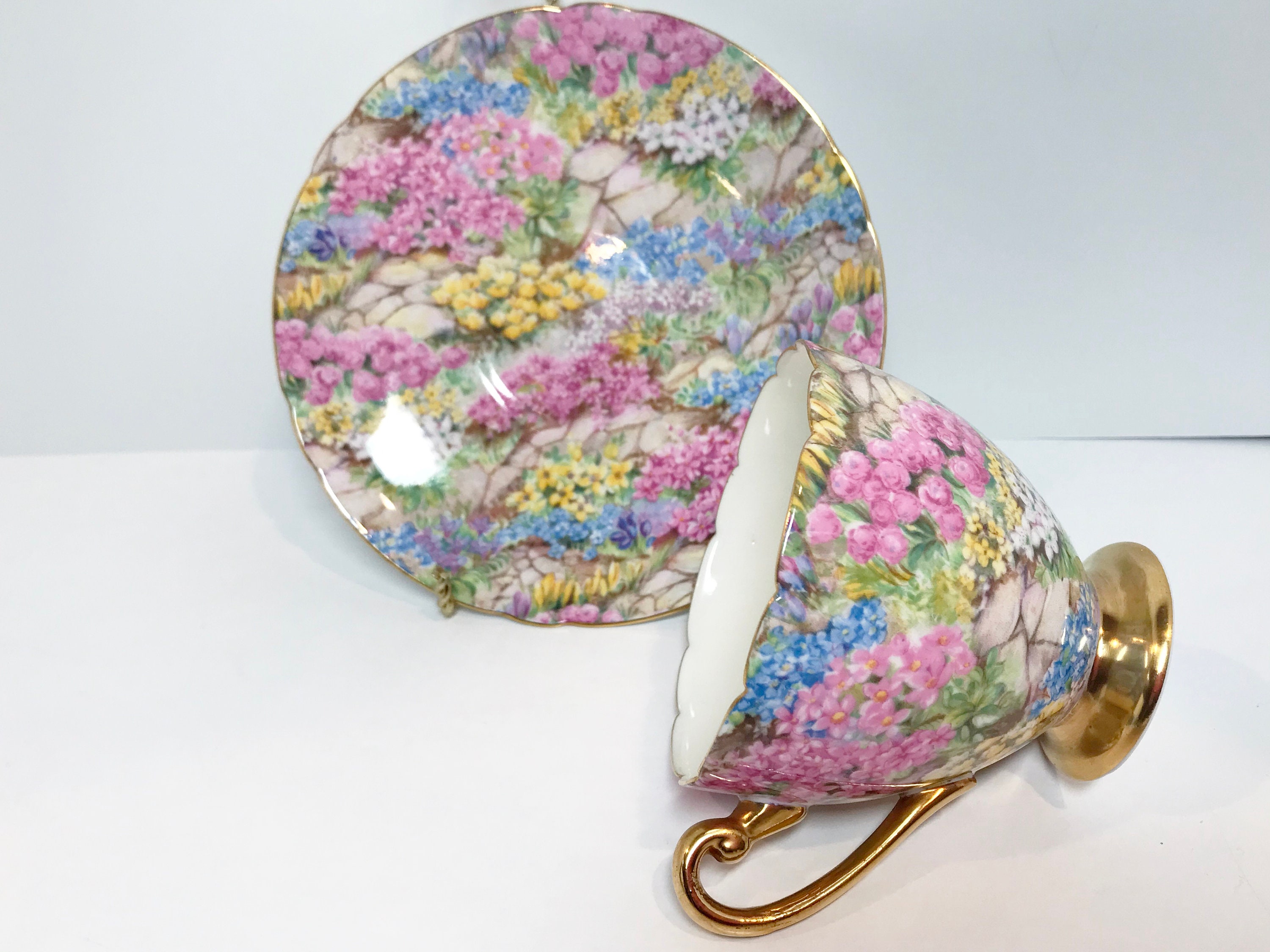 This colorful Rock Garden Chintz placed upon a Ripon shape tea cup and saucer adds elegance to every setting.