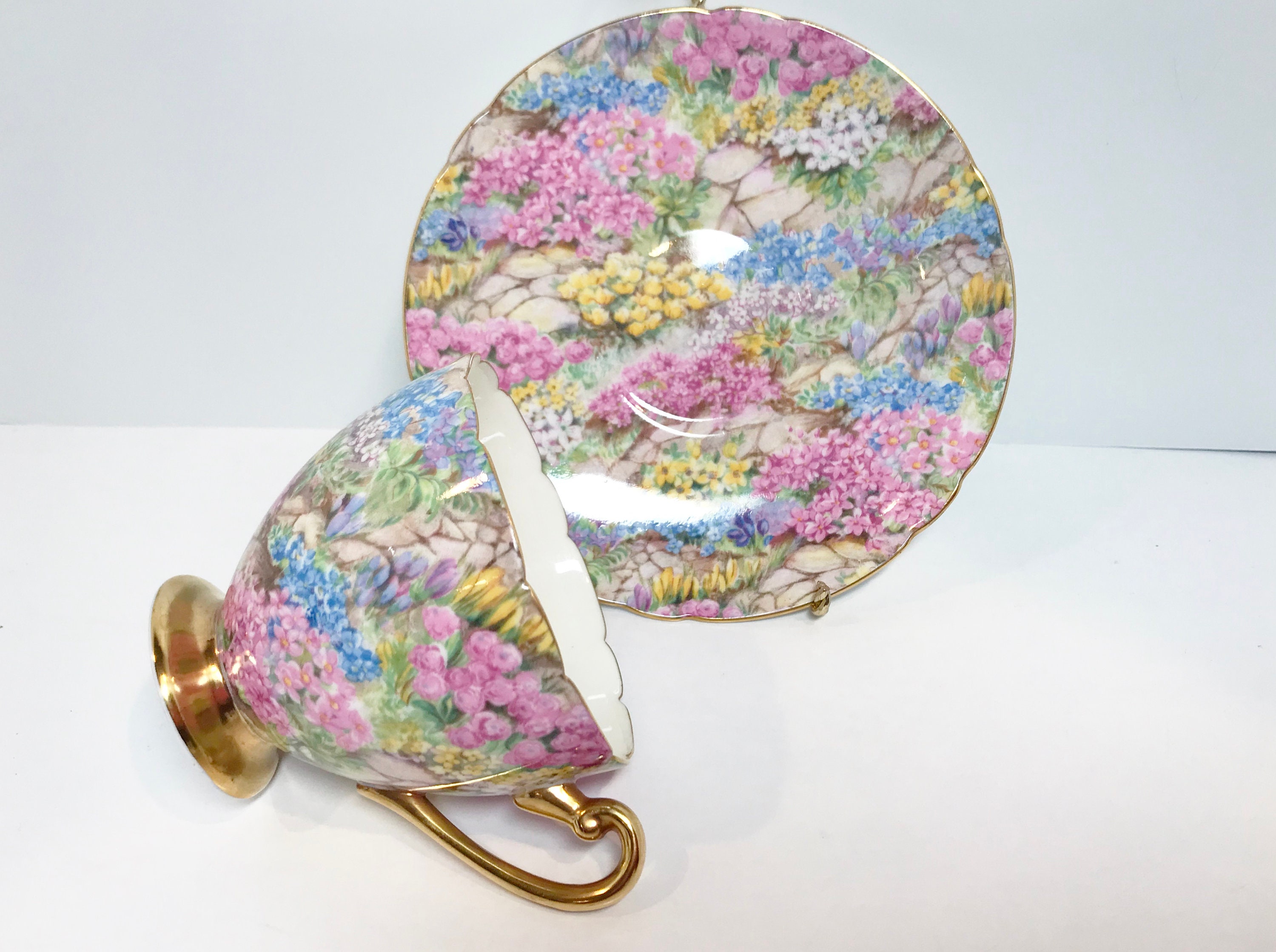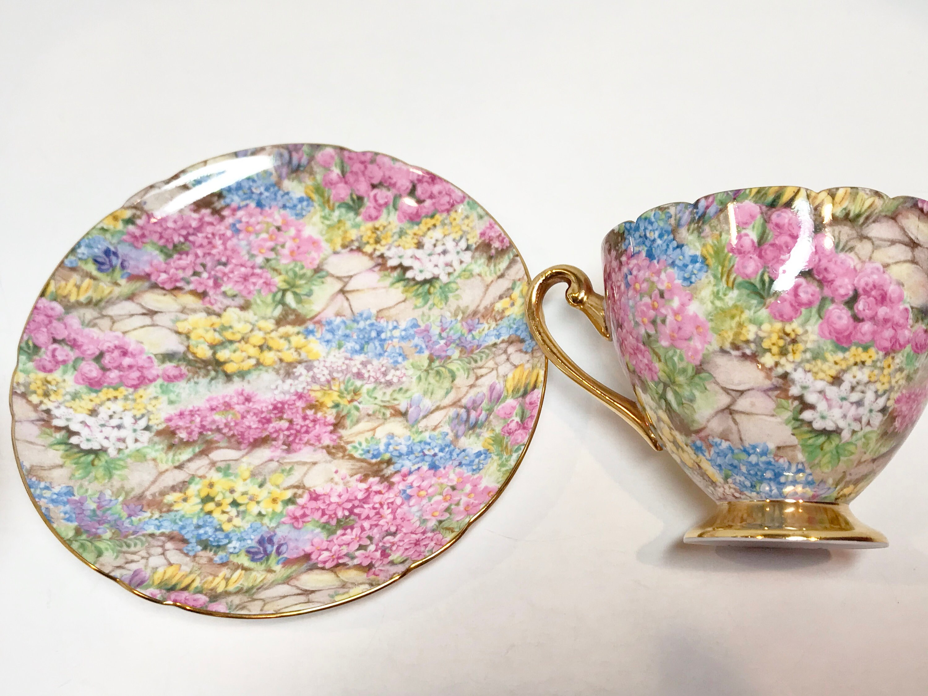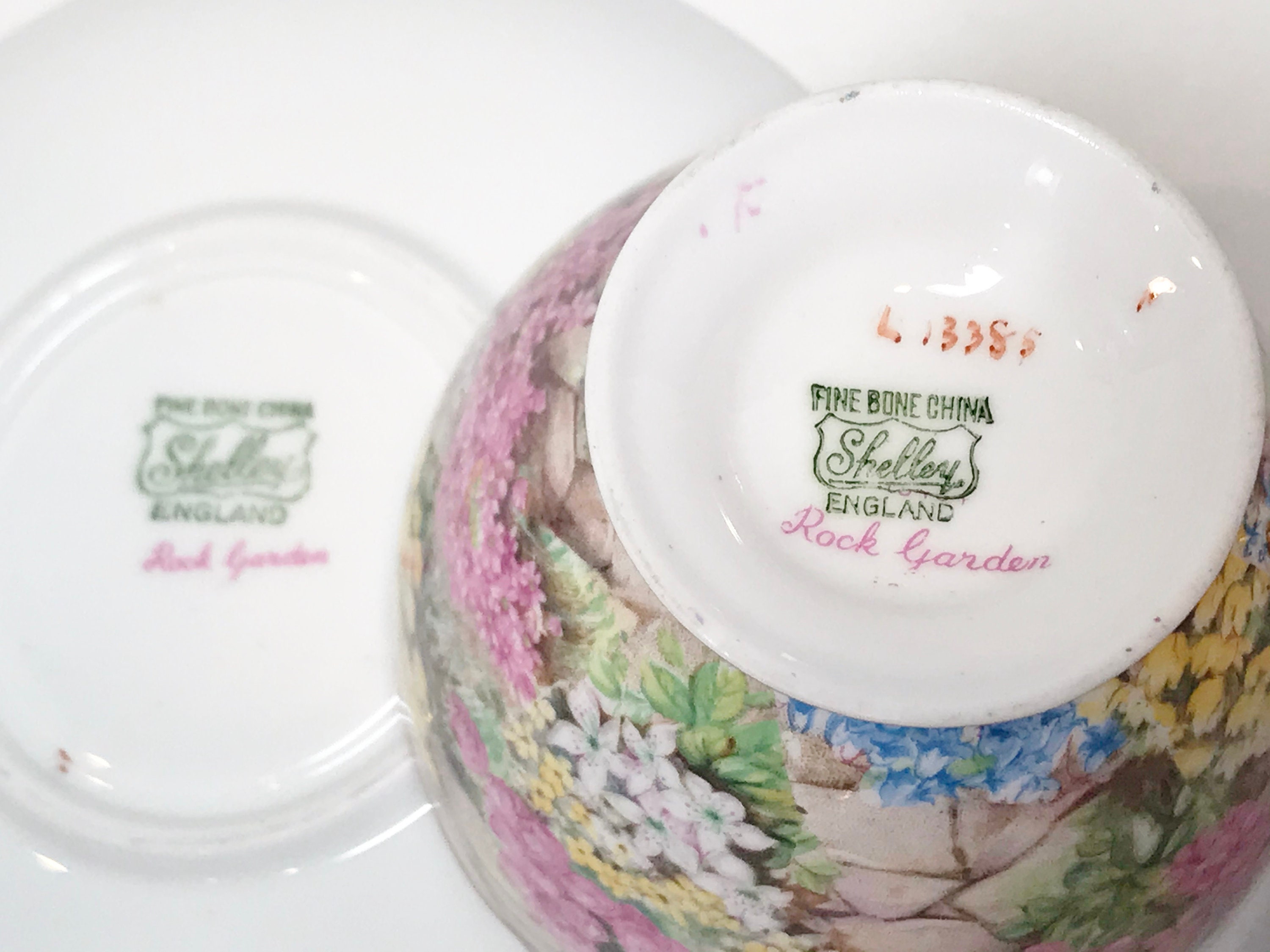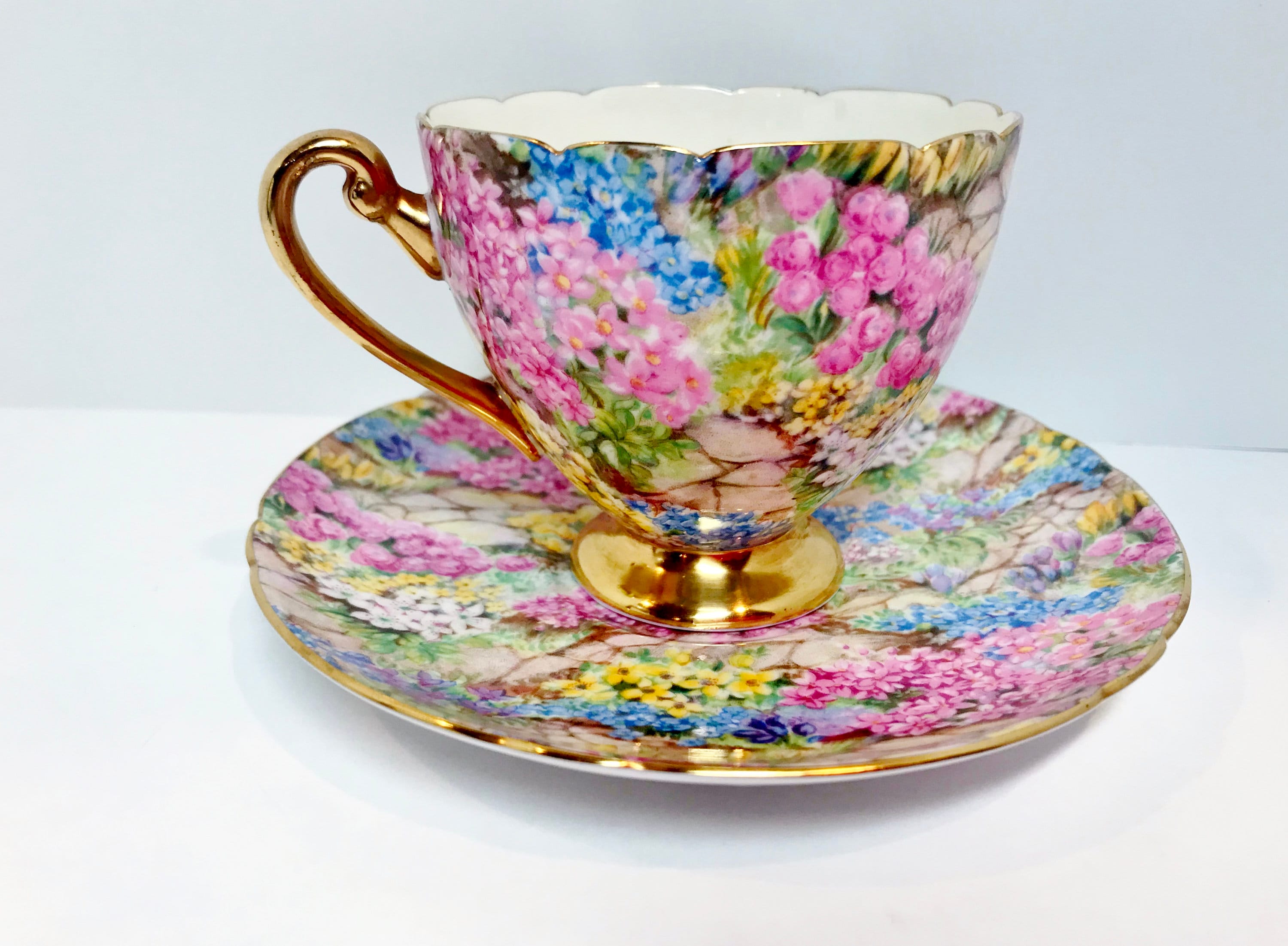 Shelley Rock Garden Teacup and Saucer, Shelley Teacups, Shelley China, Ripon Shape, Shelley Bone China, Pattern 13385, Vintage Tea Cups
