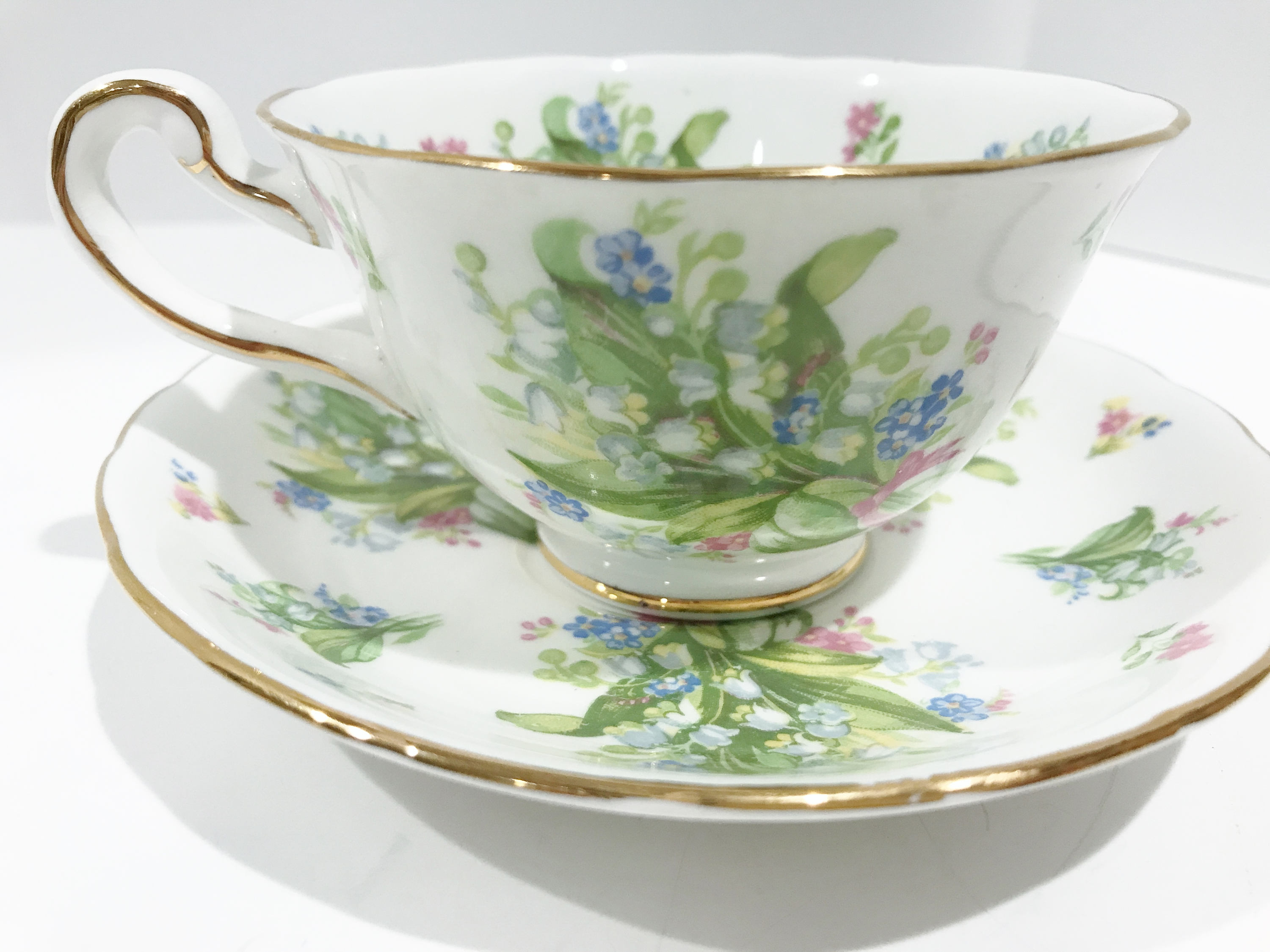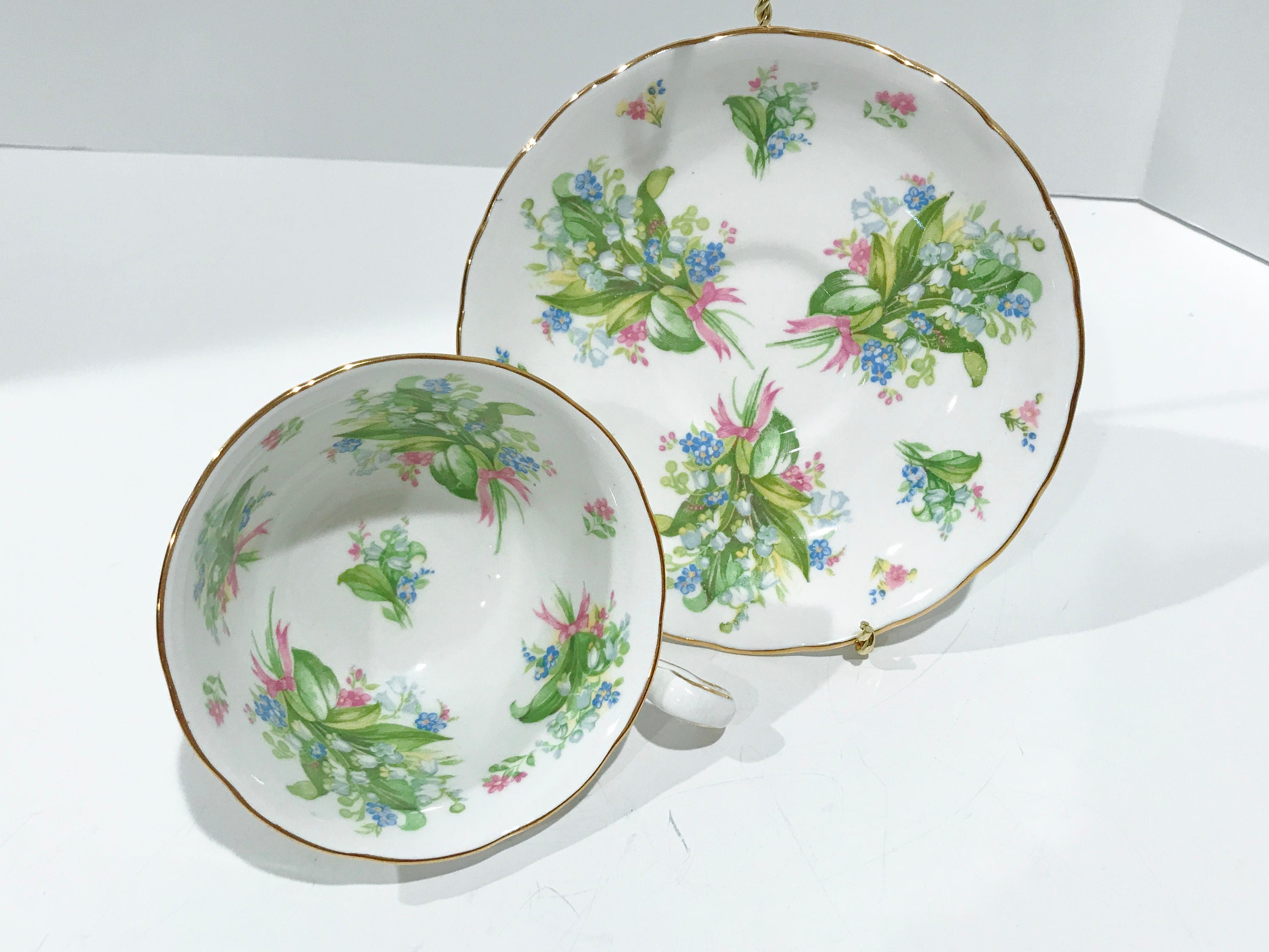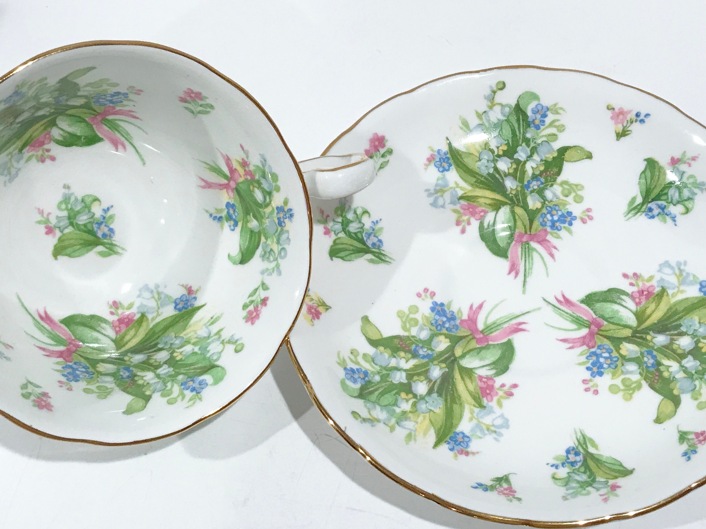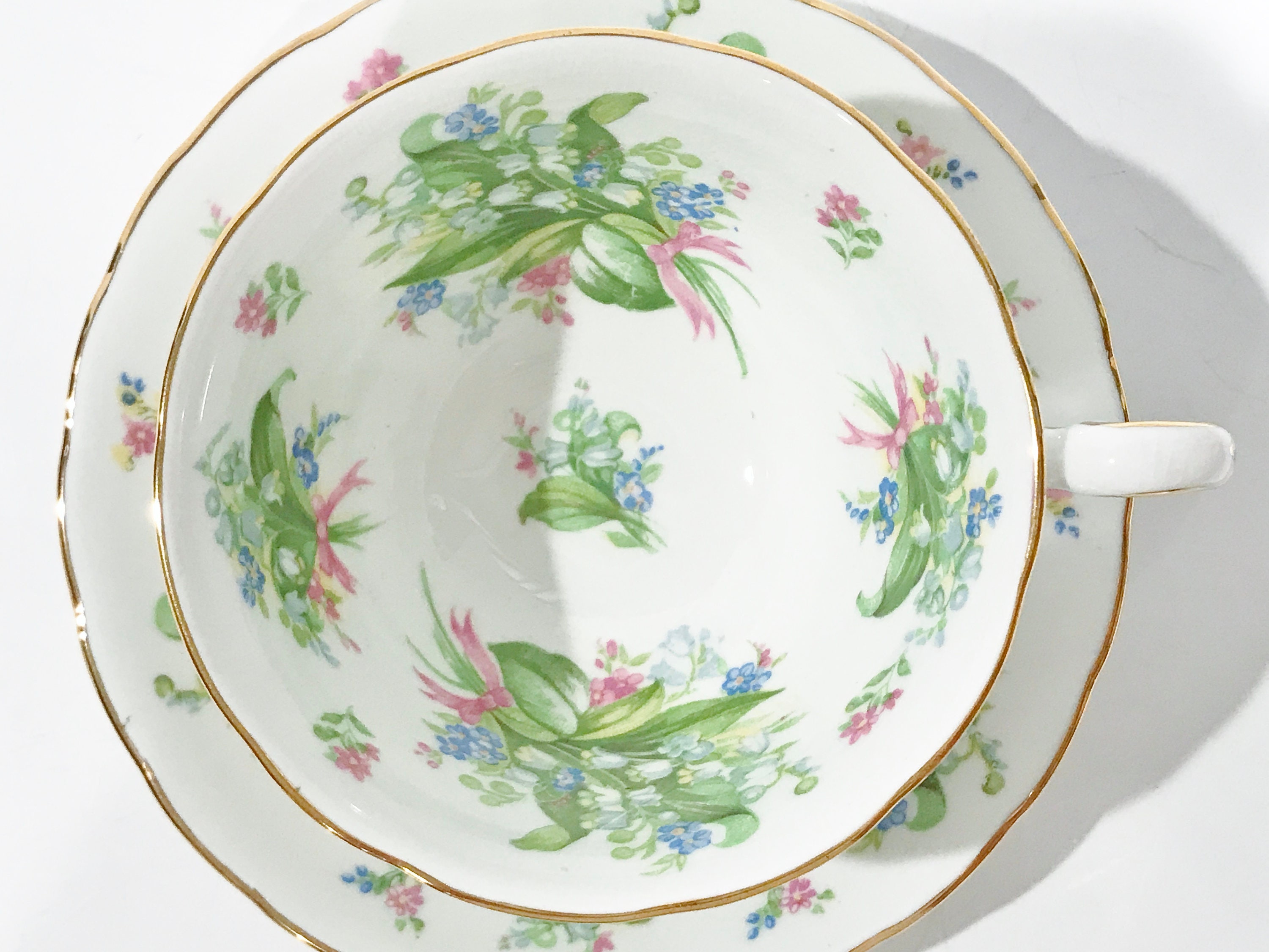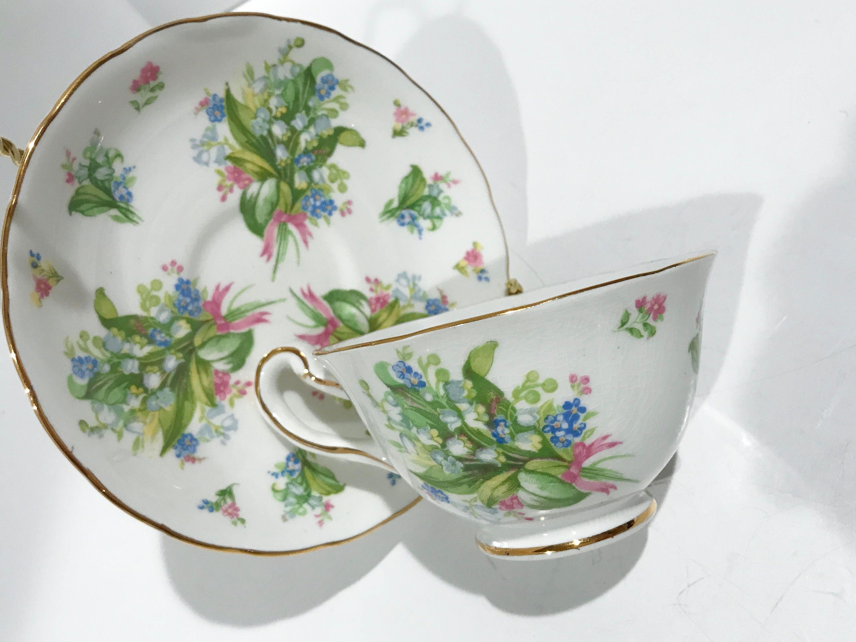 This English teacup and saucer is in excellent condition. There are no cracks, chips or crazing. We do not sell damaged items. You may buy with confidence.