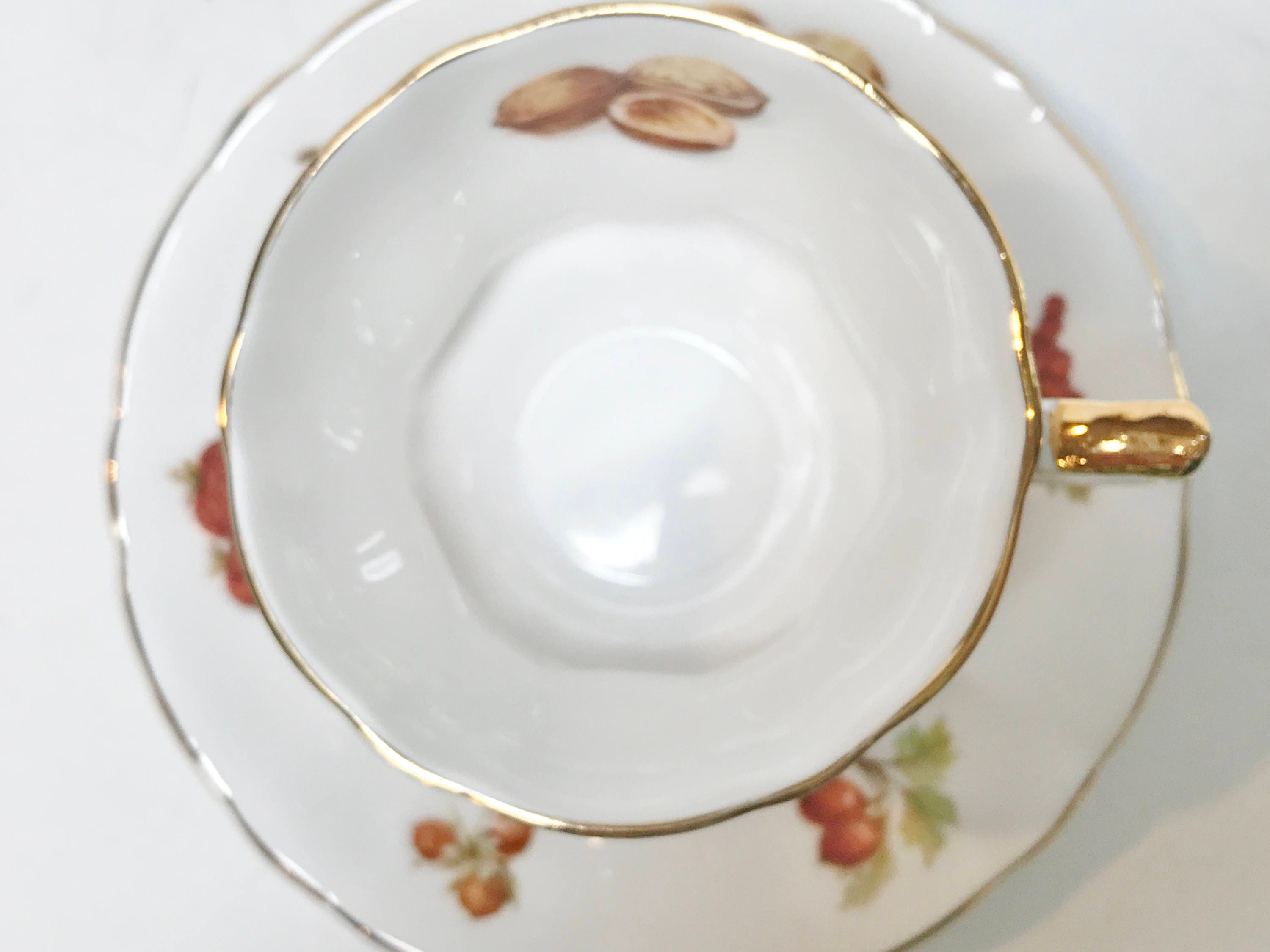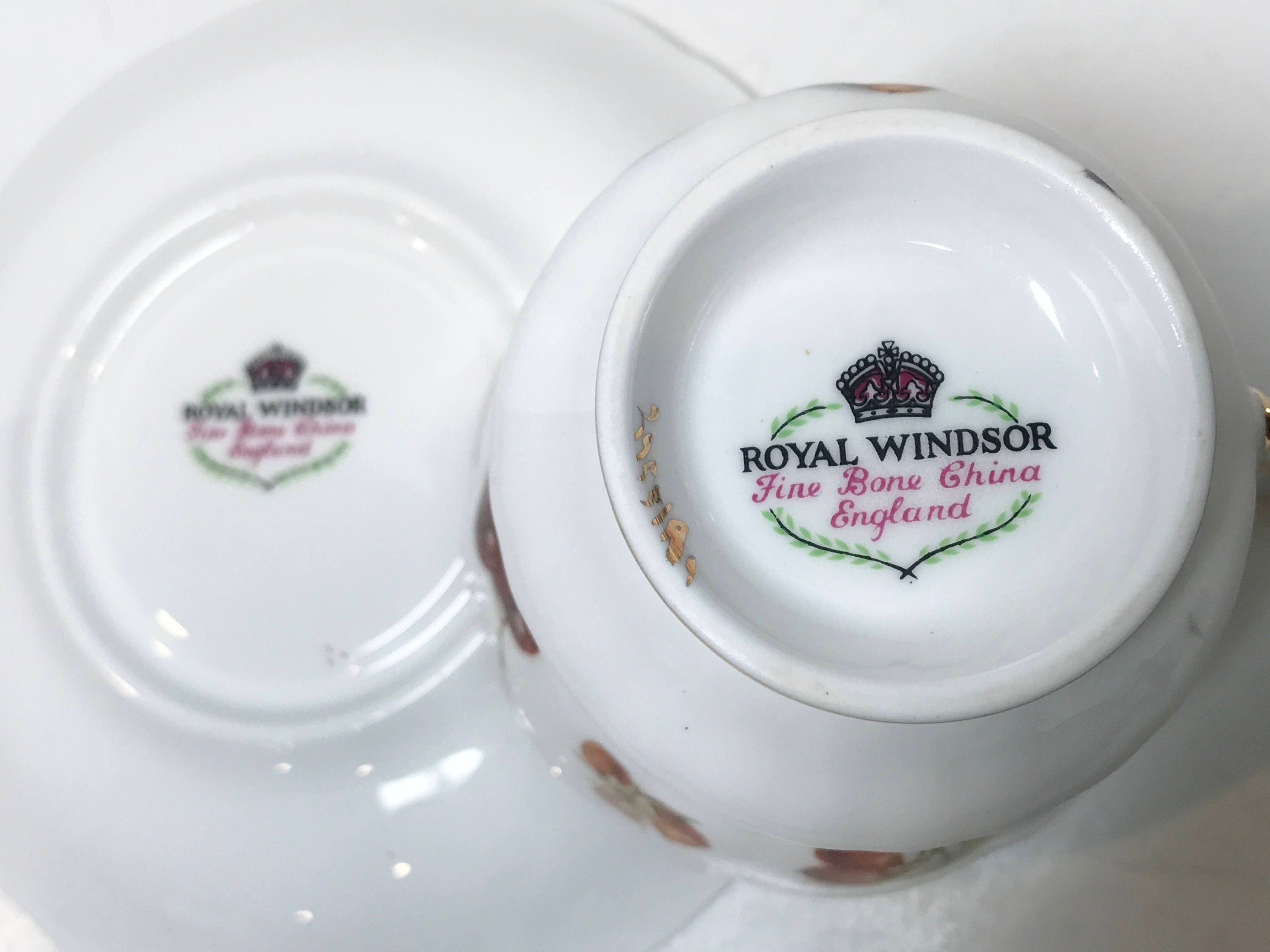 This charming antique teacup and saucer is made by Royal Windsor of England. Some think that this was a division of the Hammersley Bone China in Longton, England, but the records are scare about the company.