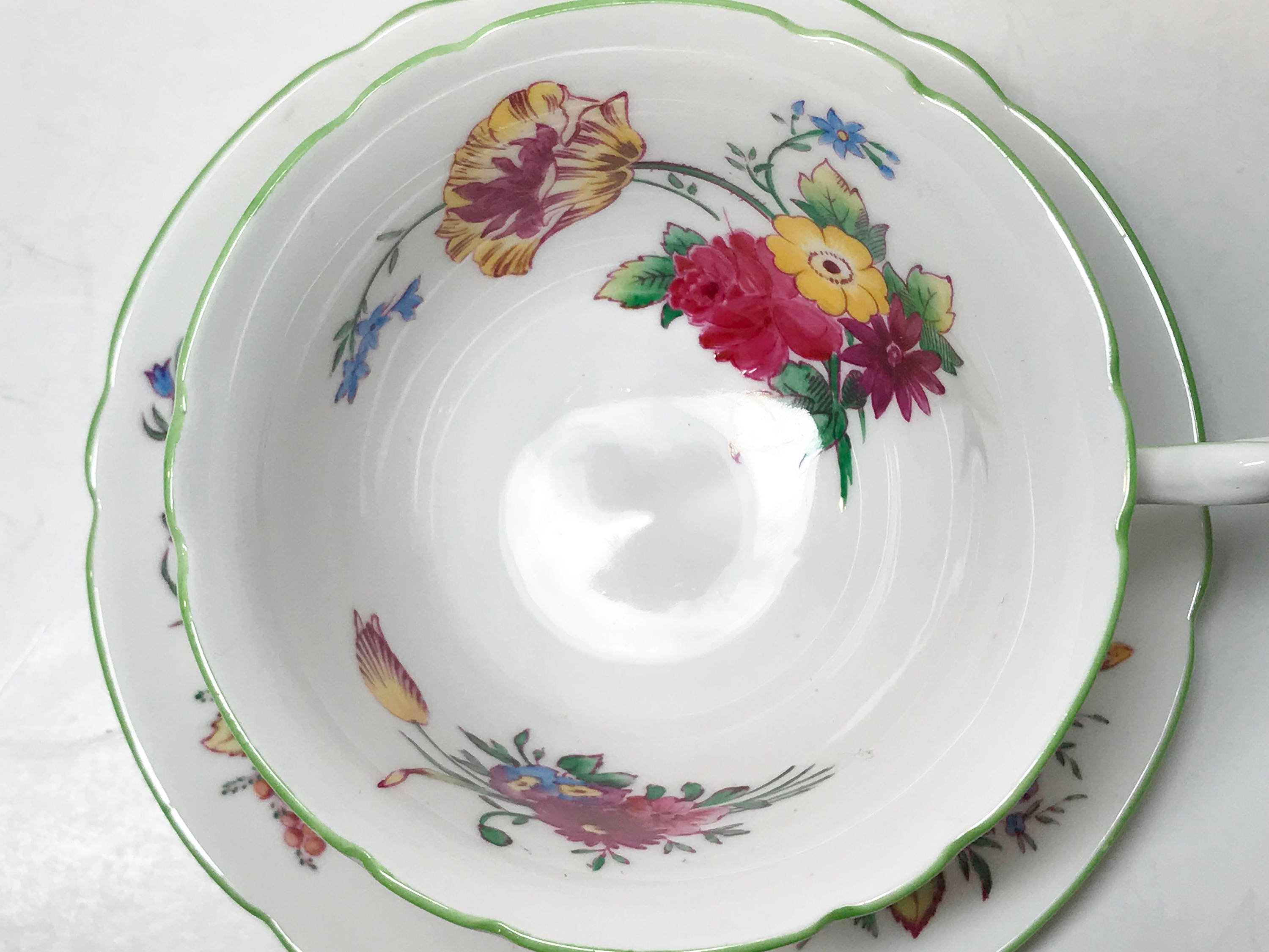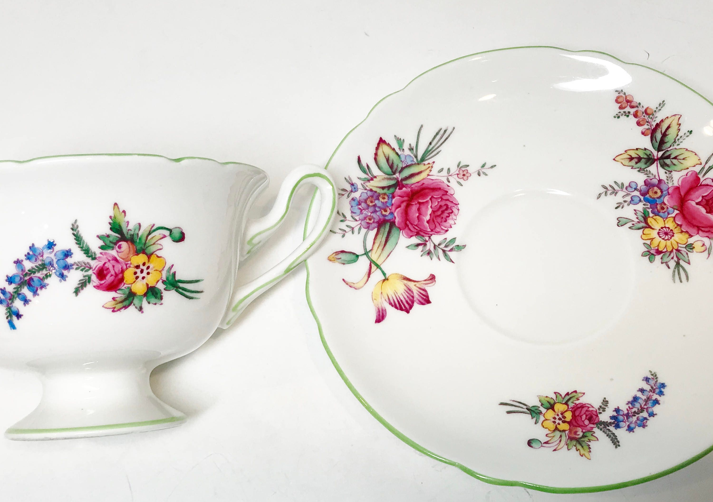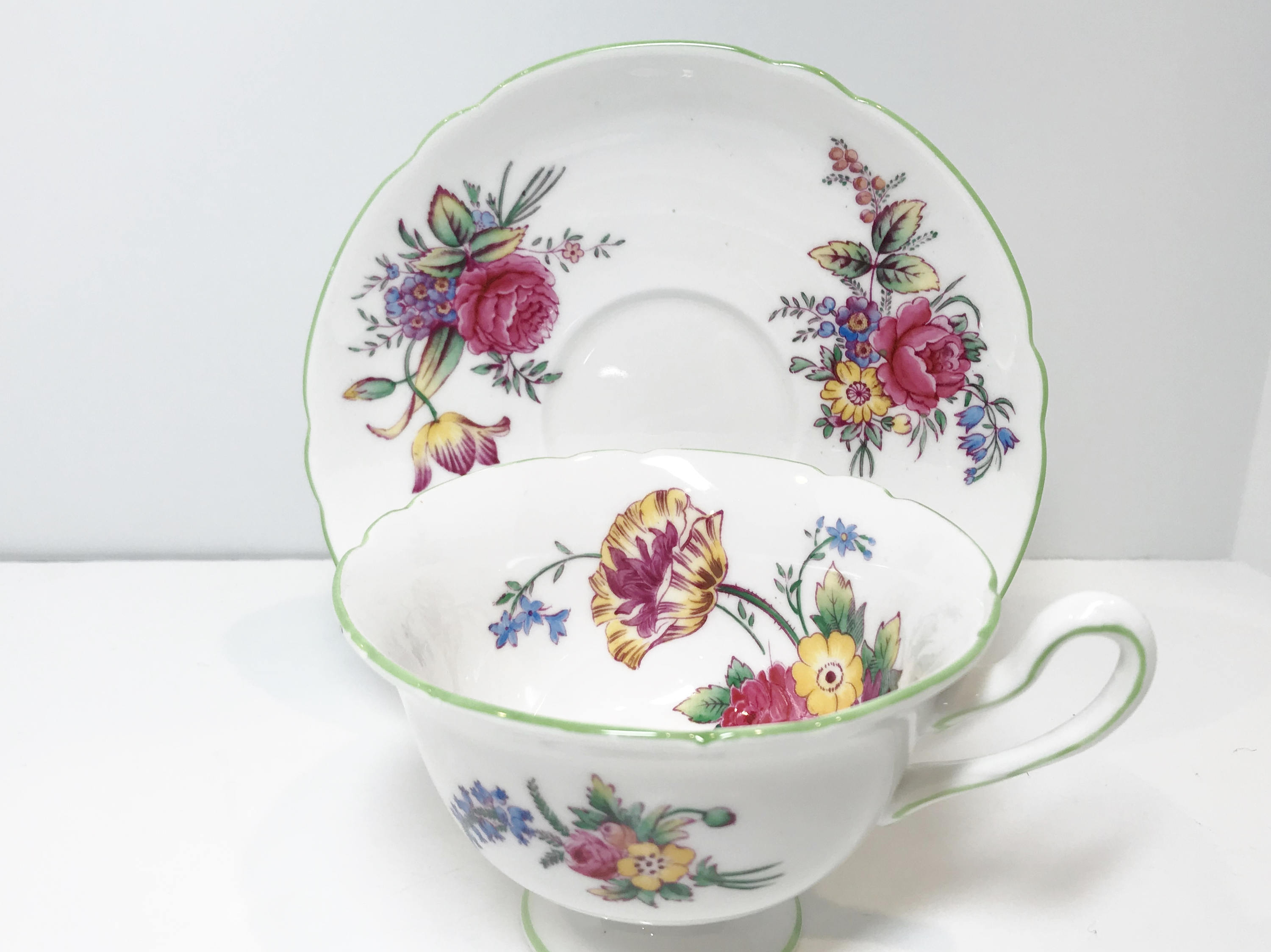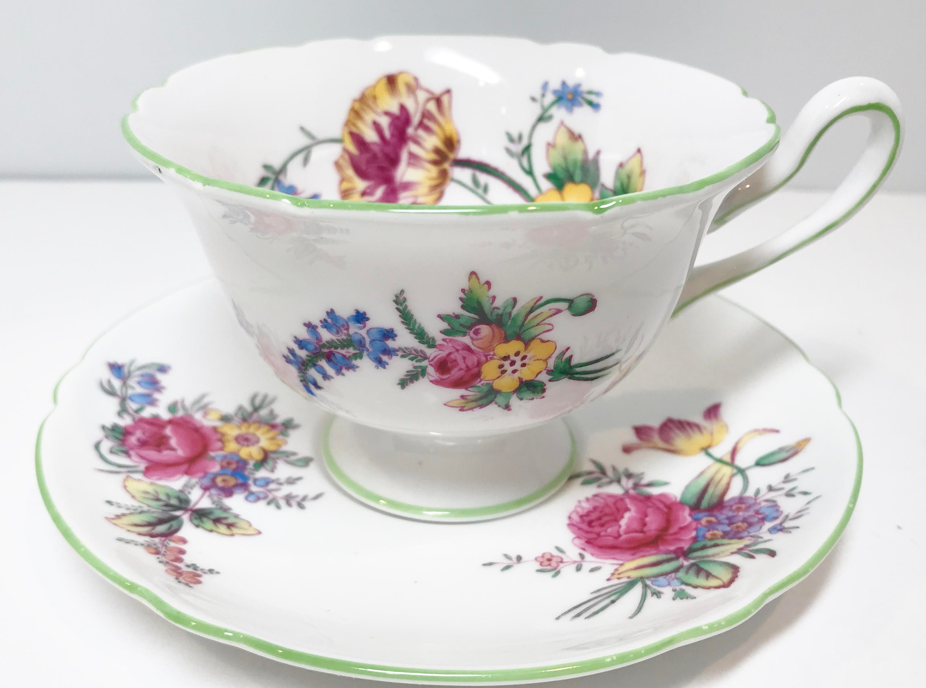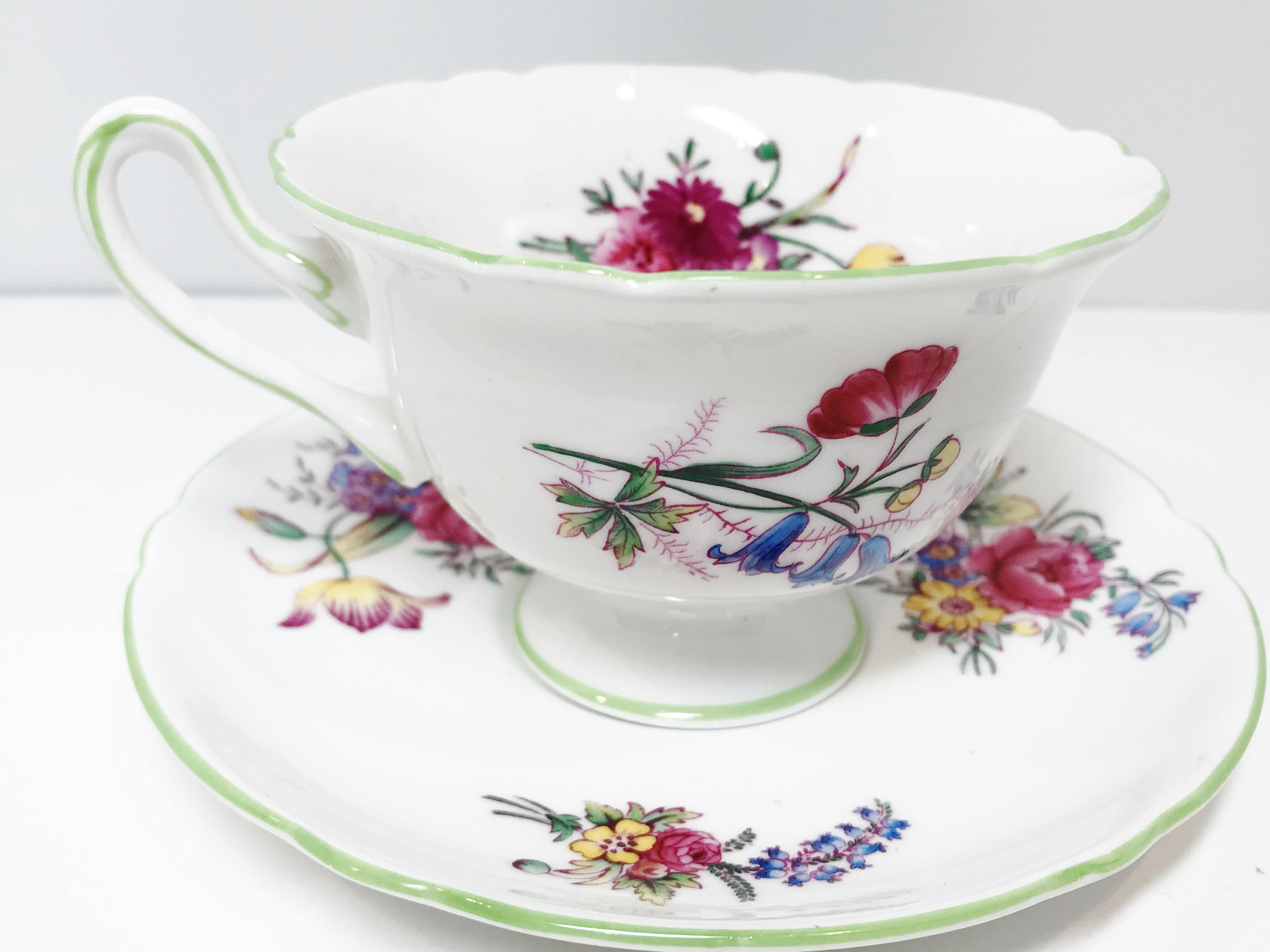 Shelley China is considered one of the premier manufacturers in the world because they used the finest available materials and hired the best artisans of their day. The teacup and saucer was made between 1940 and 1966.