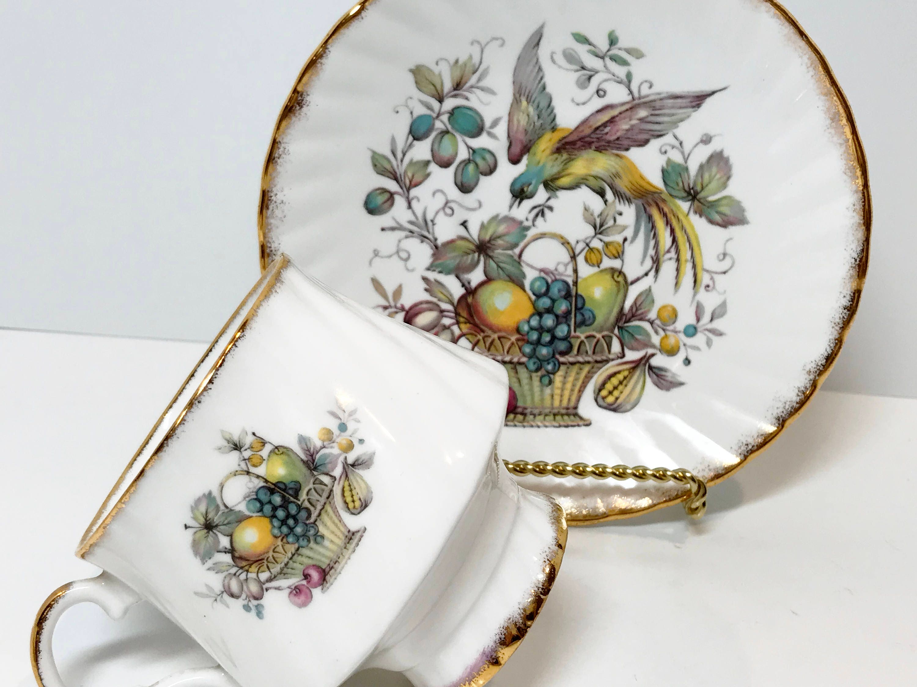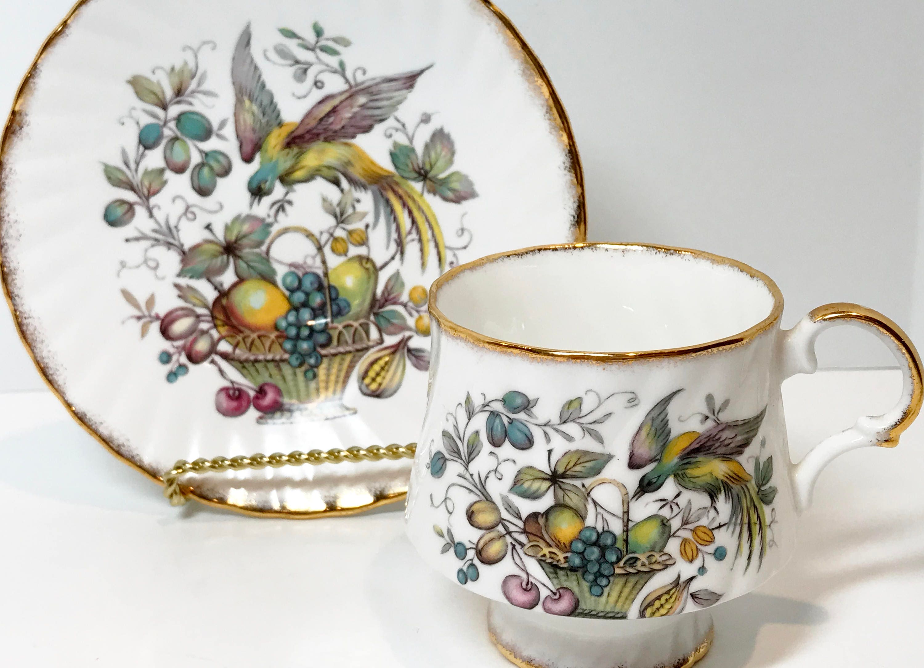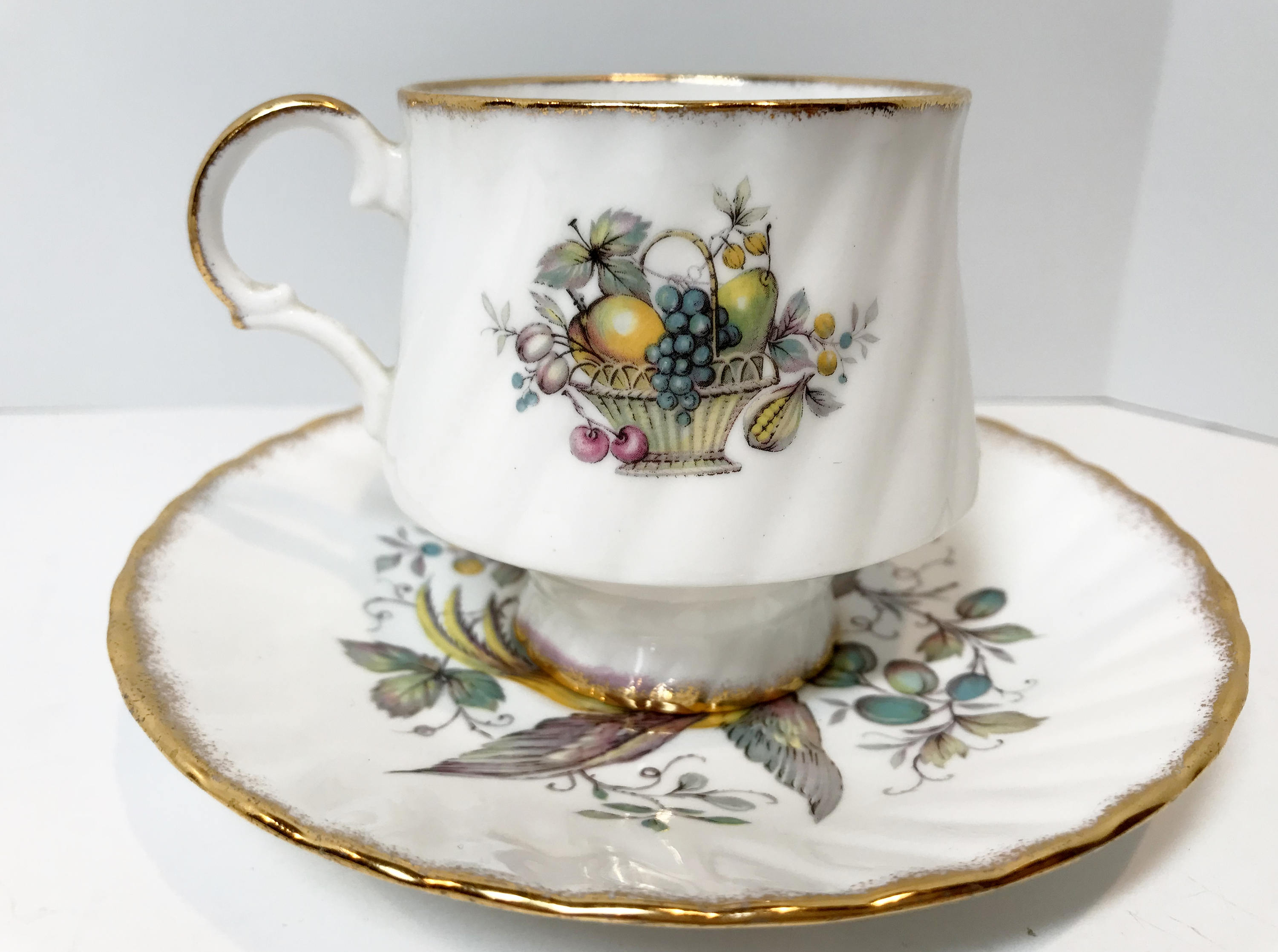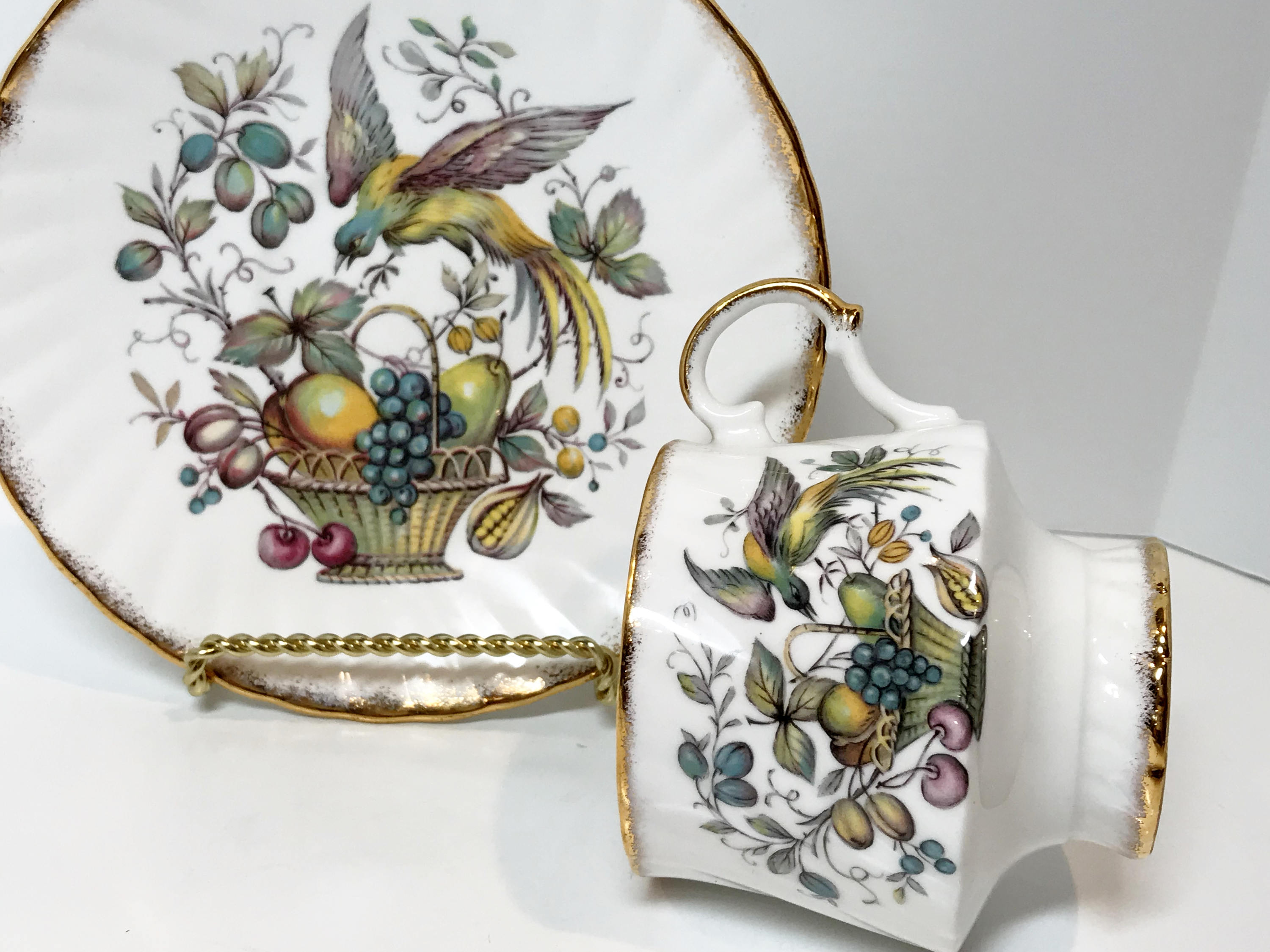 Elizabethan Fine Bone China of England created this refreshing design. It is culminating in a stylish handle and footed pedestal base.