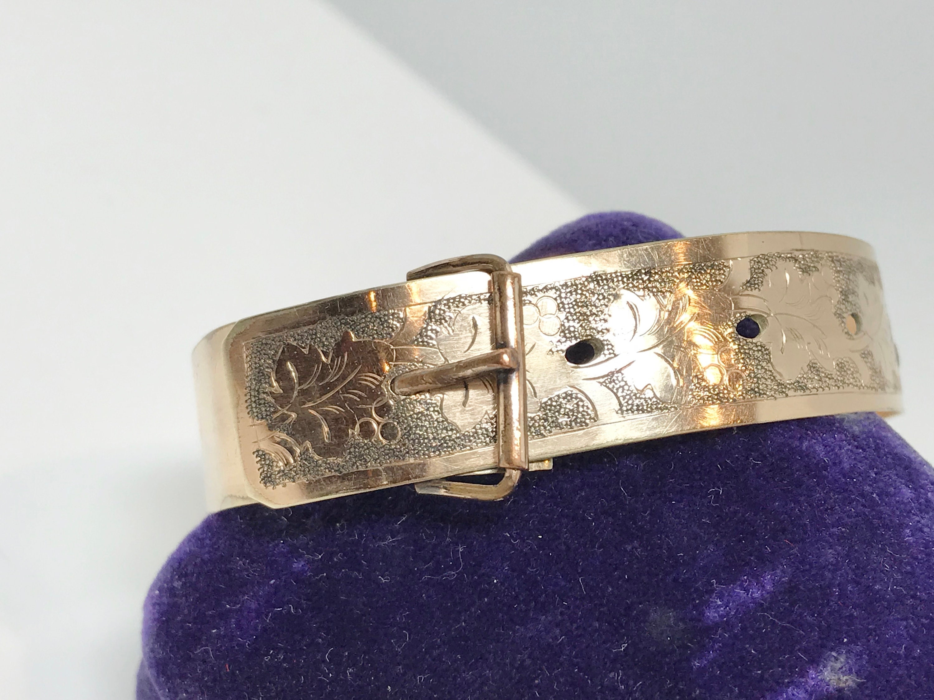This is a lovely example of an engraved Victorian buckle bracelet dated 1878.