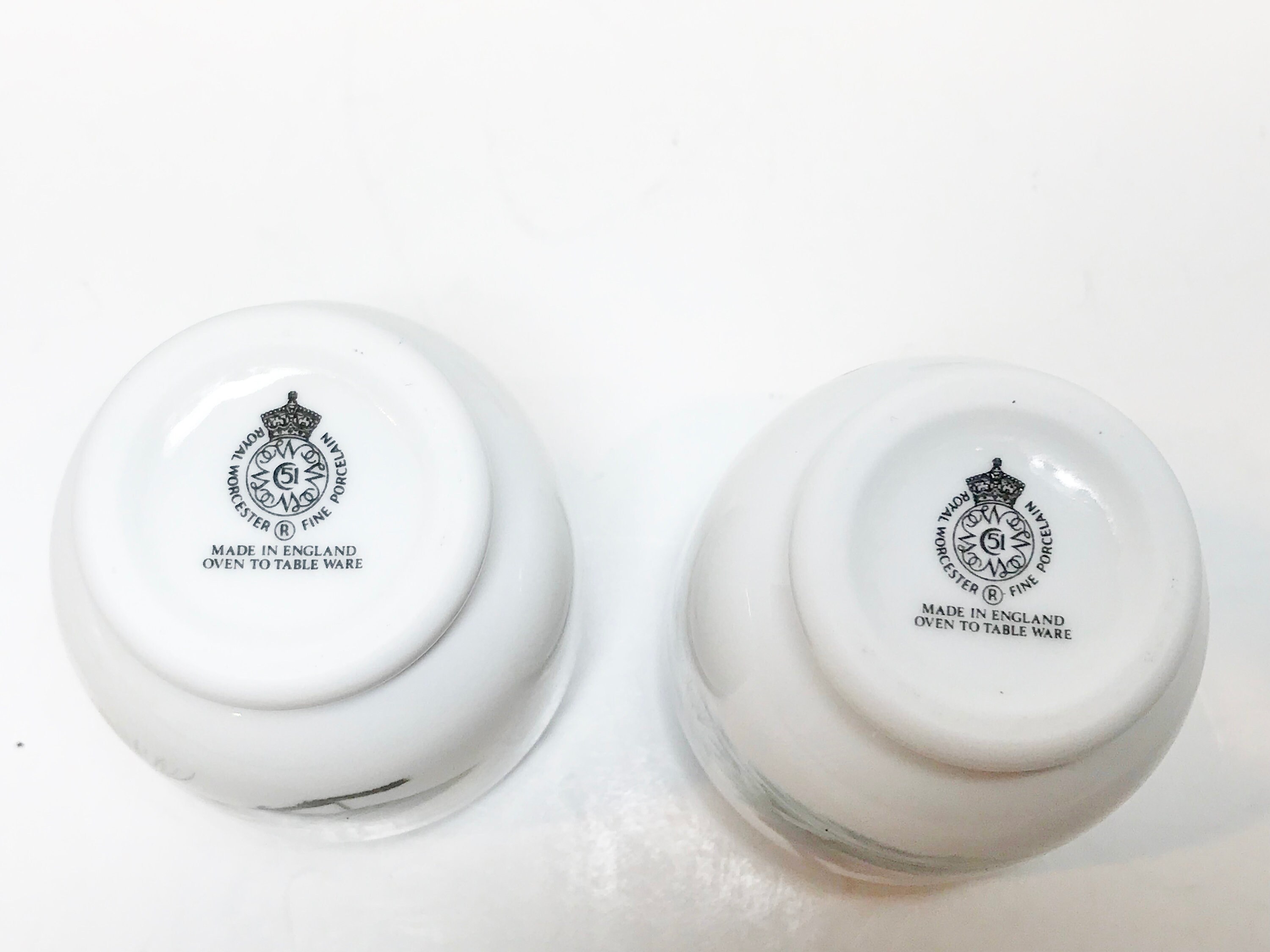 Royal Worcester manufactured this set. They were created to be able to cook in them and still place them beautifully on the table.